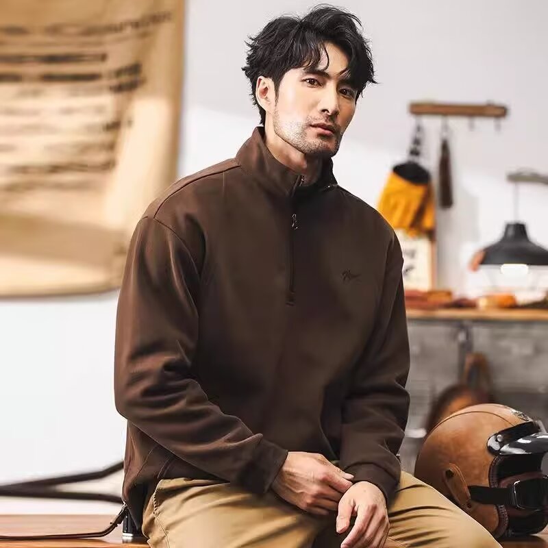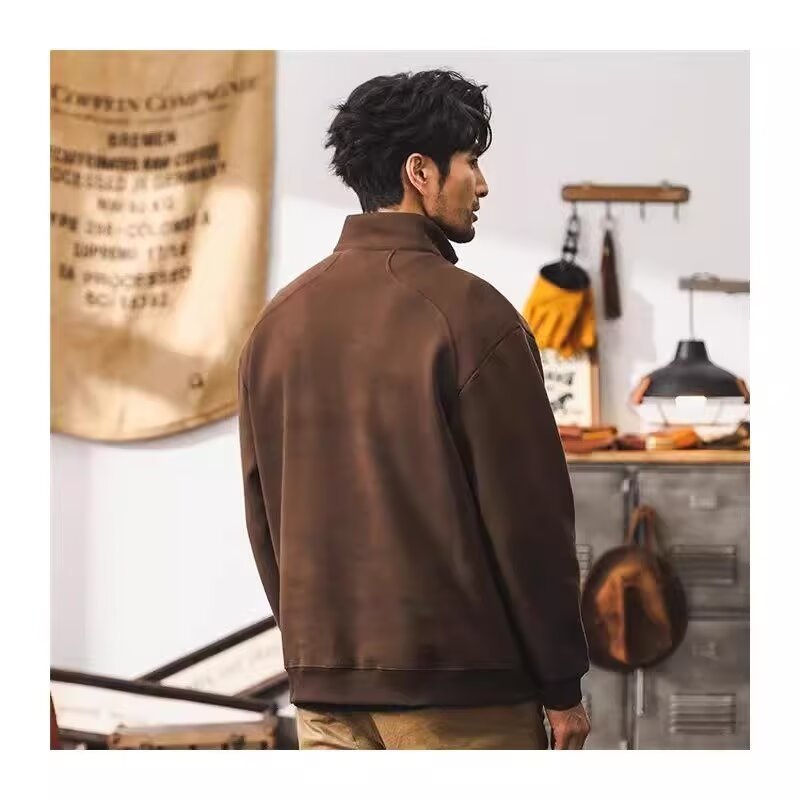 가을 무거운 샌딩 남성 스웨터 아메리칸 스타일 레트로 하프 지프 칼라 폴로 셔츠 느슨한 풀오버 재킷