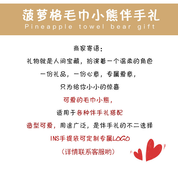 곰 수건 손 선물 파인애플 체크 무늬 스퀘어 생일 크리스마스 선물 웨딩 샵 축하 푸시 도매스토어 가기