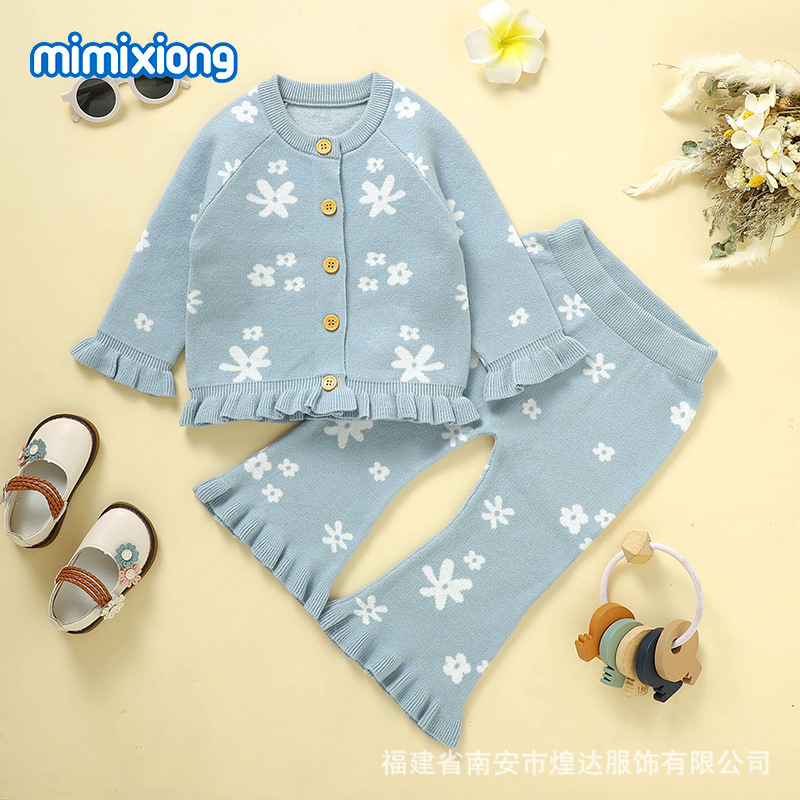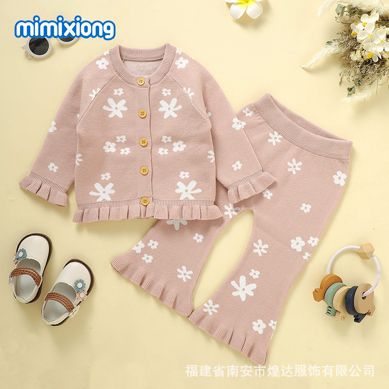Ins 뜨거운 판매 가을과 겨울 새로운 아기 꽃 패턴 탑 바지 세트 아기 소녀 외출 투피스 세트스토어 가기