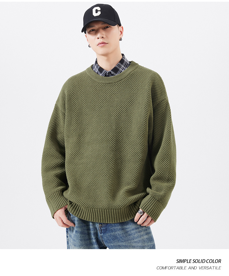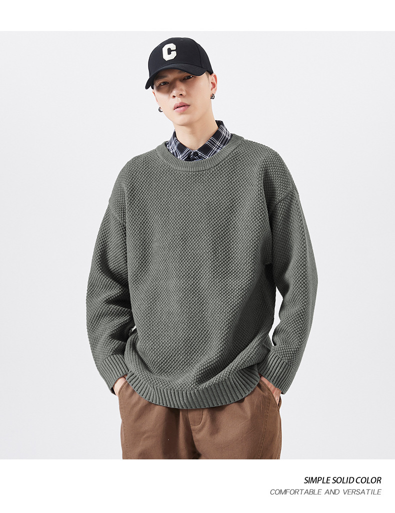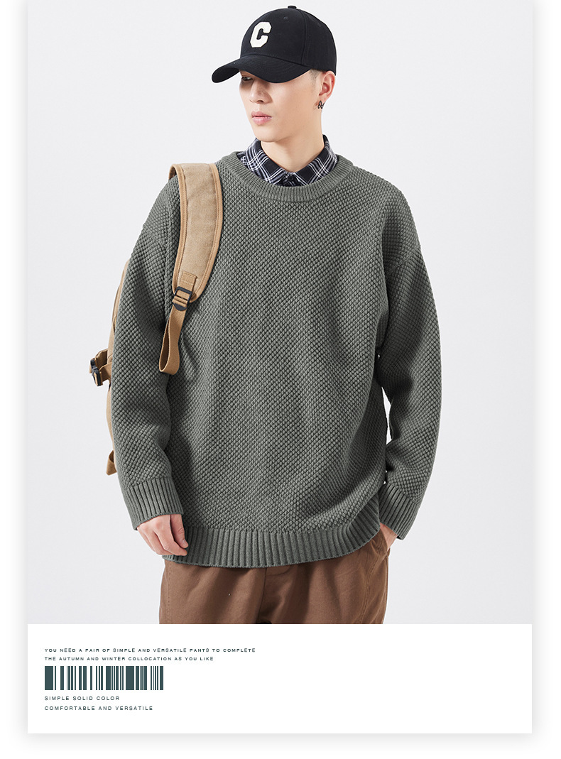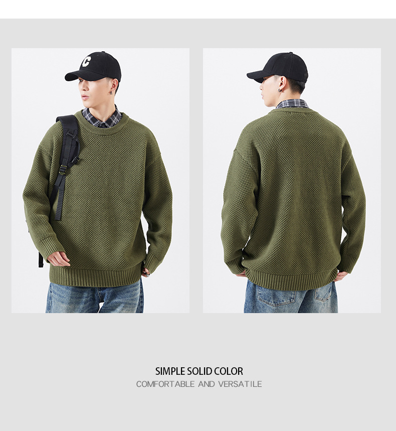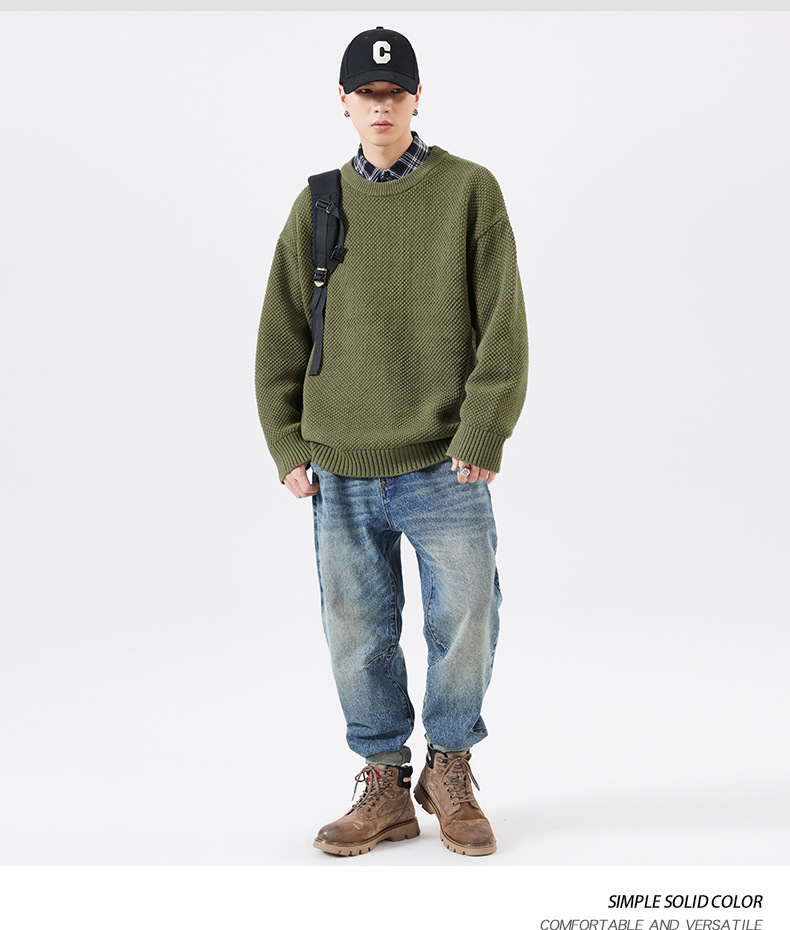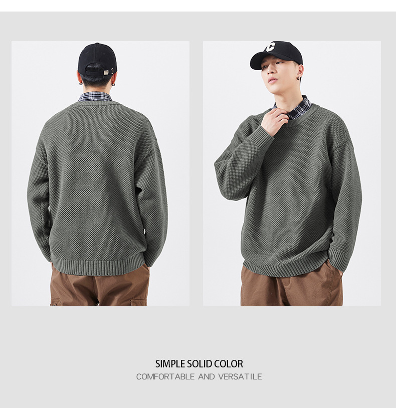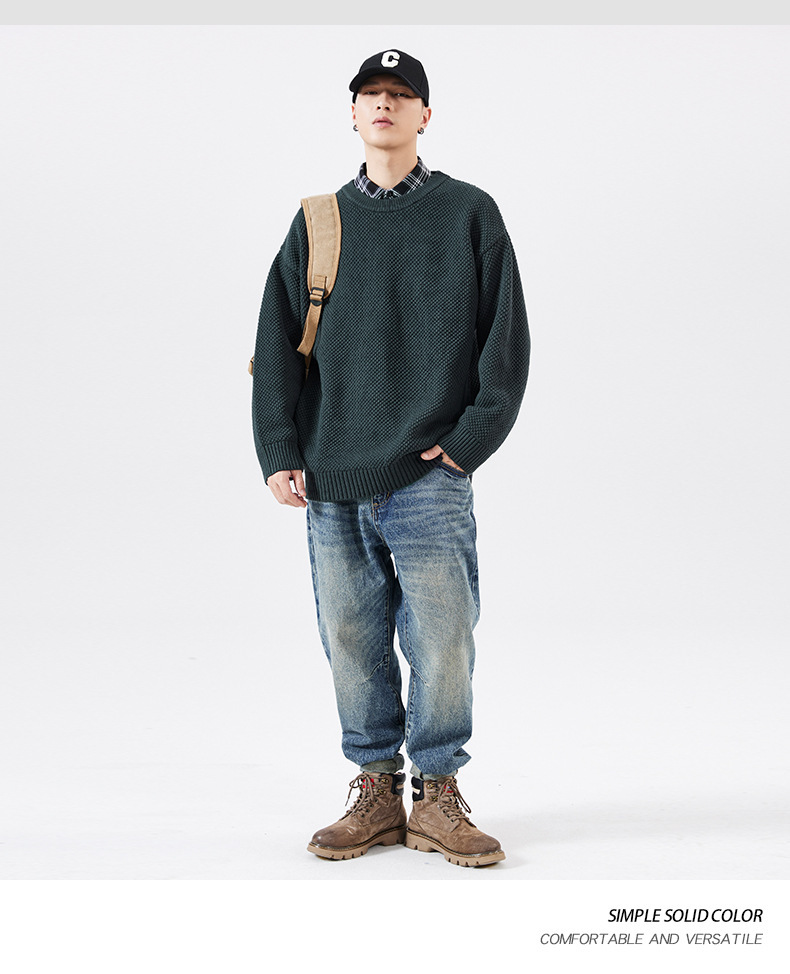 秋季男士套头毛衣复古针织衫日系潮牌胖子大码宽松纯色休闲上衣男