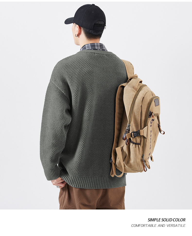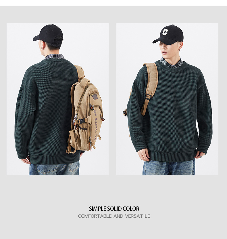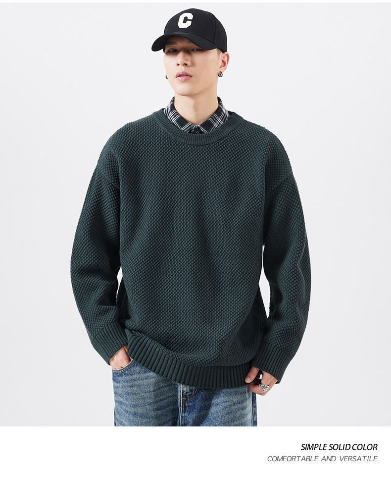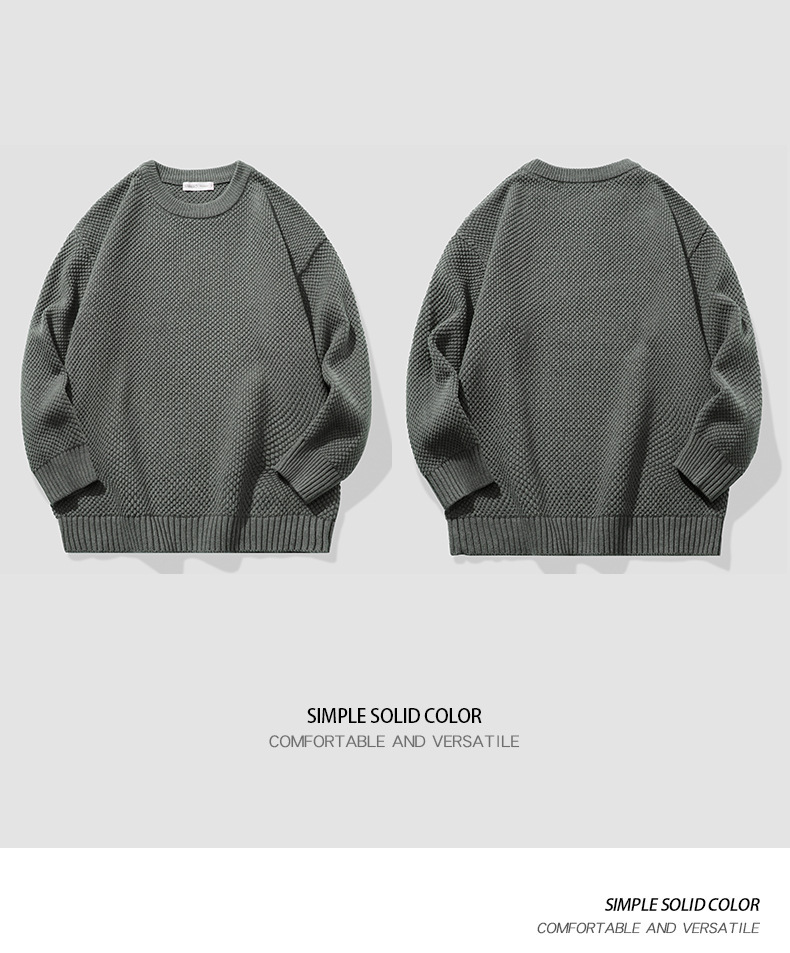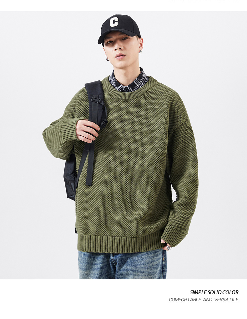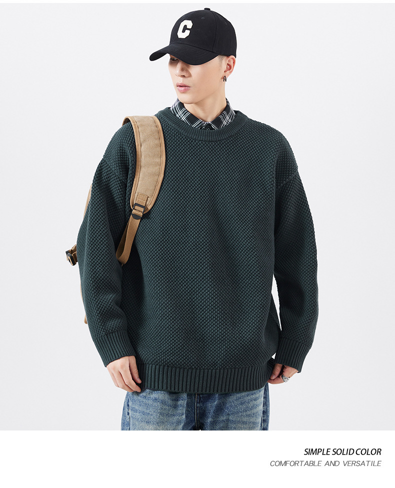 秋季男士套头毛衣复古针织衫日系潮牌胖子大码宽松纯色休闲上衣男