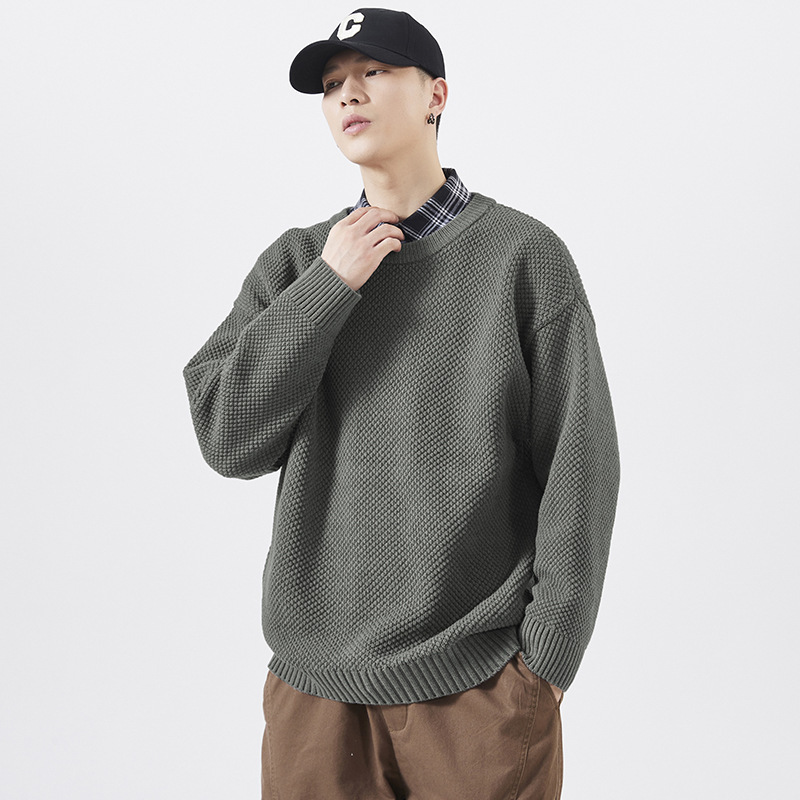 가을 남자 풀오버 스웨터 레트로 니트 스웨터 일본 스타일 패션 브랜드 지방 플러스 사이즈 느슨한 솔리드 컬러 캐주얼 탑 남성스토어 가기