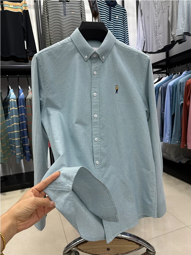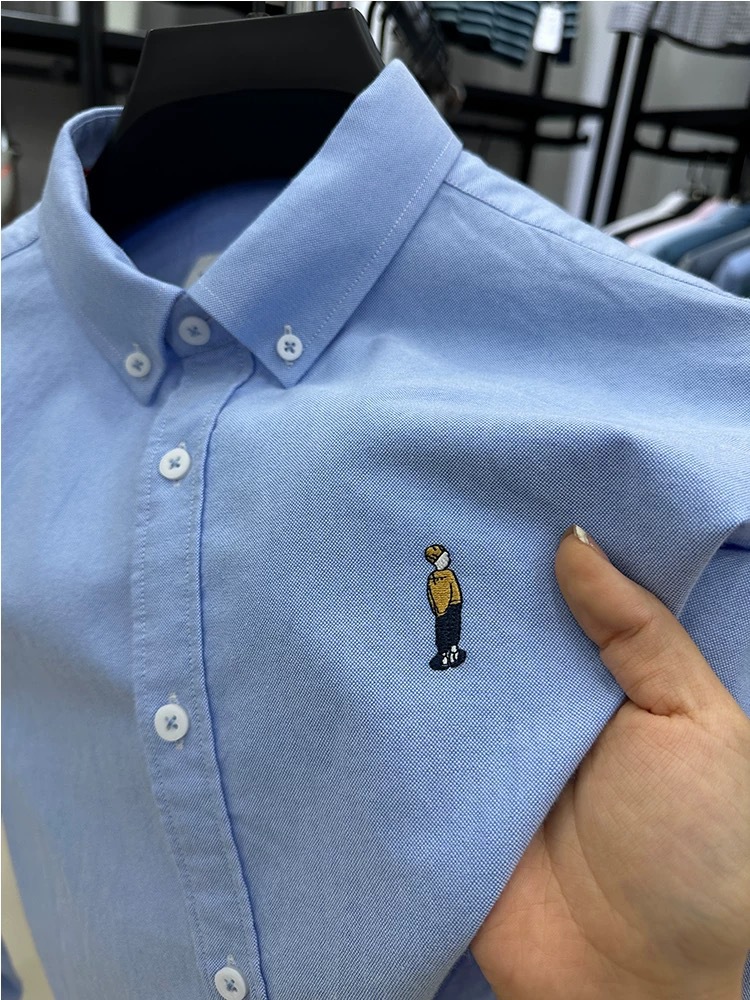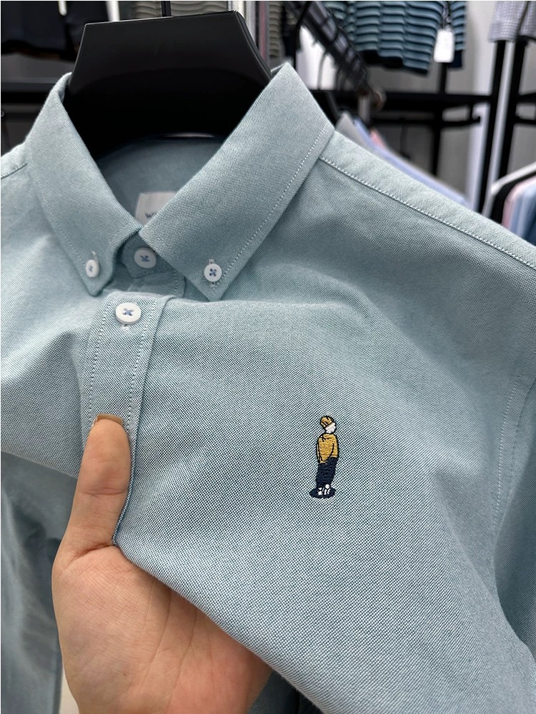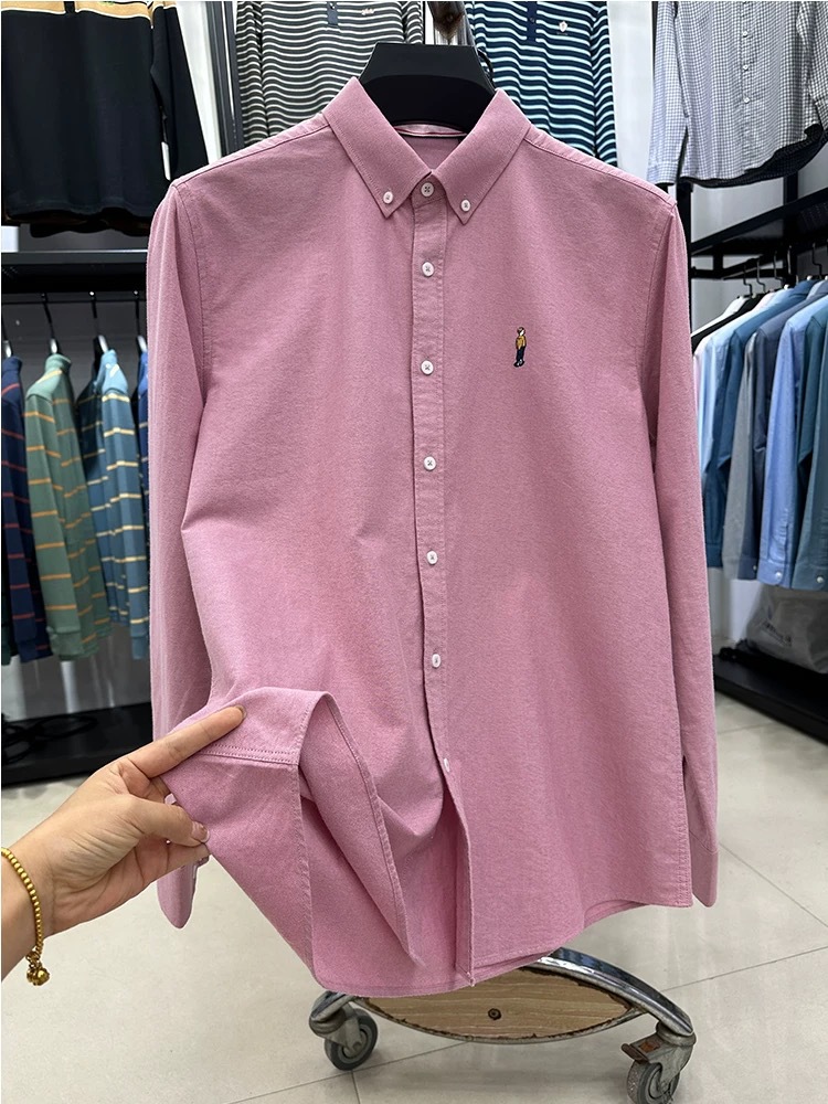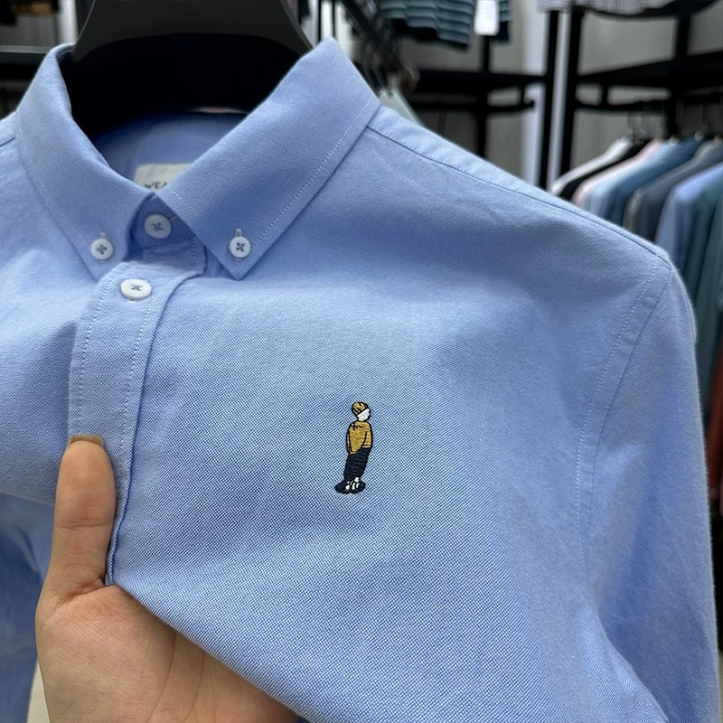 대외 무역 수출 100 면 옥스포드 긴팔 셔츠 남성 가을 패션 캐주얼 자수 꼬리 싱글 남성 셔츠스토어 가기