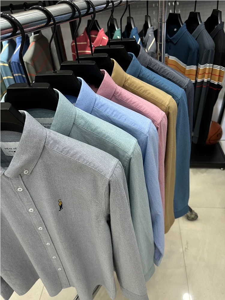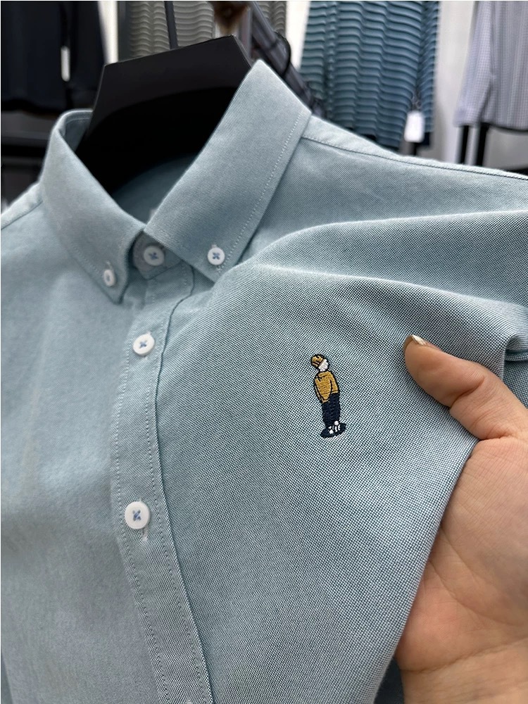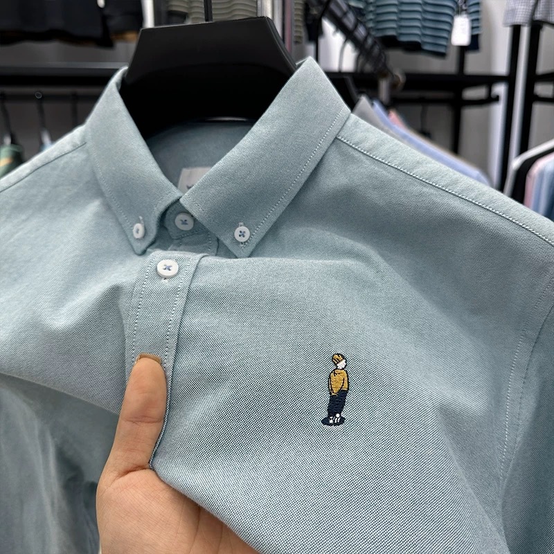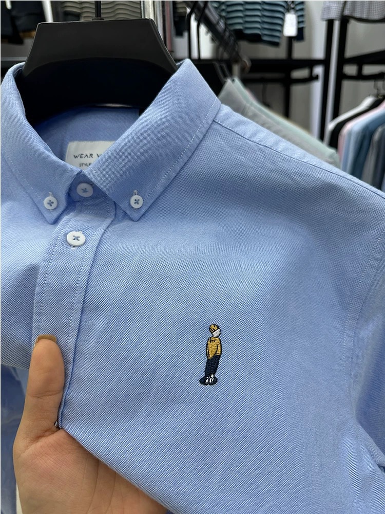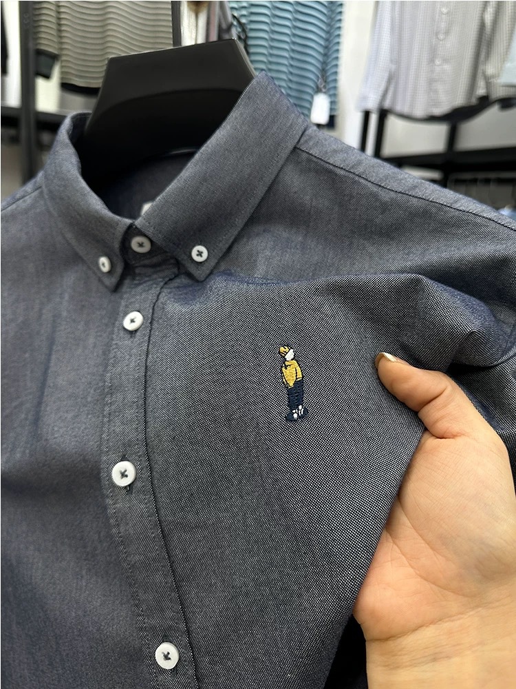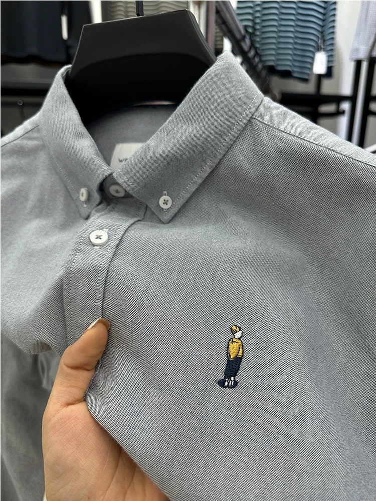 대외 무역 수출 100 면 옥스포드 긴팔 셔츠 남성 가을 패션 캐주얼 자수 꼬리 싱글 남성 셔츠스토어 가기