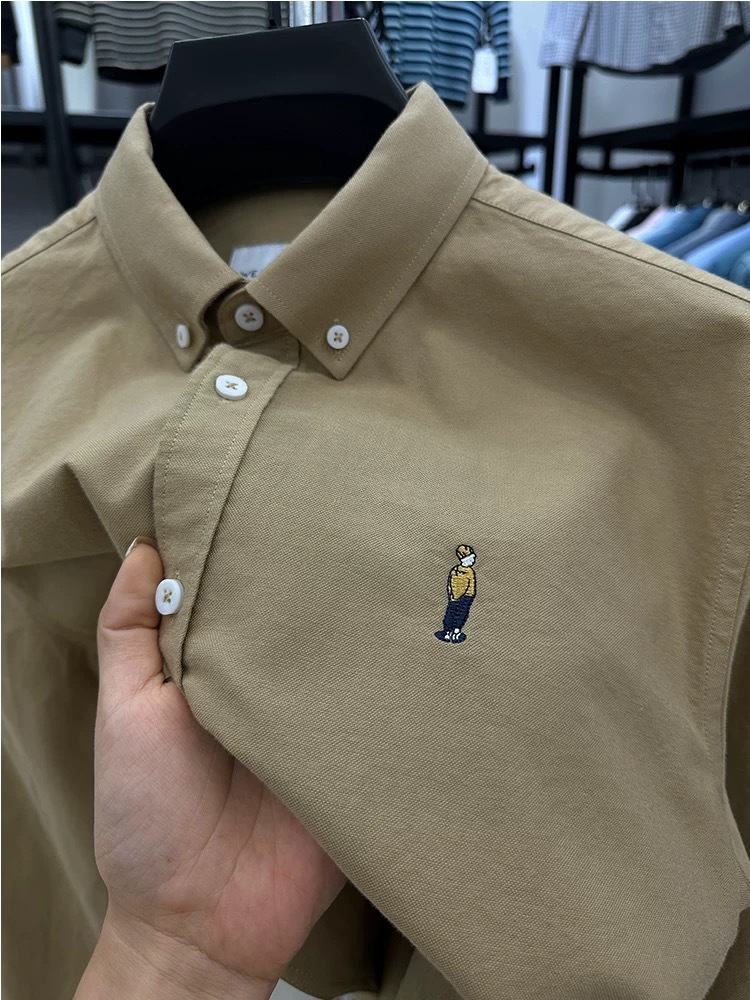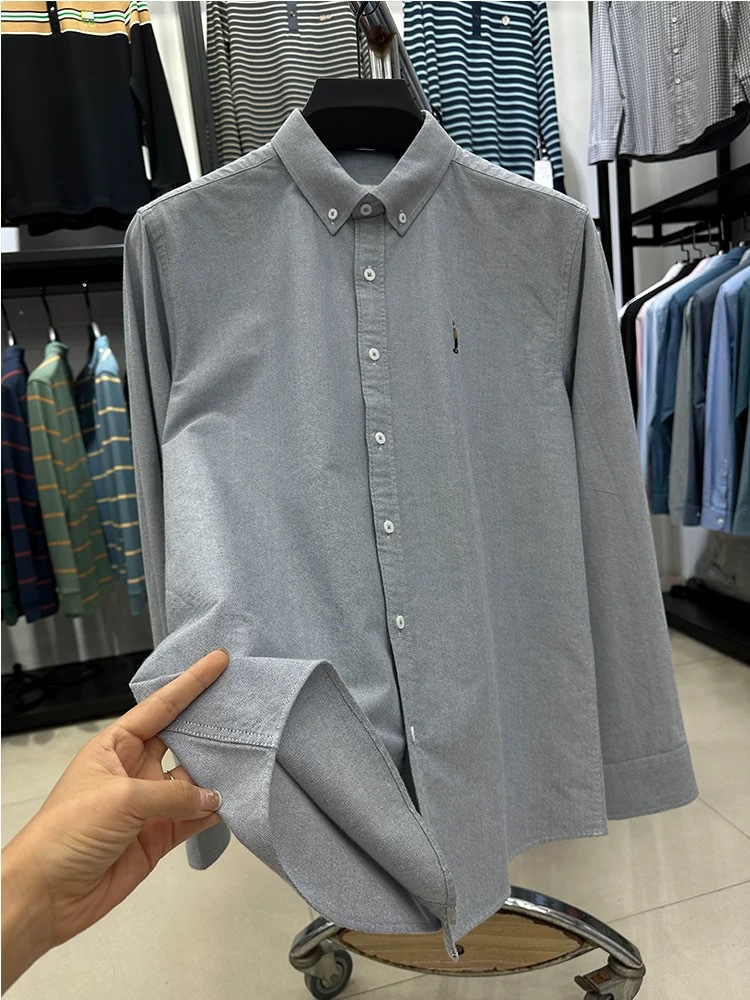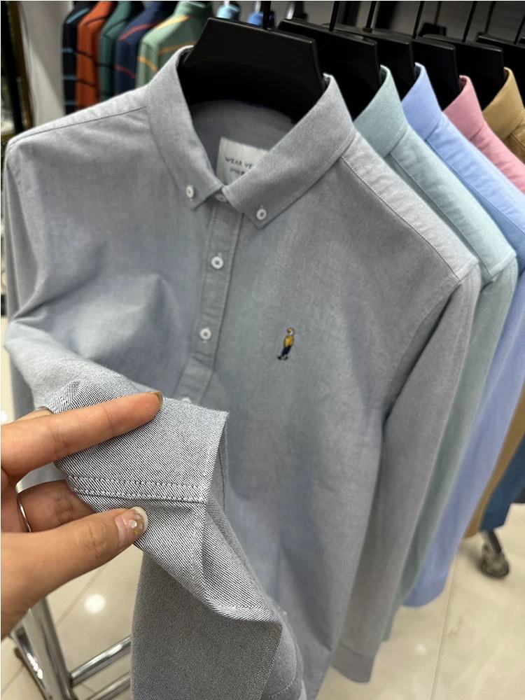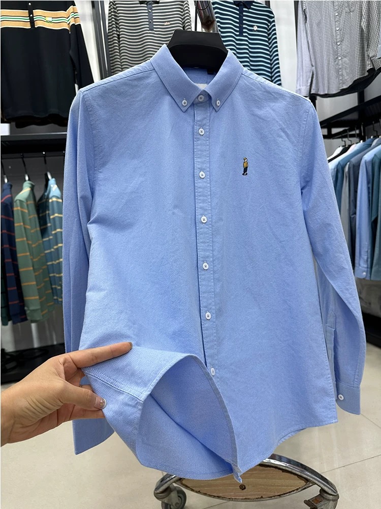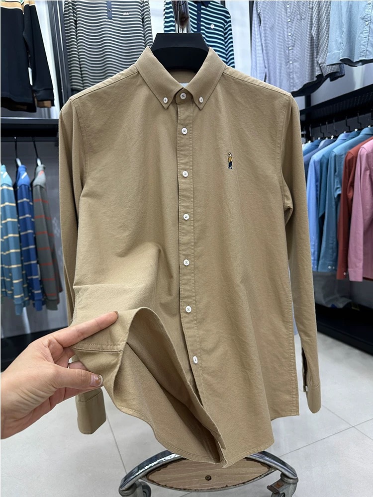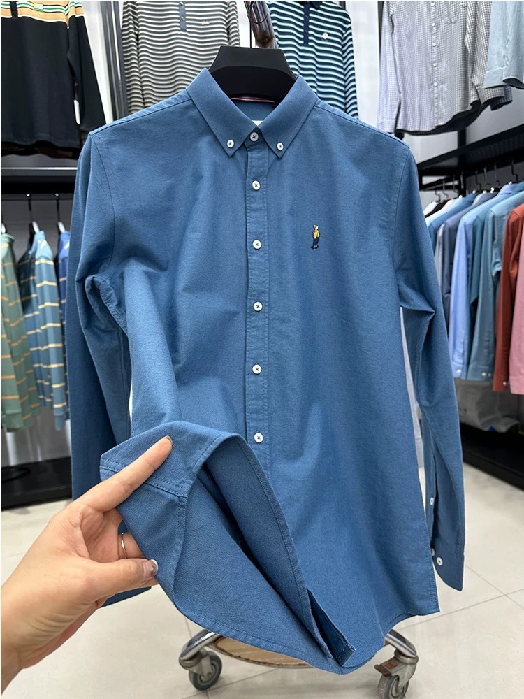 대외 무역 수출 100 면 옥스포드 긴팔 셔츠 남성 가을 패션 캐주얼 자수 꼬리 싱글 남성 셔츠