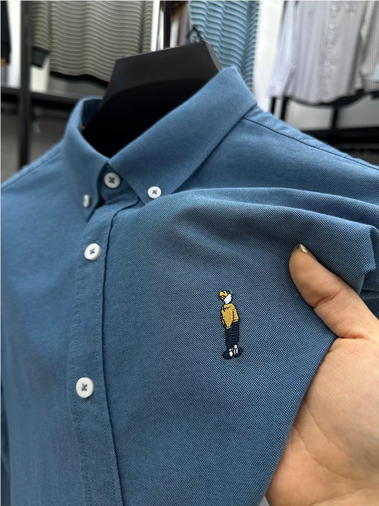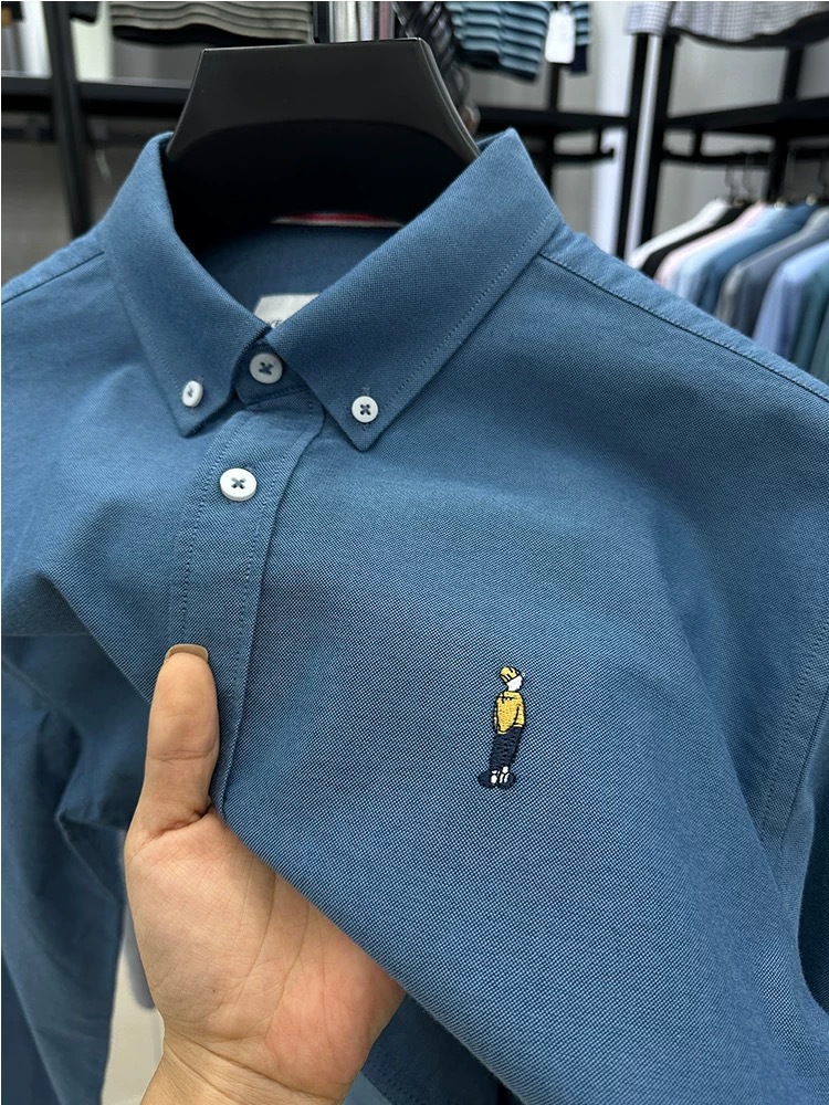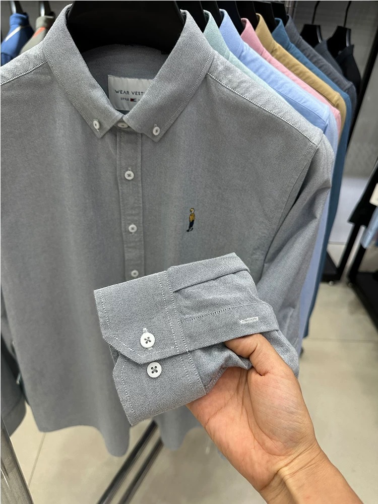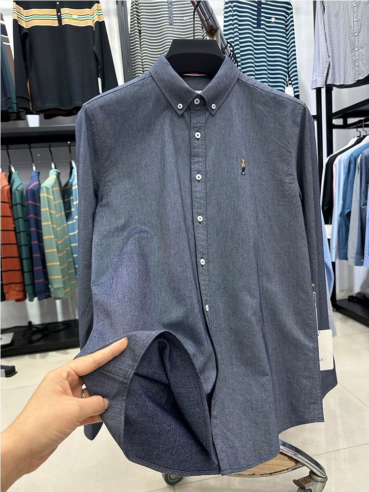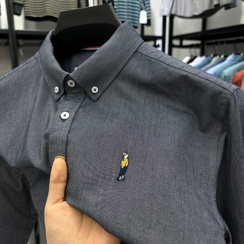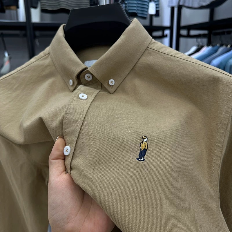 대외 무역 수출 100 면 옥스포드 긴팔 셔츠 남성 가을 패션 캐주얼 자수 꼬리 싱글 남성 셔츠