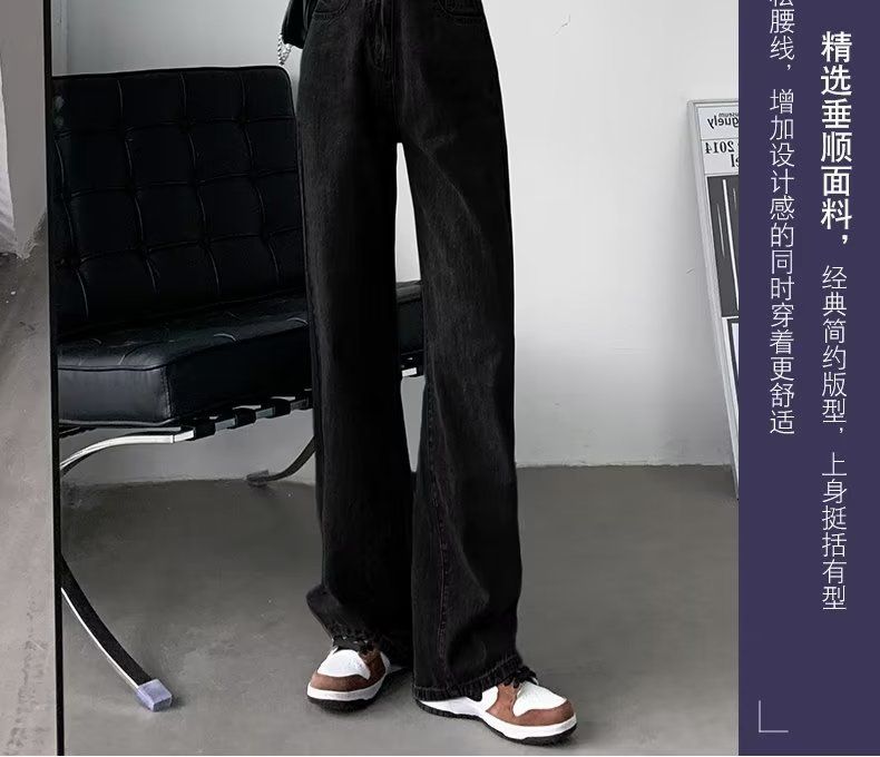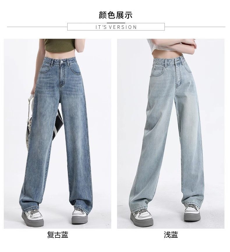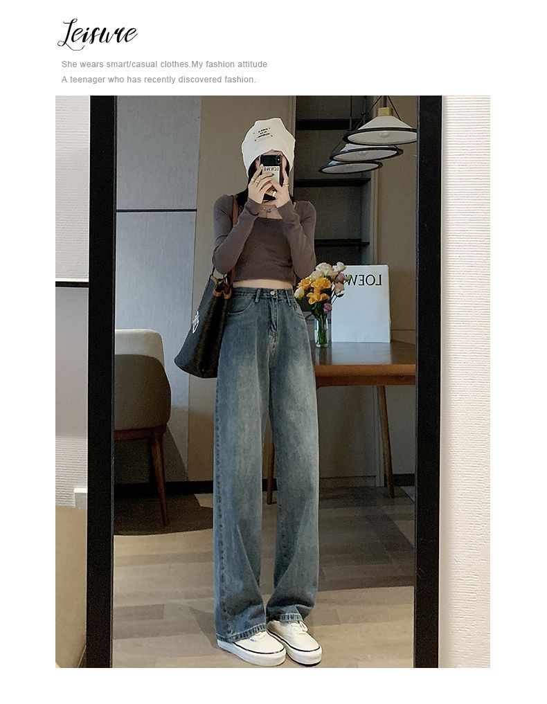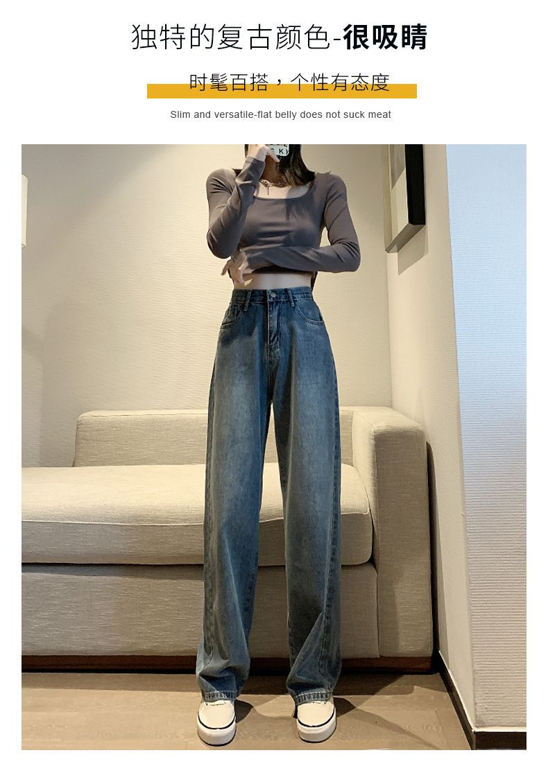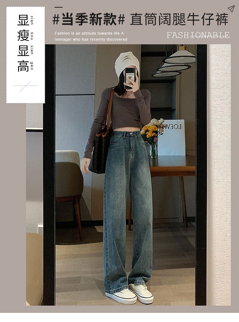 빈티지 고민 와이드 레그 청바지 여성의 가을과 겨울 2024 새로운 높은 허리 스트레이트 튜브 느슨한 슬리밍 드레이프 바지스토어 가기