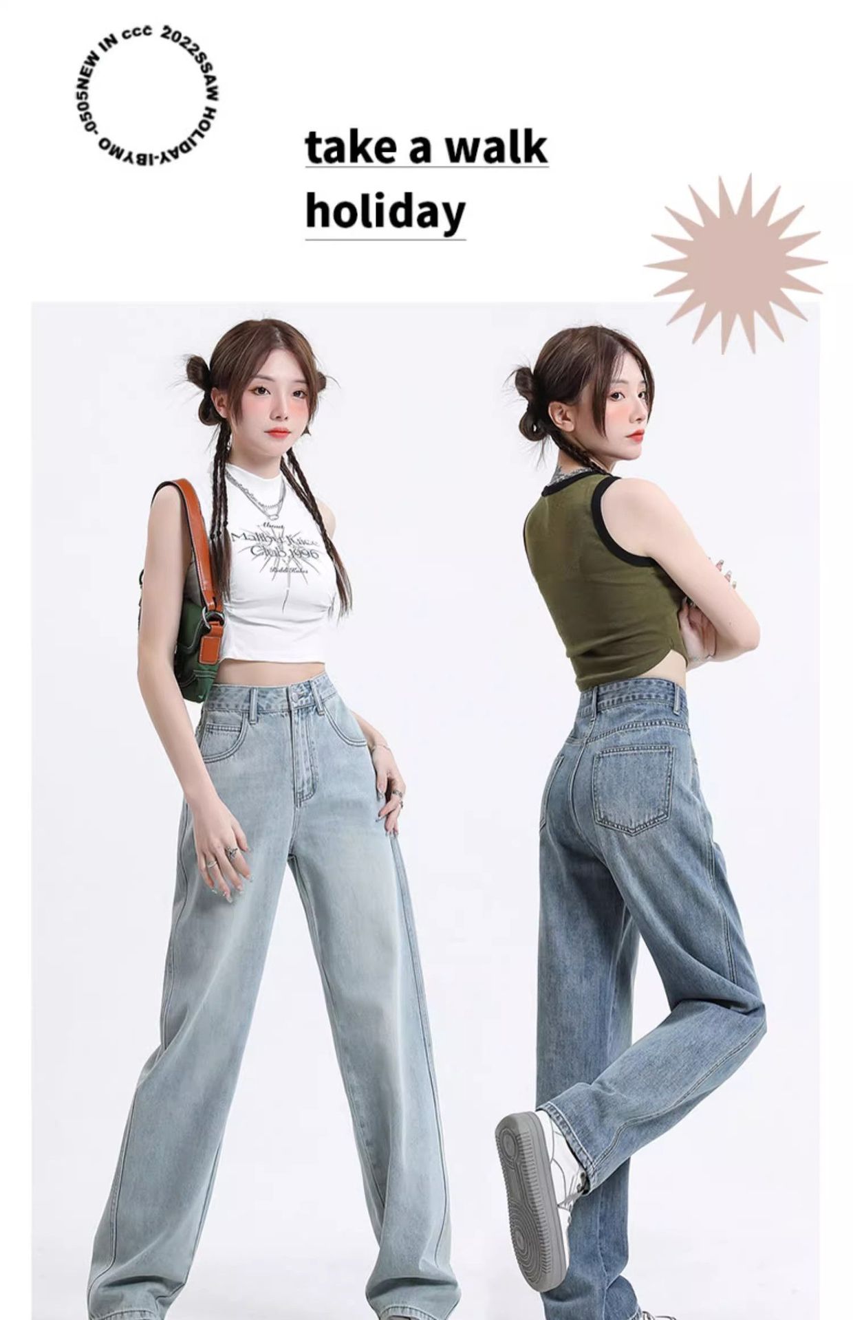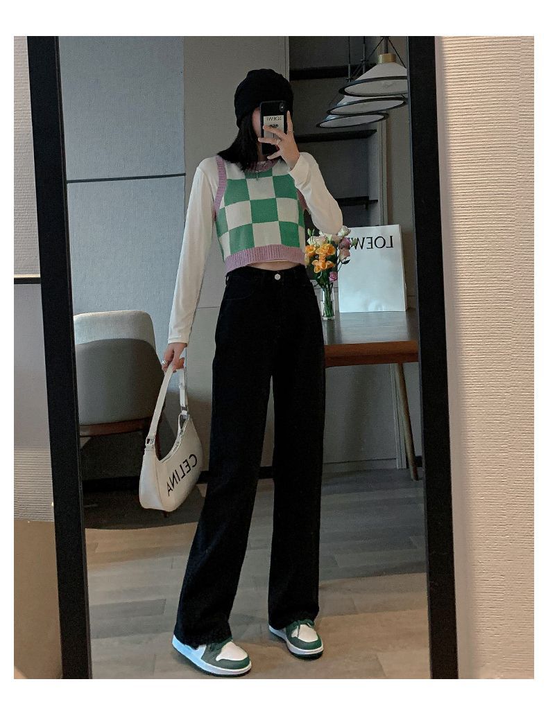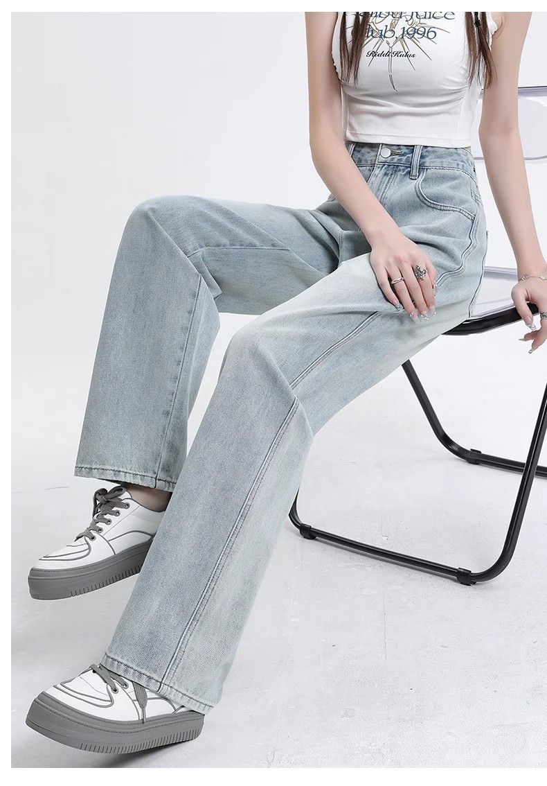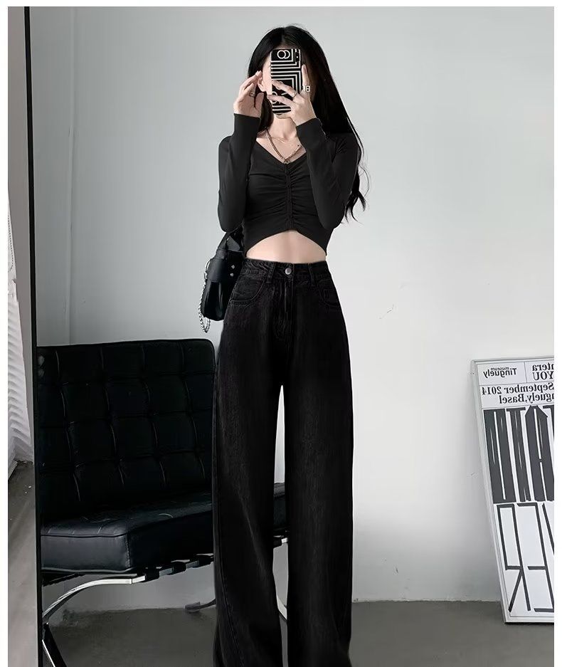빈티지 고민 와이드 레그 청바지 여성의 가을과 겨울 2024 새로운 높은 허리 스트레이트 튜브 느슨한 슬리밍 드레이프 바지스토어 가기