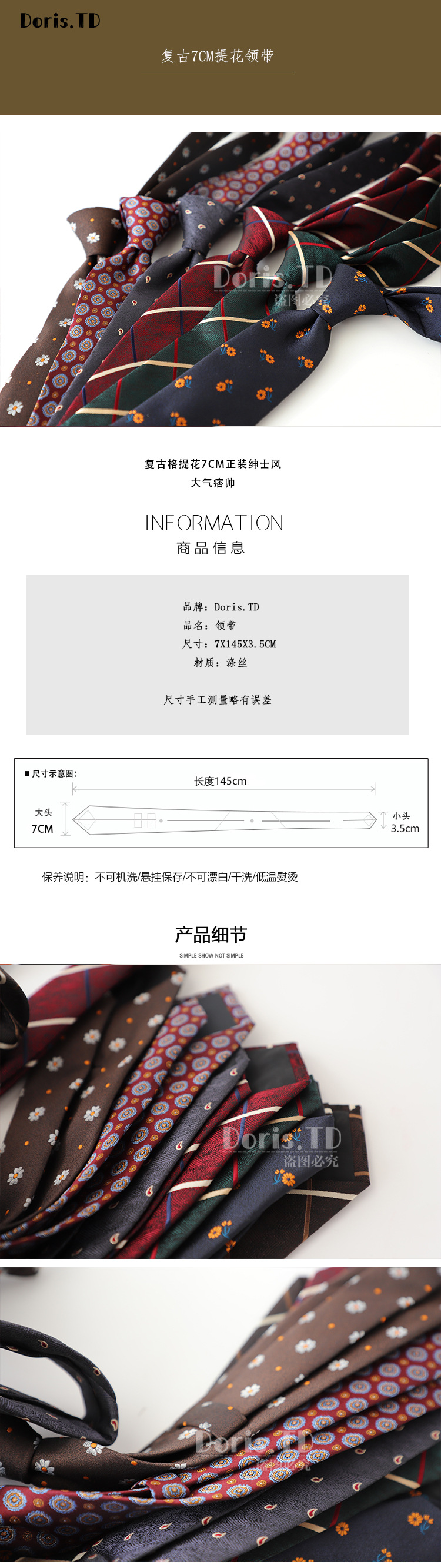 빈티지 꽃 버건디 가벼운 럭셔리 넥타이 남자 레트로 한국 7CM 웨딩 신랑 한국 공장 재고 도매