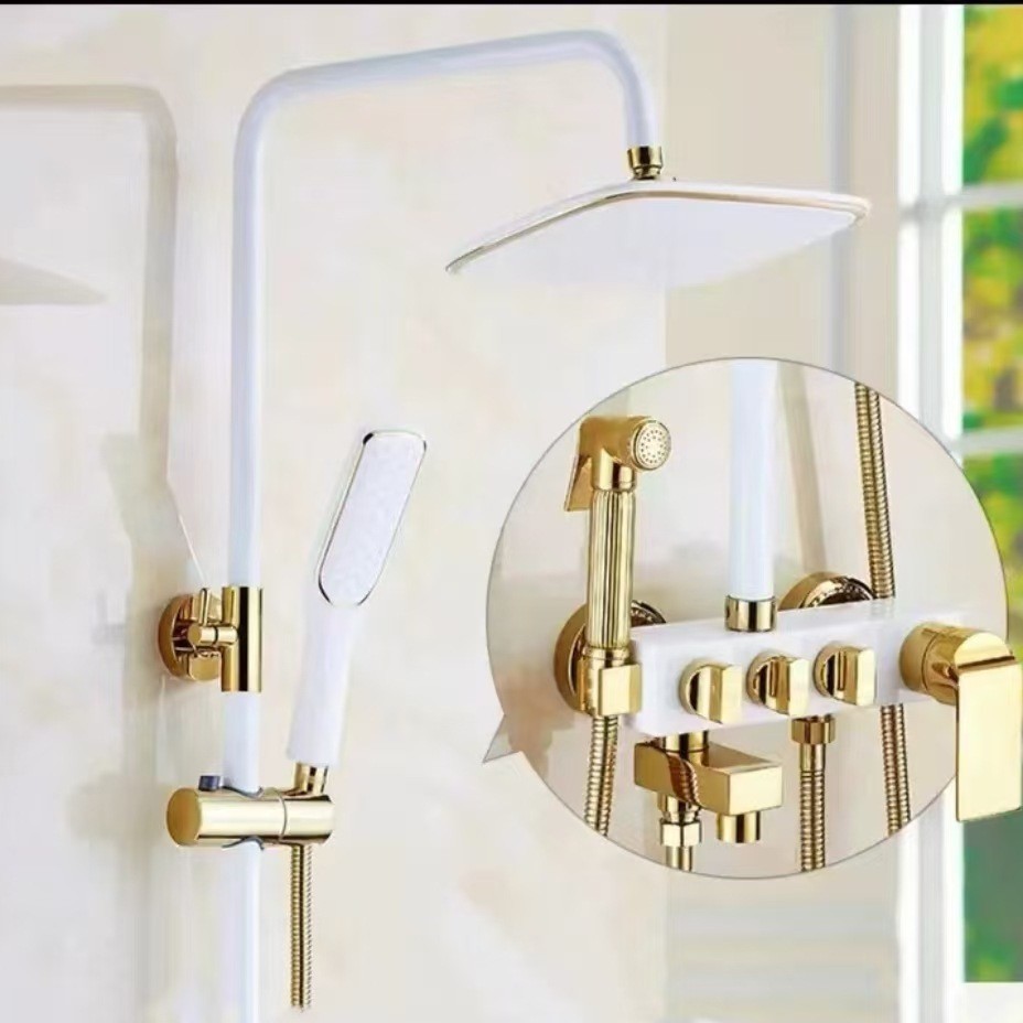 국경 전체 구리 블랙 골드 샤워 세트 로터리 스위치 가정용 욕실 샤워 샤워 샤워 헤드스토어 가기