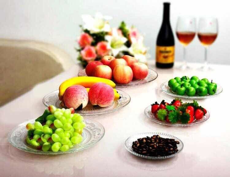 간식 말린 과일 진주 티 컵 소스 과일 플레이트 유리 트레이 KTV 플레이트 차가운 요리 살라 플레이트 플랫 플레이트