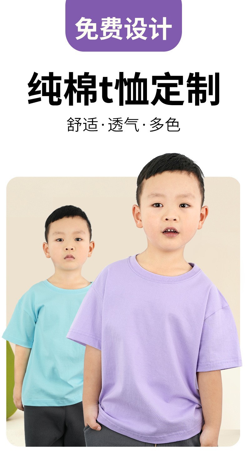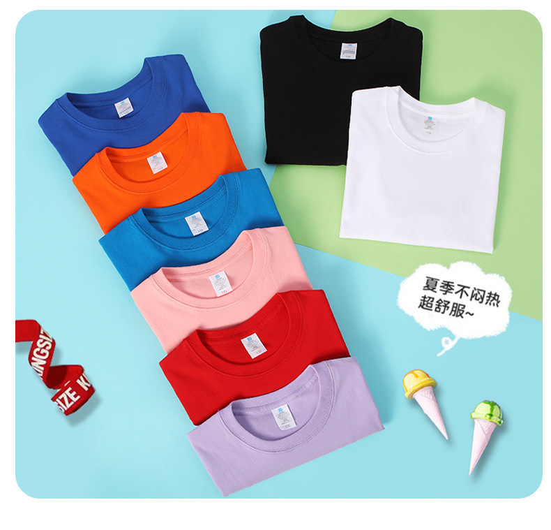 어린이 티셔츠 맞춤형 오프 숄더 순수 코튼 라운드 넥 반팔 소년과 소녀 솔리드 컬러 유치원 클래스 유니폼 diy 맞춤 인쇄 로고