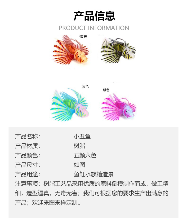 시뮬레이션 광대 물고기 패턴 물고기 수지 공예 어항 장식품 수중 세계 복고풍 도매 금붕어 떠
