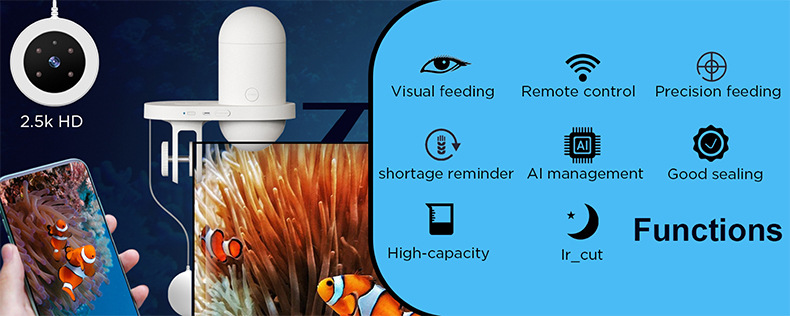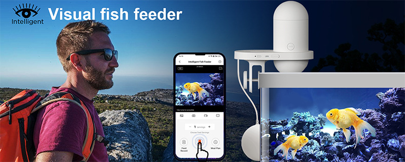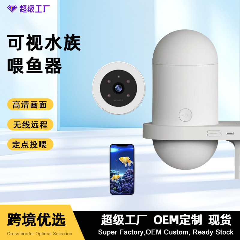 可视喂鱼器,APP远程喂食,采用上下密封结构,加干燥剂设计,可以使鱼粮长时间保鲜230ML的粮仓,足够喂食30天,度假或出差也可查看鱼儿健康状态,也可看喂食器有无正常投喂。