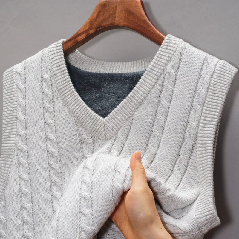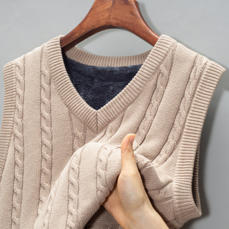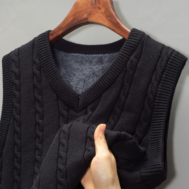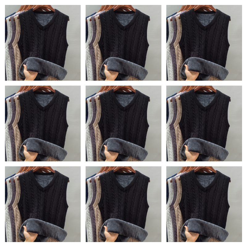 가을과 겨울 두꺼운 기모 양모 조끼 조끼 조끼 남자 따뜻한 스웨터 조끼 남자 민소매 니트 양모 조끼