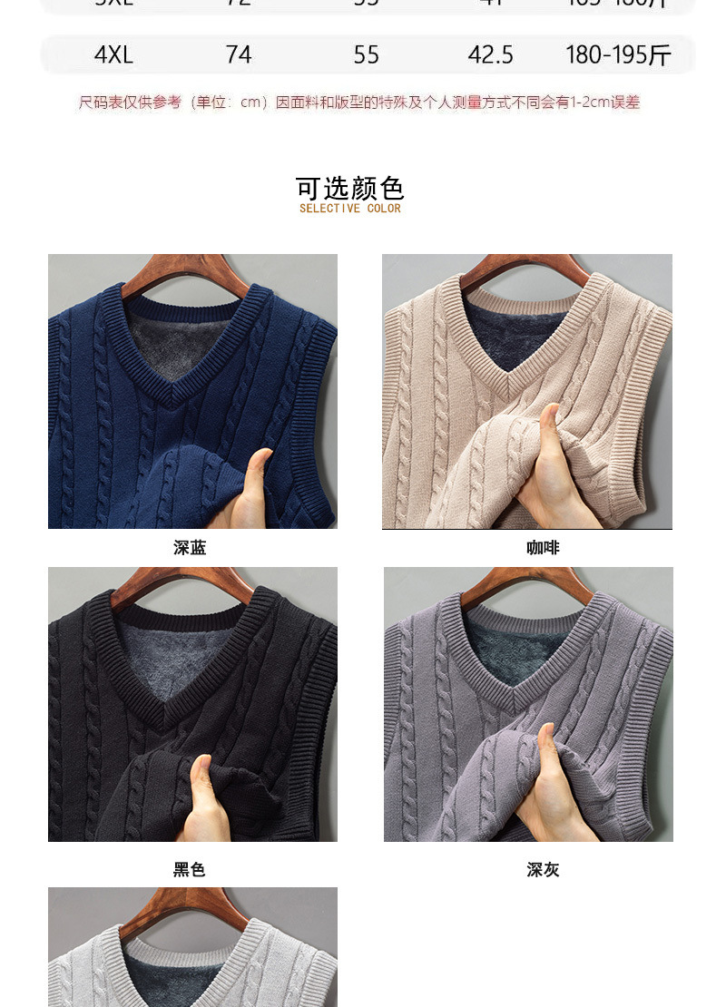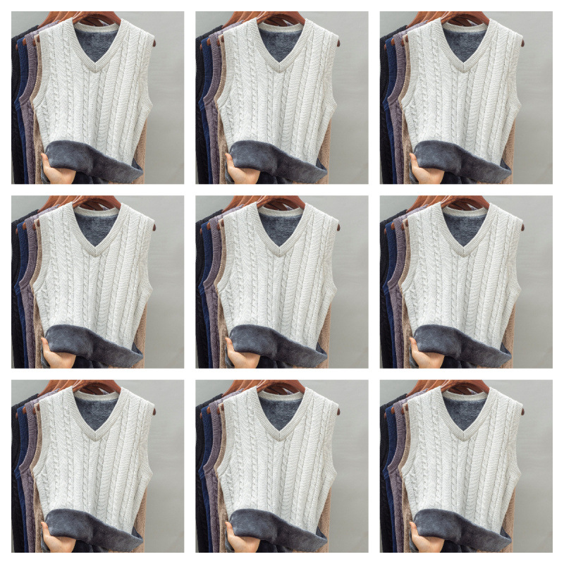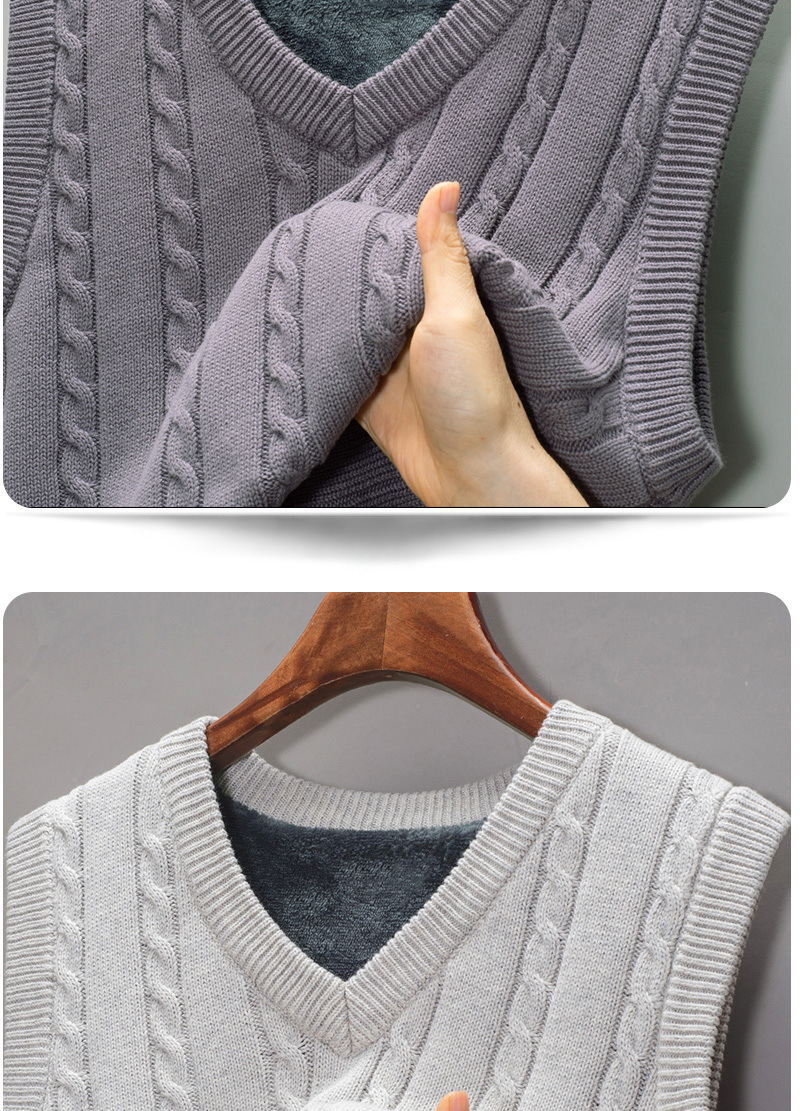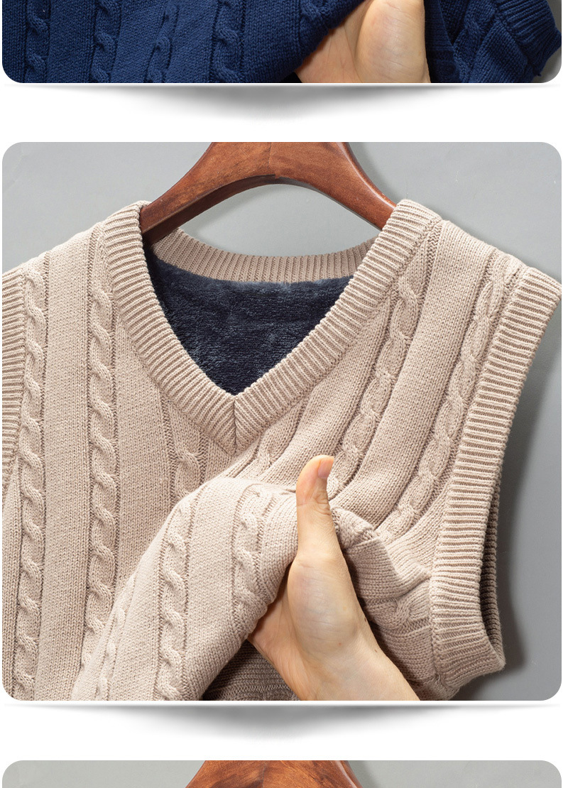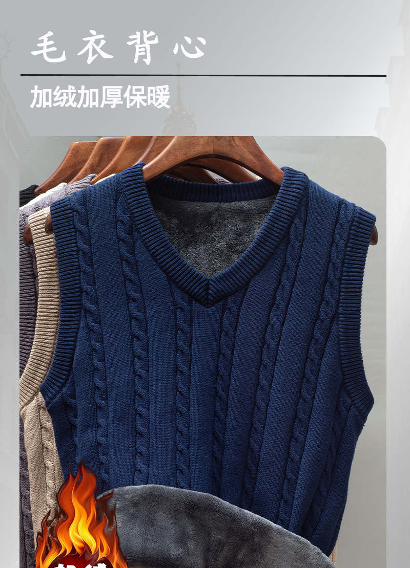 가을과 겨울 두꺼운 기모 양모 조끼 조끼 조끼 남자 따뜻한 스웨터 조끼 남자 민소매 니트 양모 조끼스토어 가기