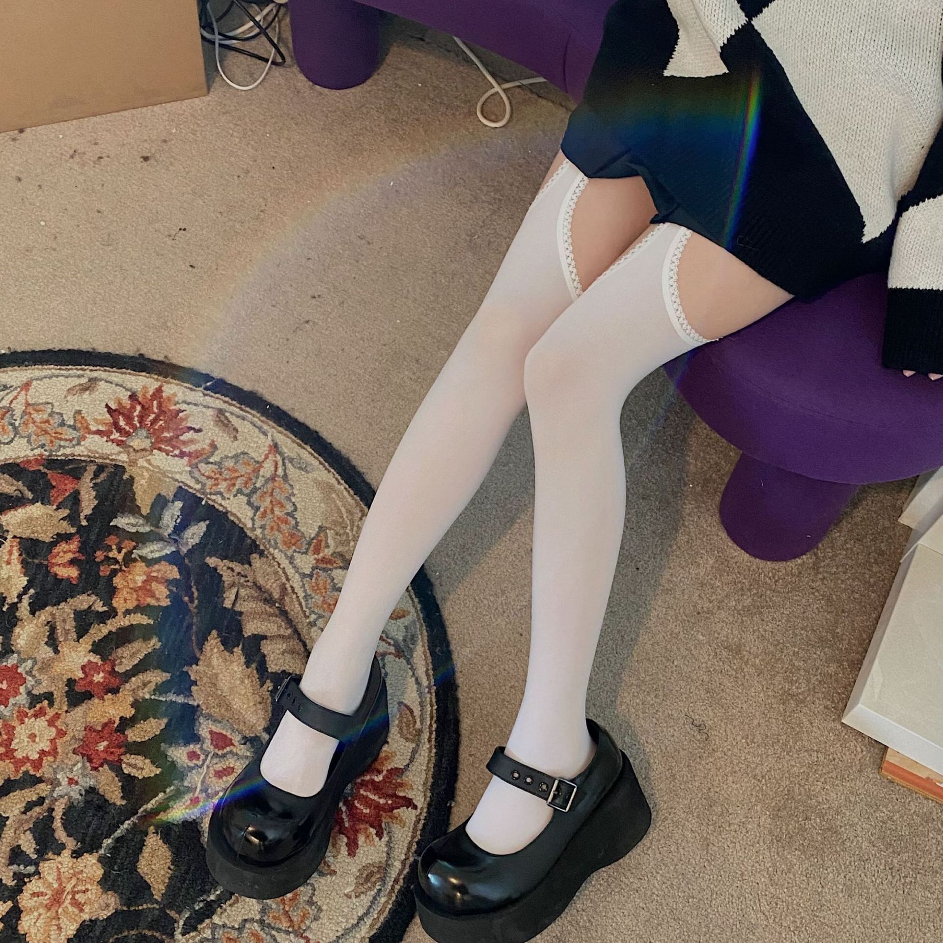 검은 색 4 면 스트랩 3 차원 레이스 벨벳 섹시한 팬티 스타킹 허벅지 사이드 파기 가짜 스트랩 바닥 양말스토어 가기