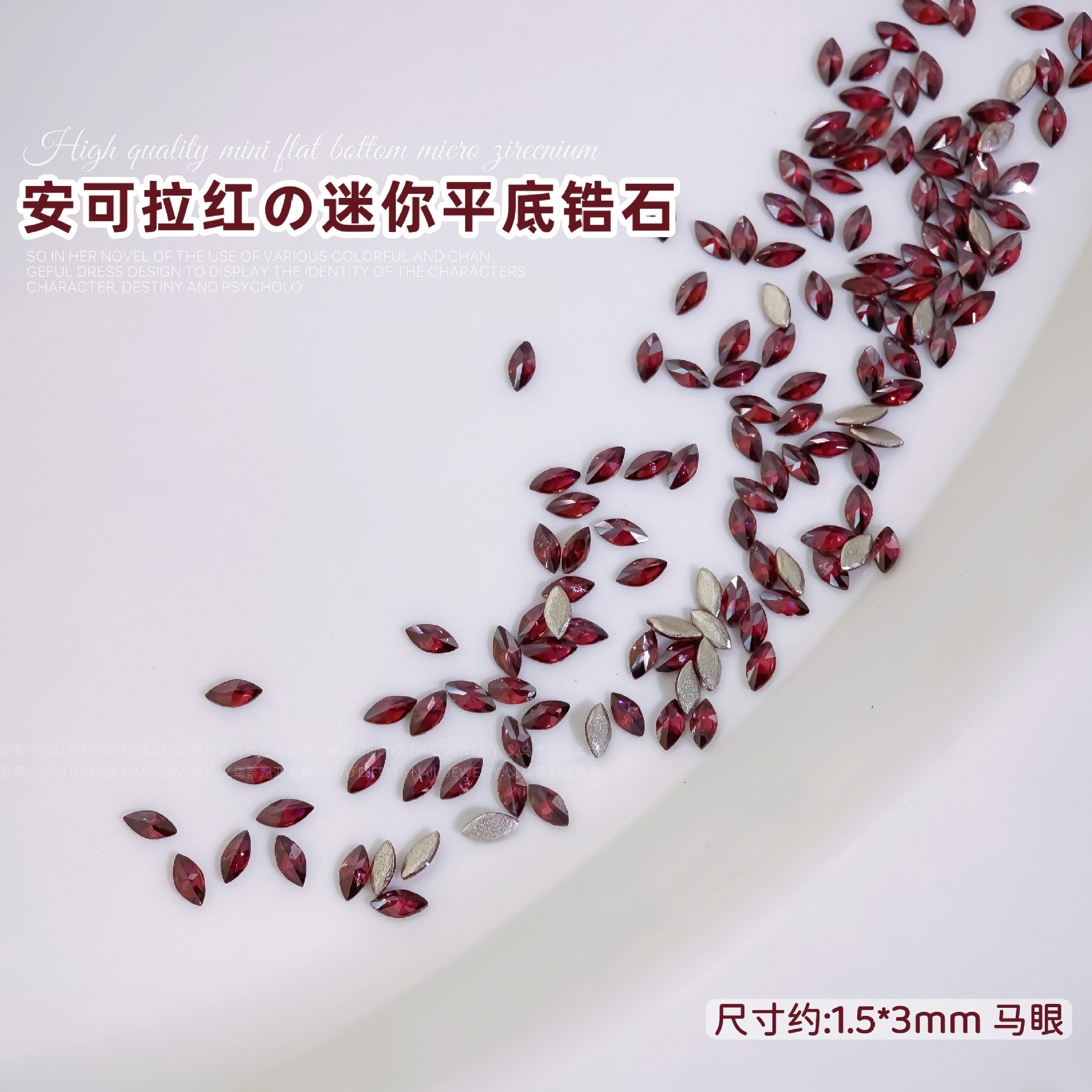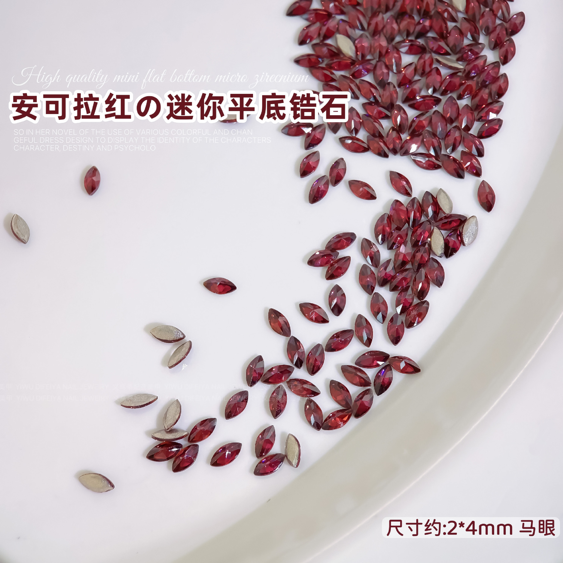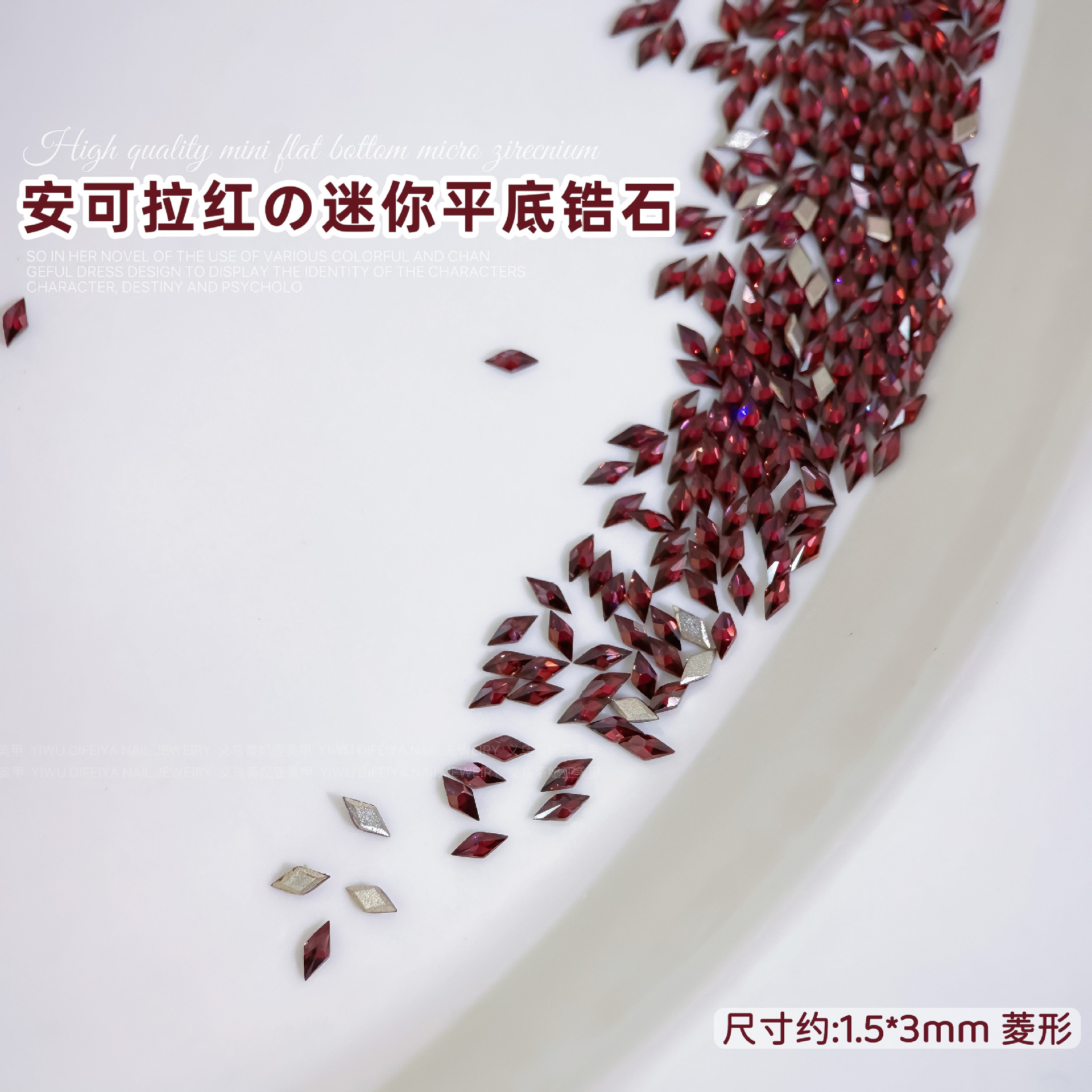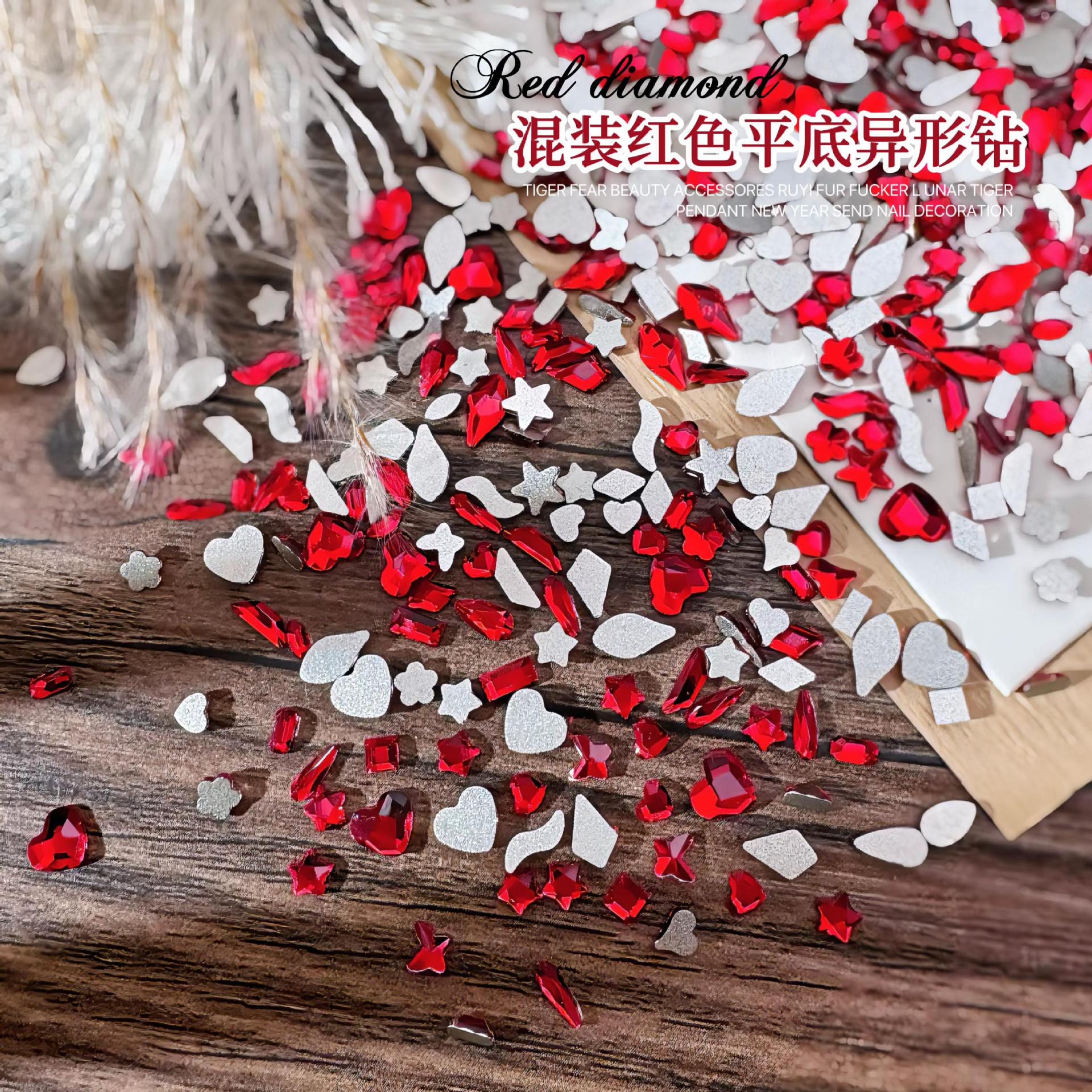 Ancora Red Reverted Edge Zircon 혼합 네일 아트 쥬얼리 새해 다크 레드 플랫 바닥 드릴 스몰 사이즈 모양의 네일 드릴 장식품스토어 가기