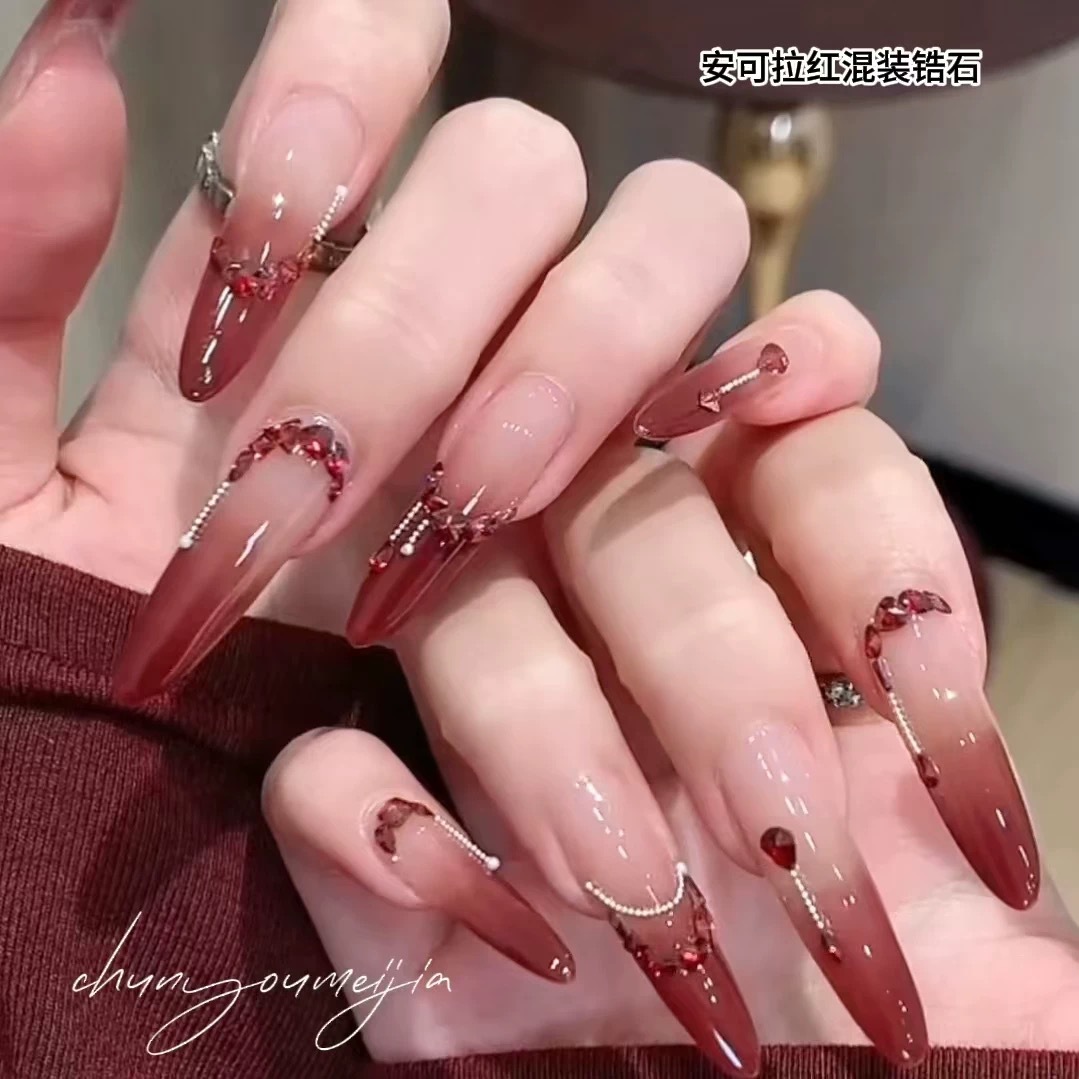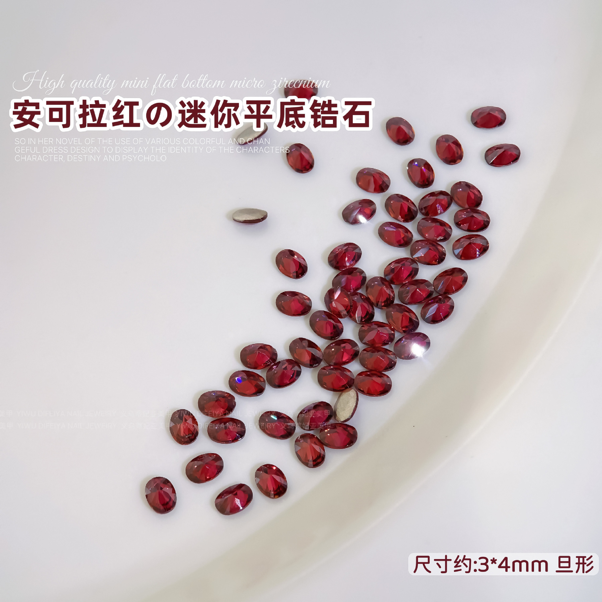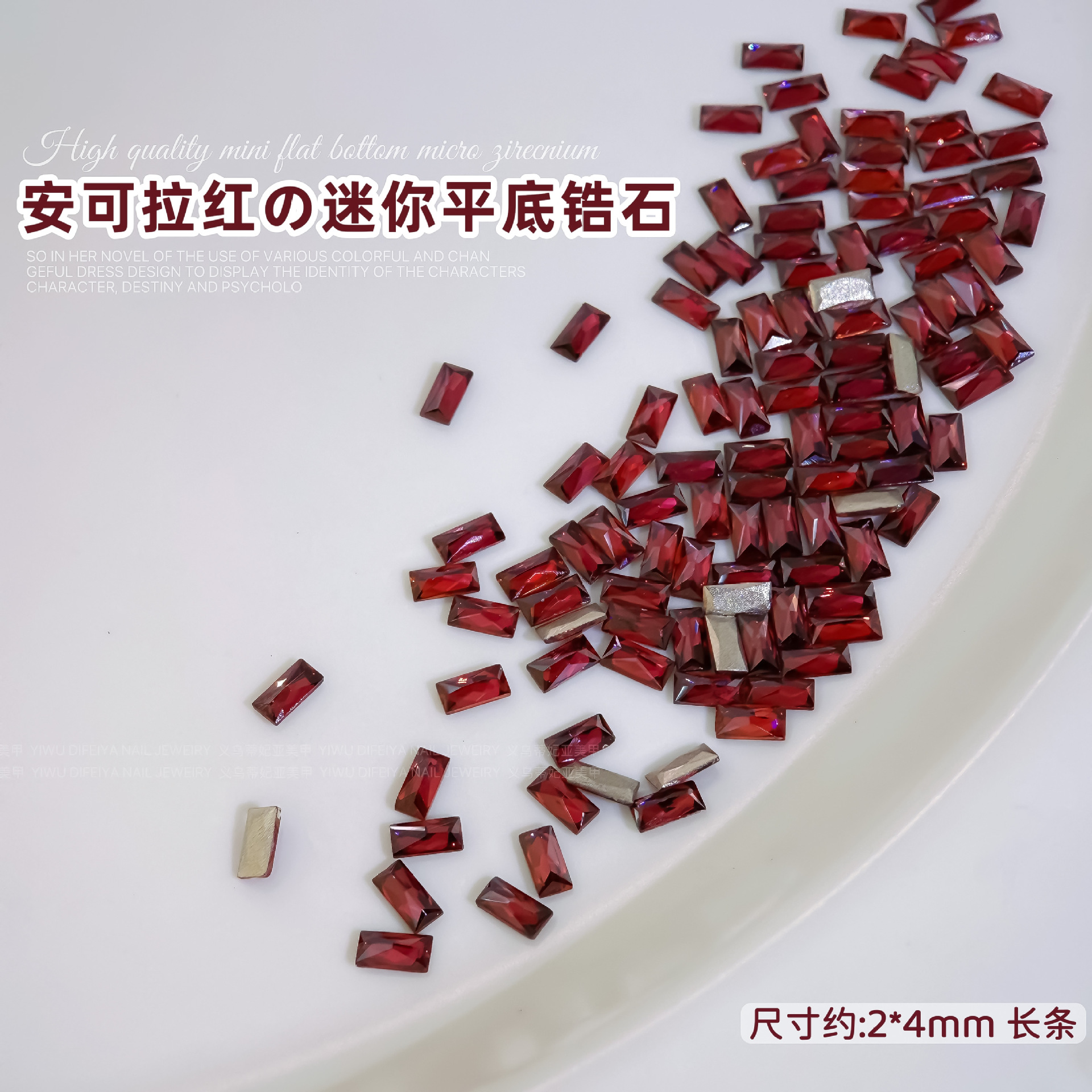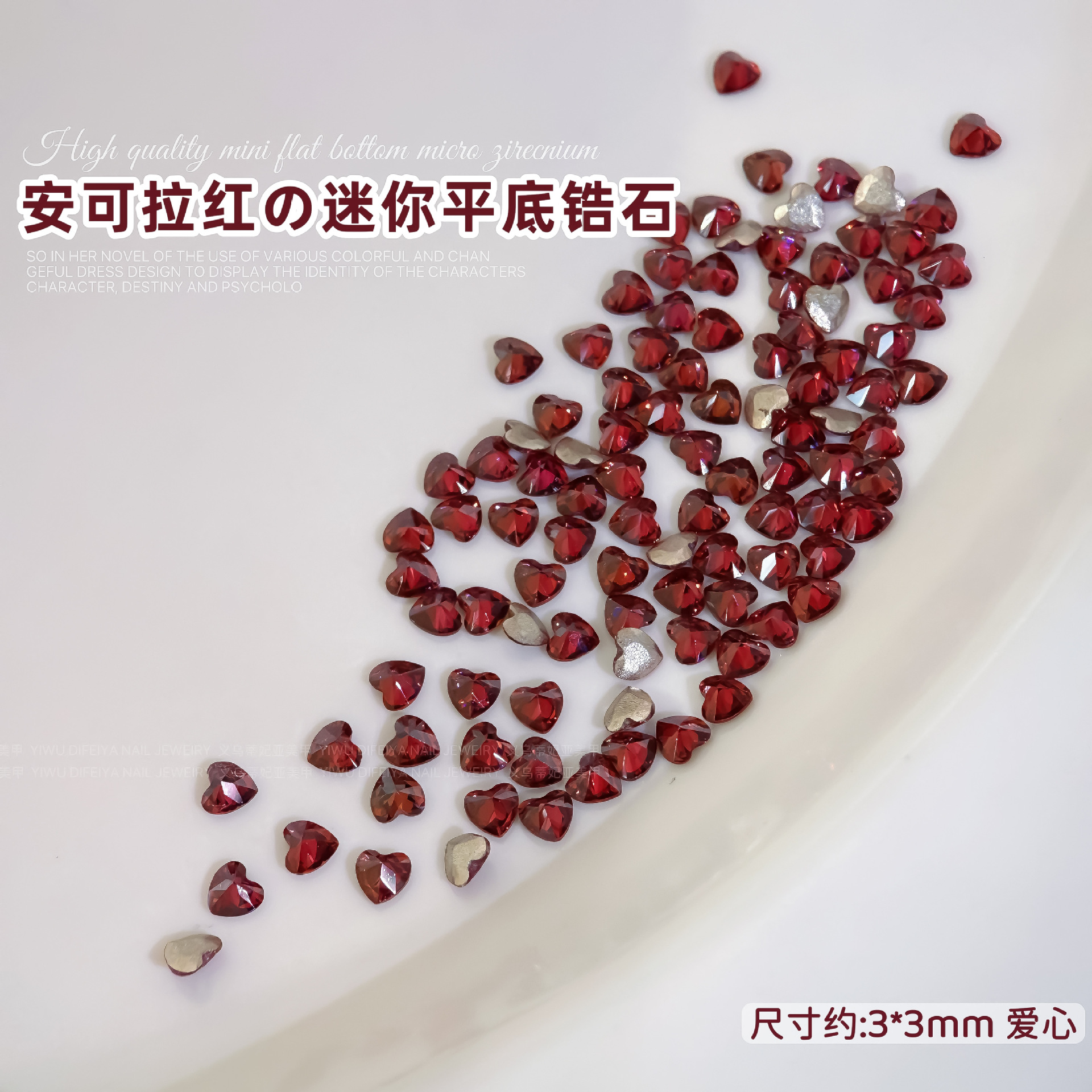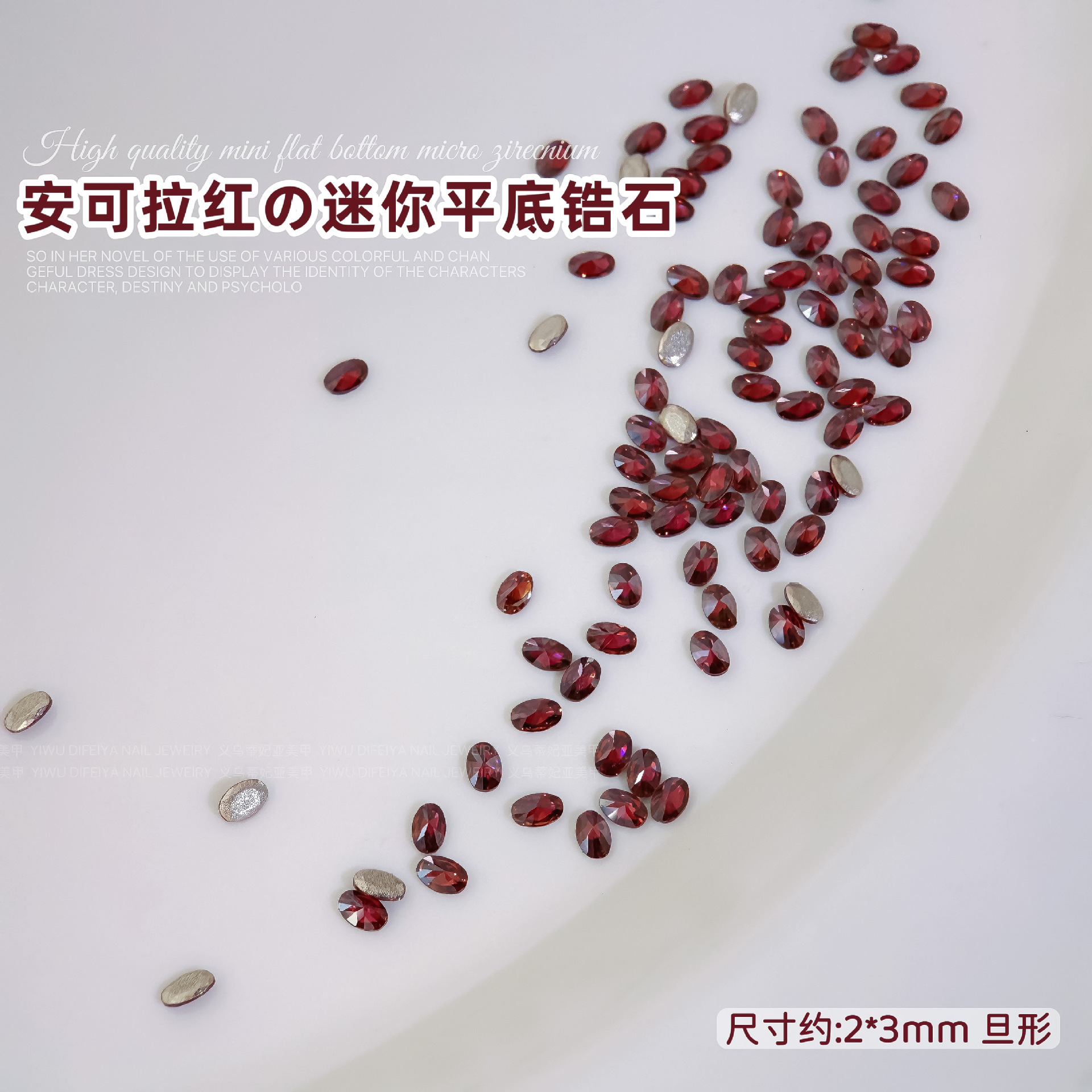 Ancora Red Reverted Edge Zircon 혼합 네일 아트 쥬얼리 새해 다크 레드 플랫 바닥 드릴 스몰 사이즈 모양의 네일 드릴 장식품스토어 가기