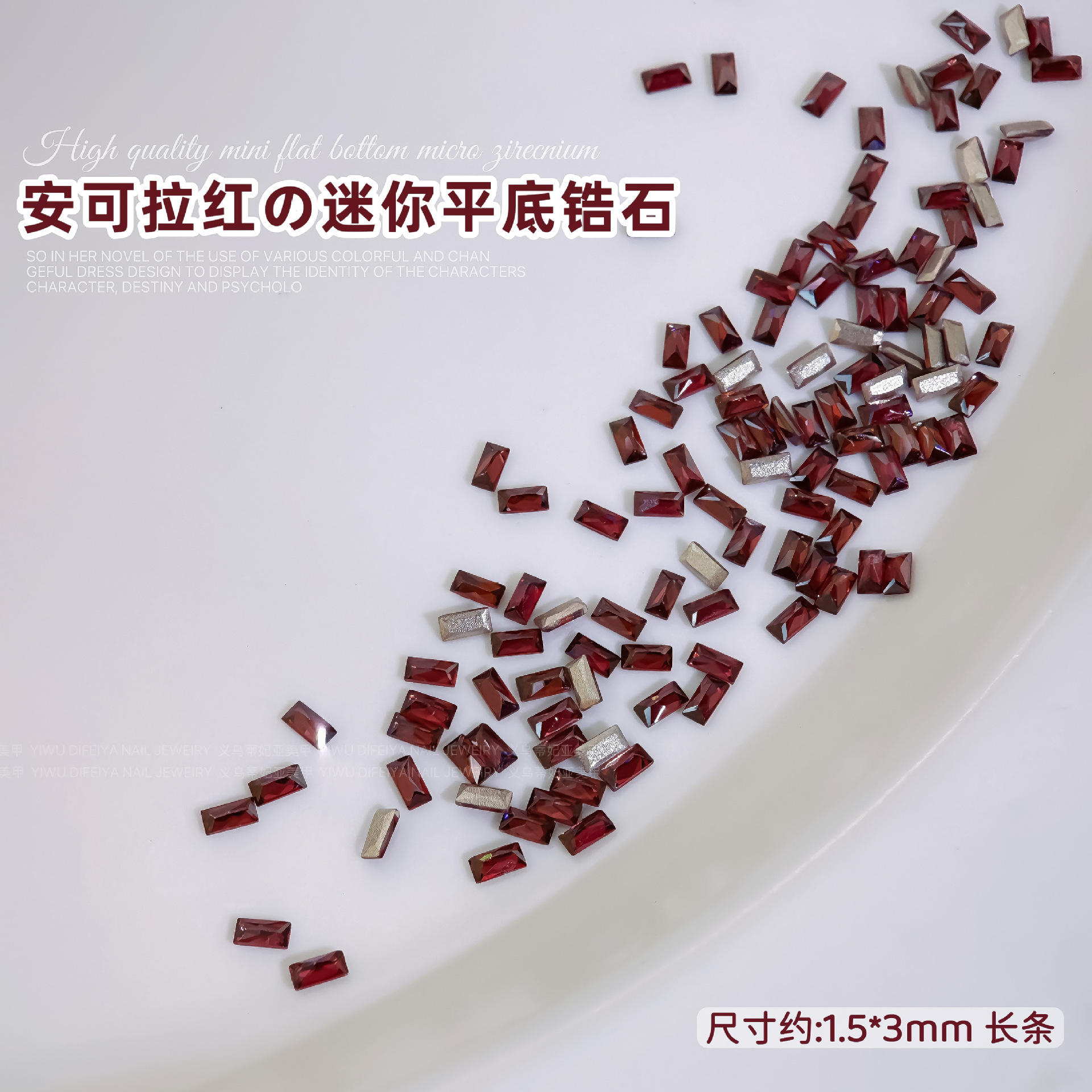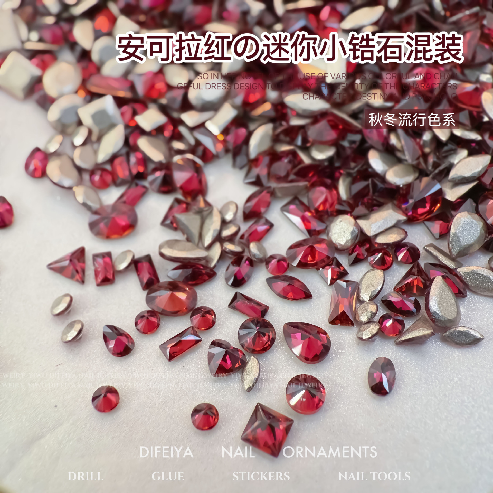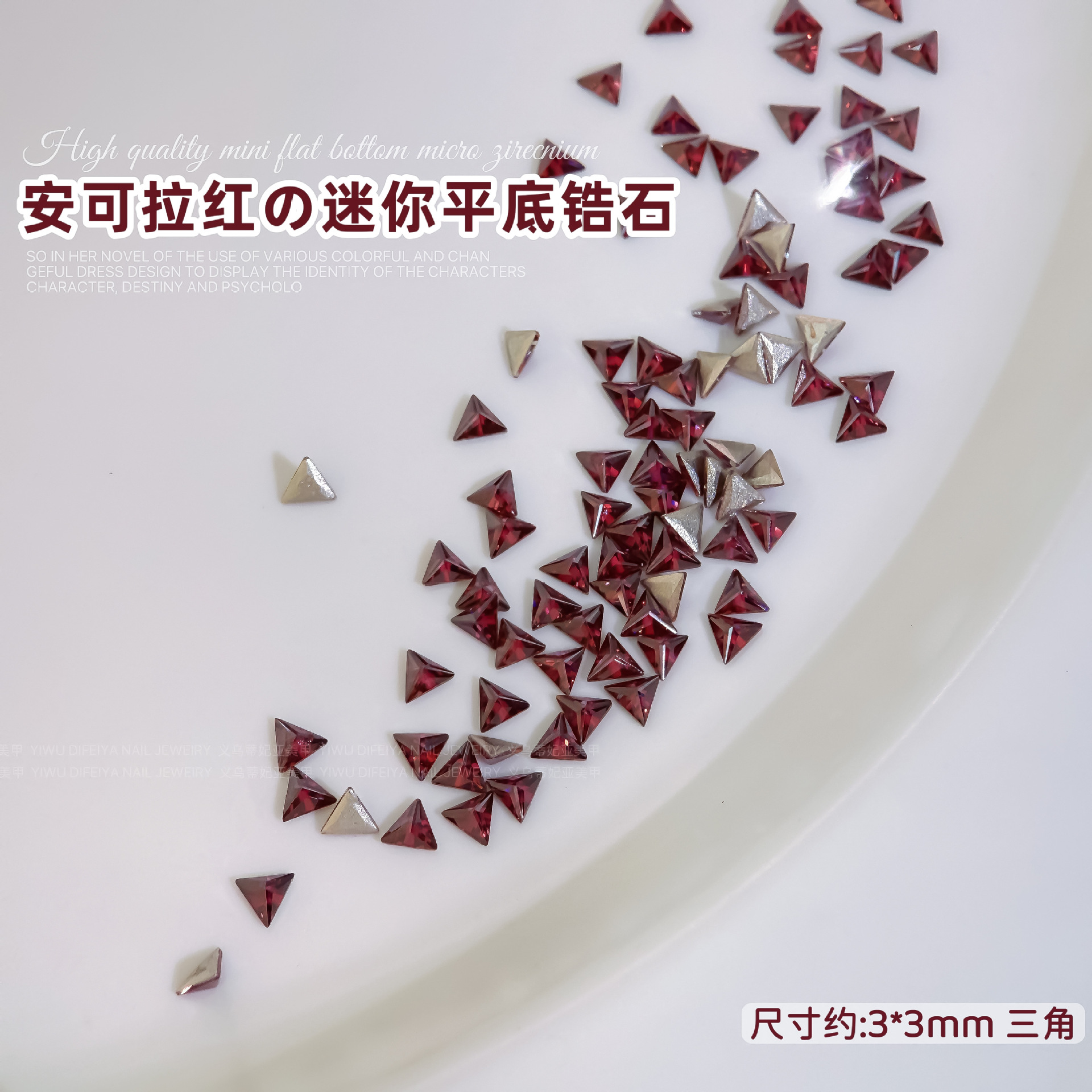 Ancora Red Reverted Edge Zircon 혼합 네일 아트 쥬얼리 새해 다크 레드 플랫 바닥 드릴 스몰 사이즈 모양의 네일 드릴 장식품