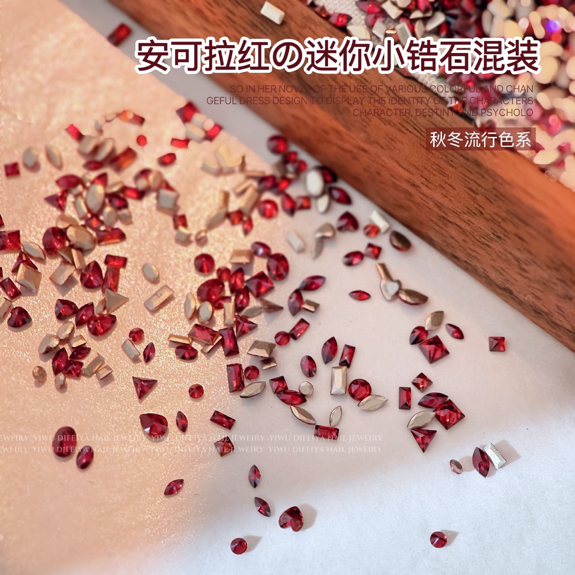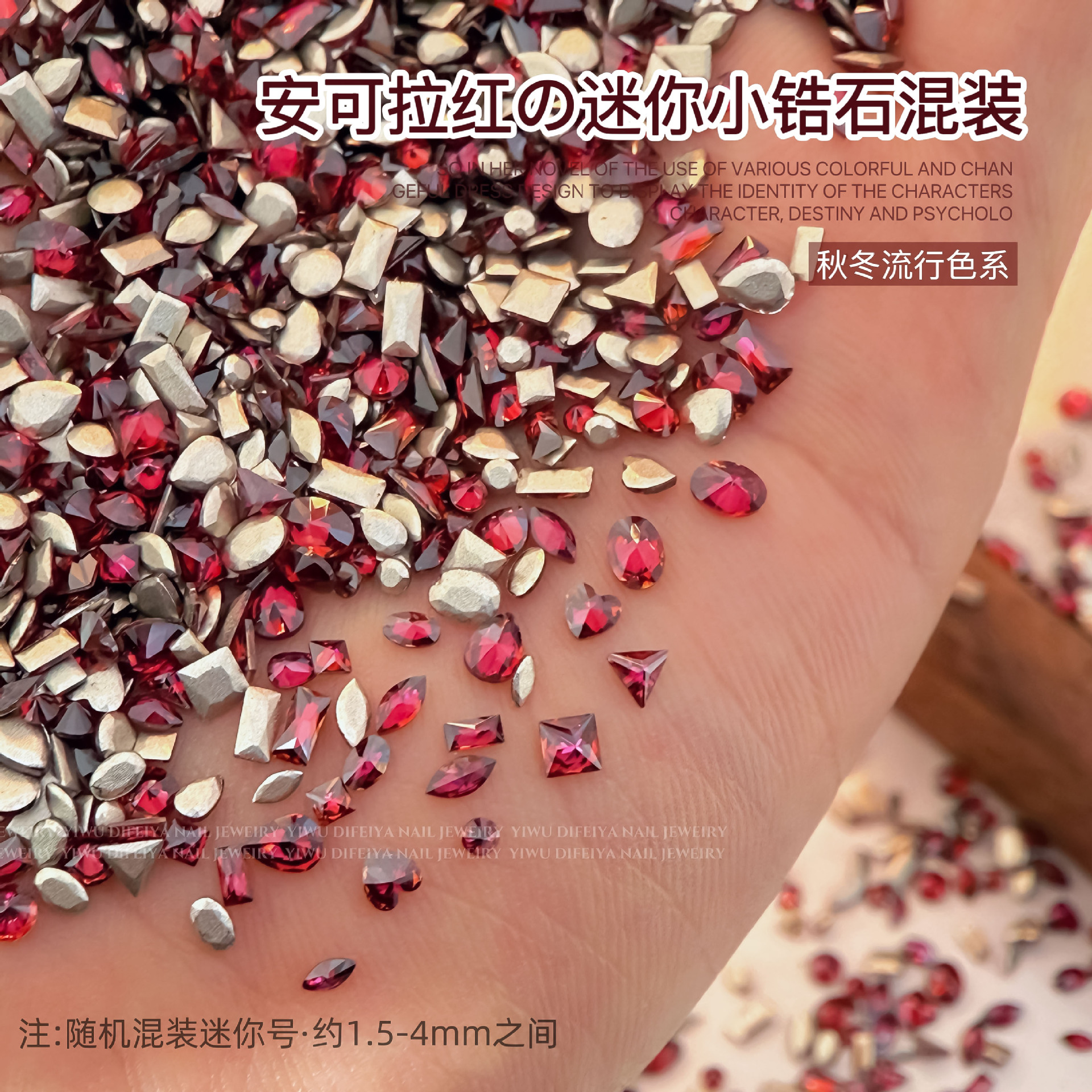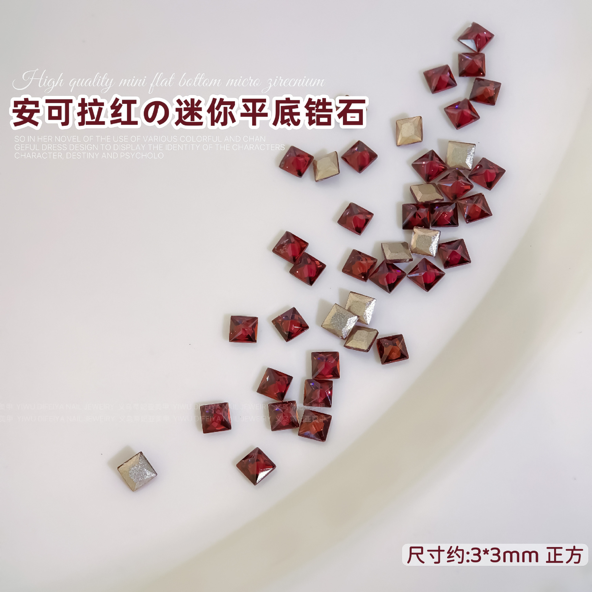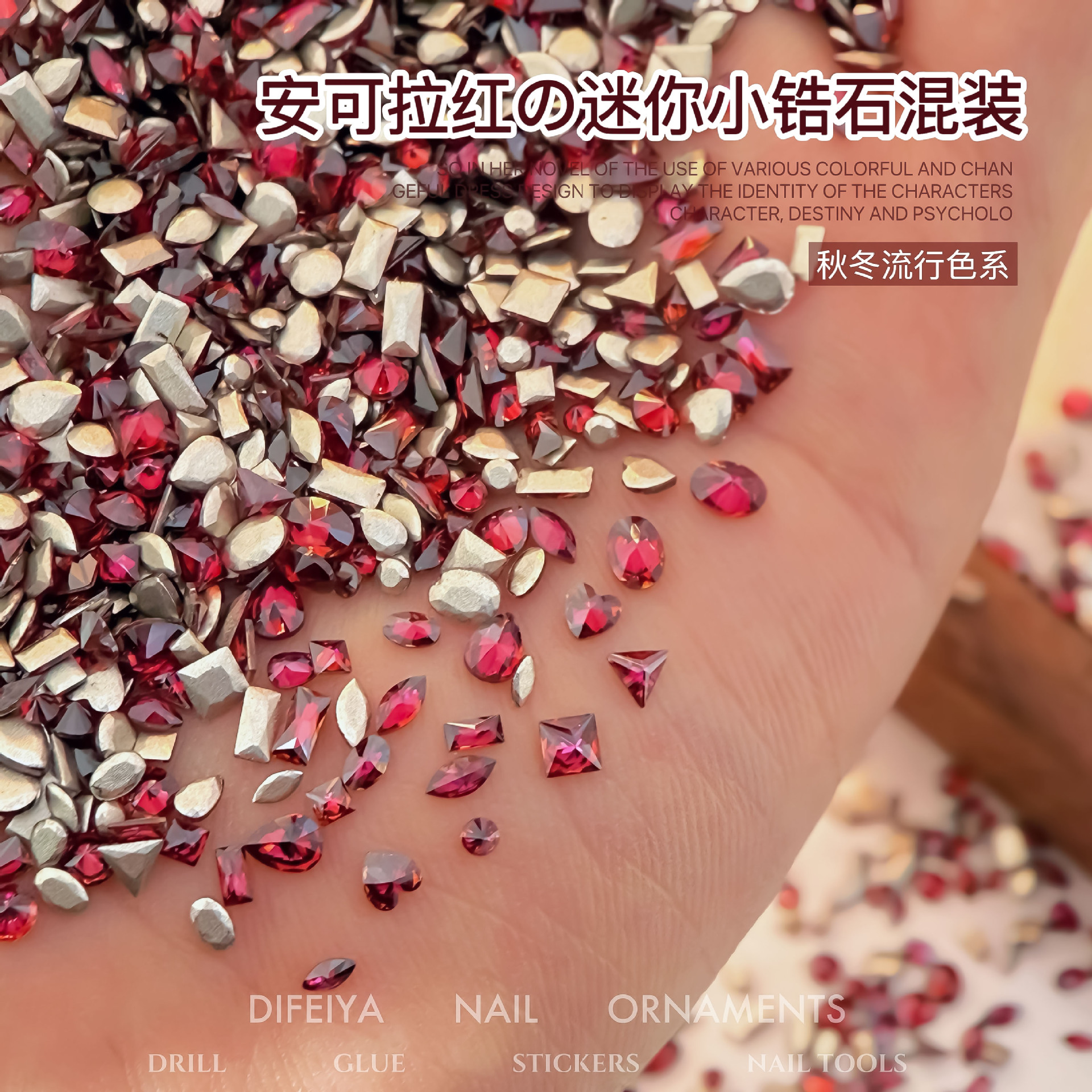 Ancora Red Reverted Edge Zircon 혼합 네일 아트 쥬얼리 새해 다크 레드 플랫 바닥 드릴 스몰 사이즈 모양의 네일 드릴 장식품