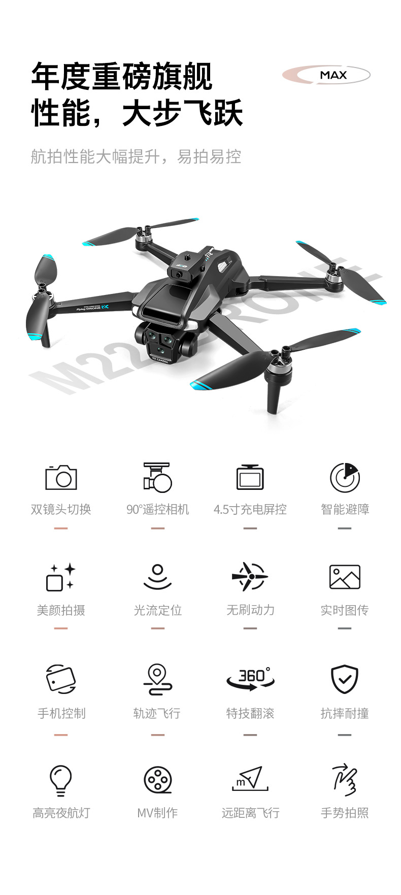 4.5inch 스크린 원격 제어 항공기 장애물 회피 항공 사진 쿼드콥터를 갖춘 국경 간 M22max 브러시리스 드론