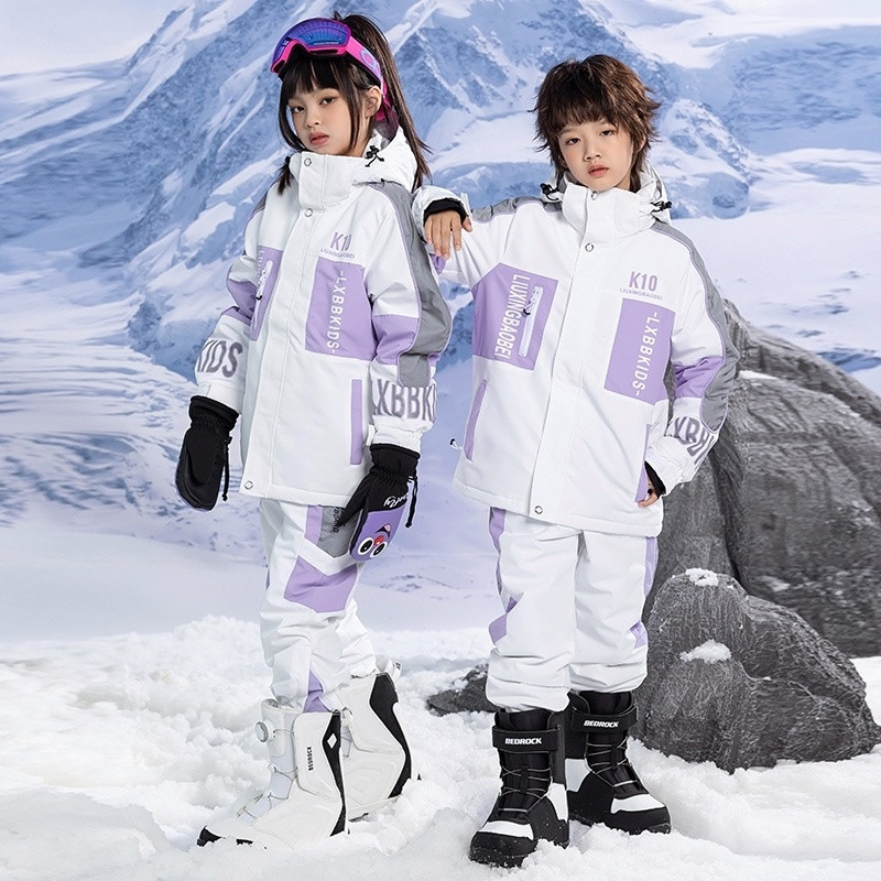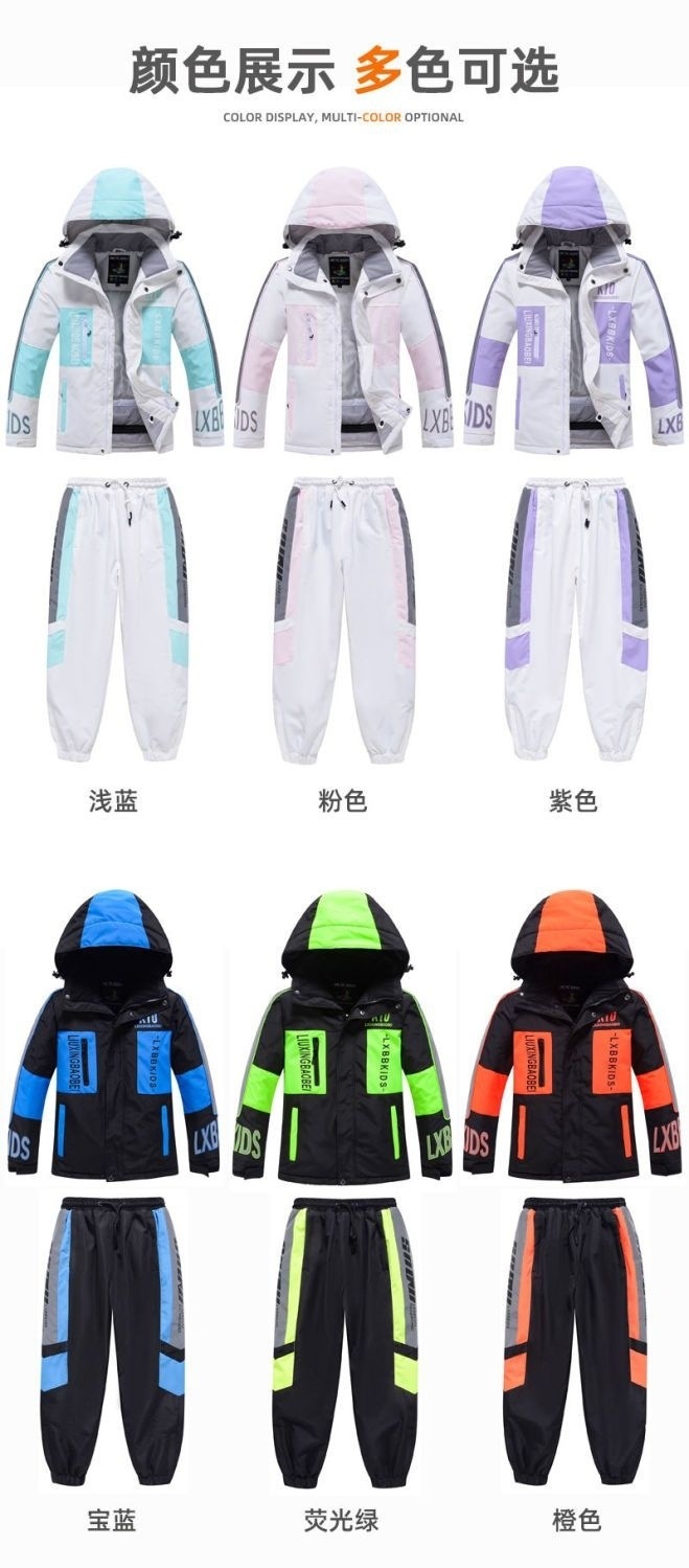 어린이 스키 세트 세트 소년 소녀 겨울 방풍 물 튀는 따뜻한 스노우 보드 더블 보드 스노우 보드 바지 세트