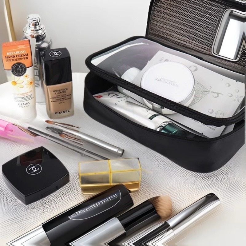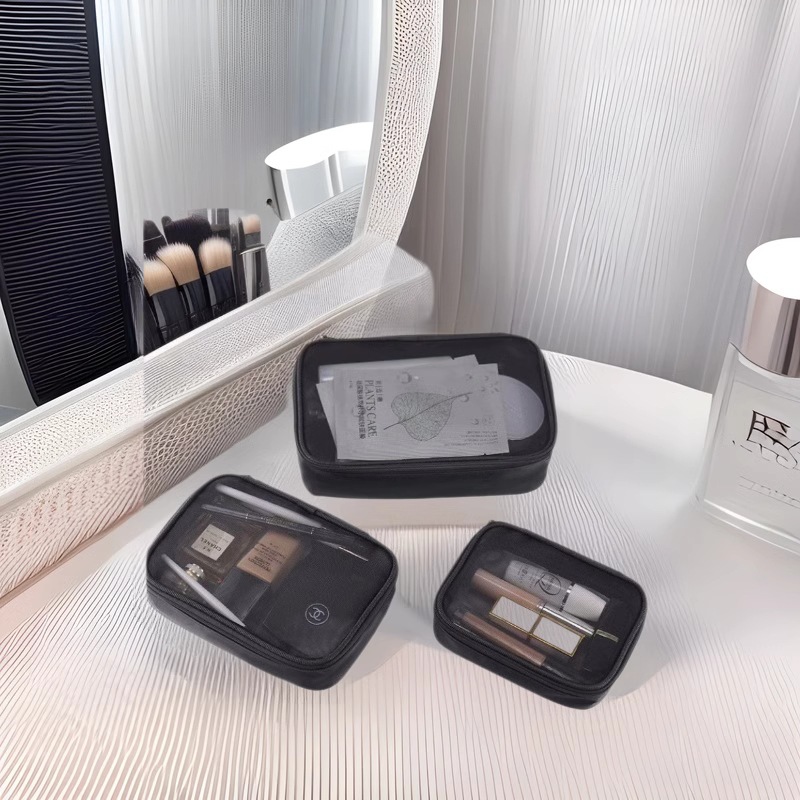 한국 스타일의 새로운 도착 휴대용 투명 통기성 메쉬 메이크업 백 방수 대용량 휴대용 여성용 여행 워시 보관 가방스토어 가기