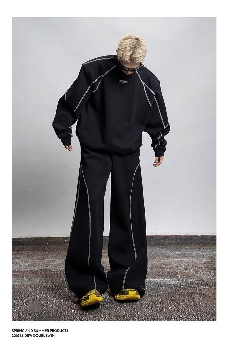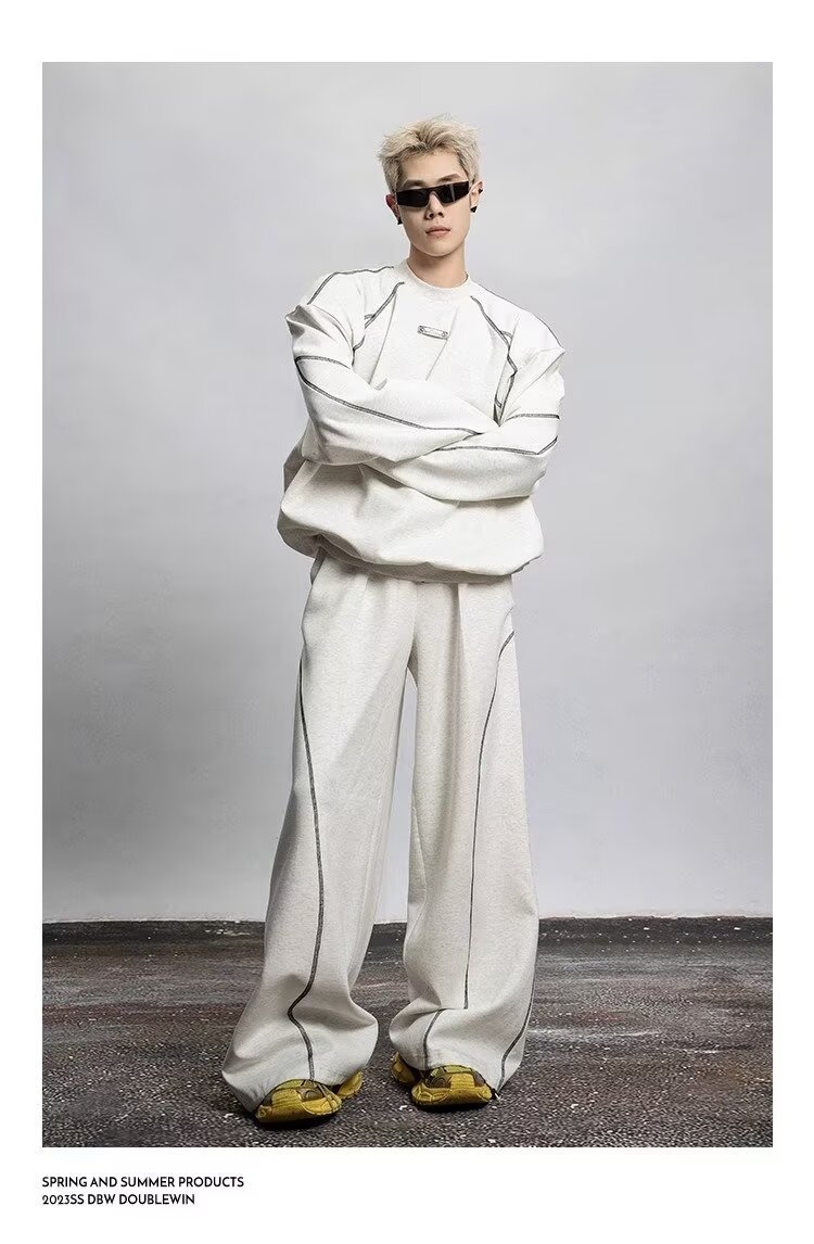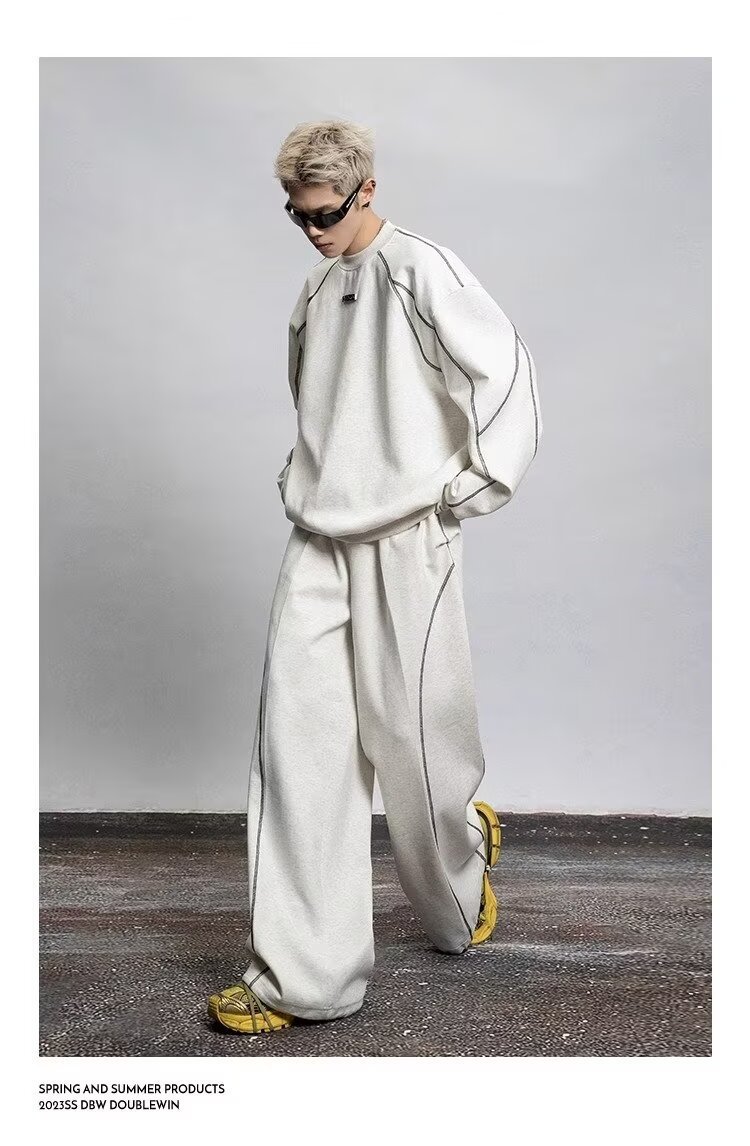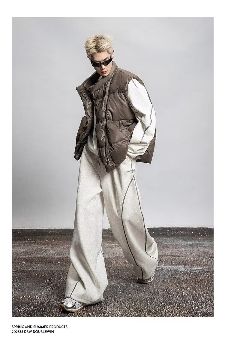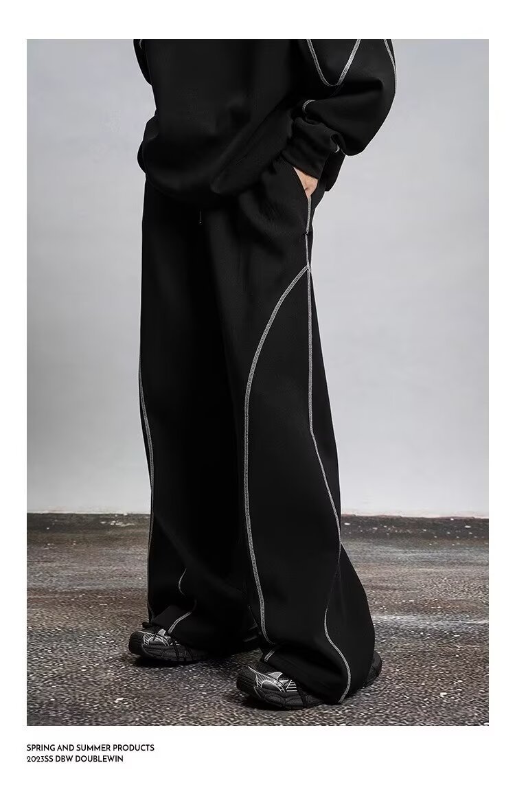 2025 봄과 가을 미국 스포츠 바지 남자 스트레이트 바지 넓은 다리 캐주얼 느슨한 올매치 캐주얼 바지스토어 가기