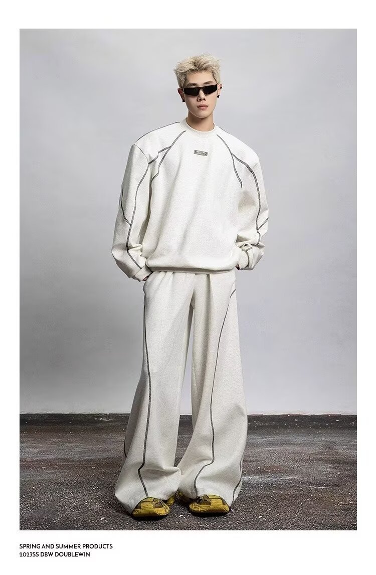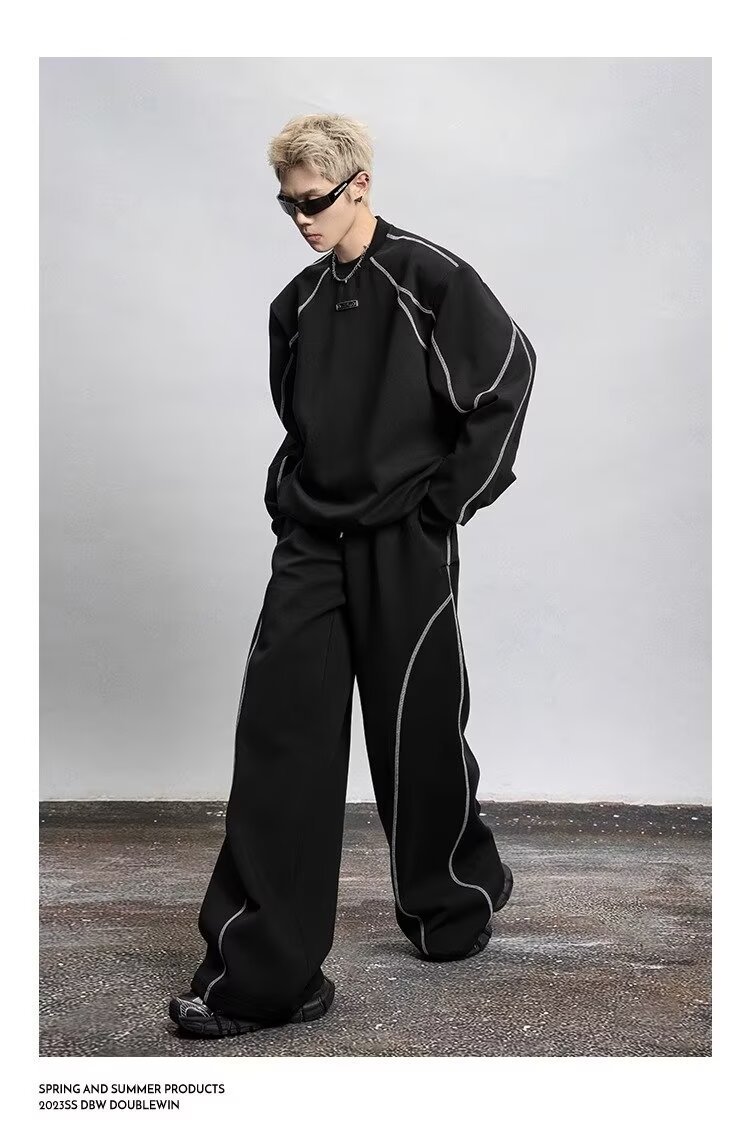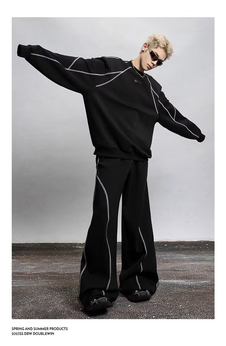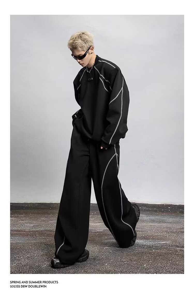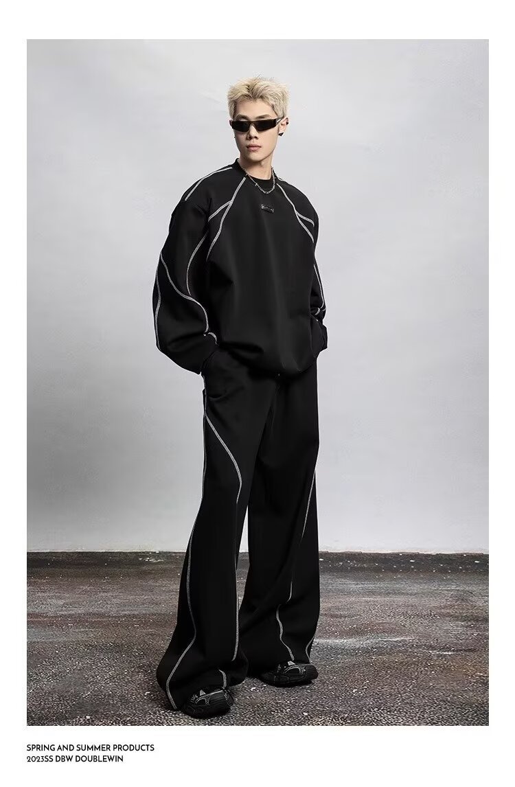 2025 봄과 가을 미국 스포츠 바지 남자 스트레이트 바지 넓은 다리 캐주얼 느슨한 올매치 캐주얼 바지스토어 가기