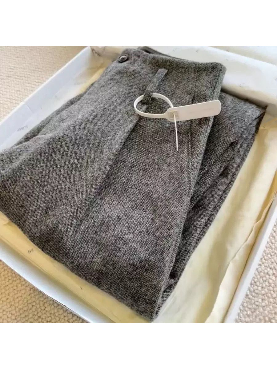D 추천 없는 슈퍼 아름다운 단일 제품! 회색 양모 낫 바지 여성의 가을 작은 높은 허리 모직 두꺼운 바나나 바지