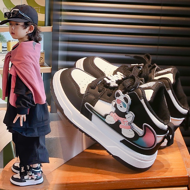 소년 소녀 운동화 2025 봄과 가을 신상 어린이 가죽 중급 보드 신발 소프트 솔 통기성 대형 어린이 및 소녀스토어 가기