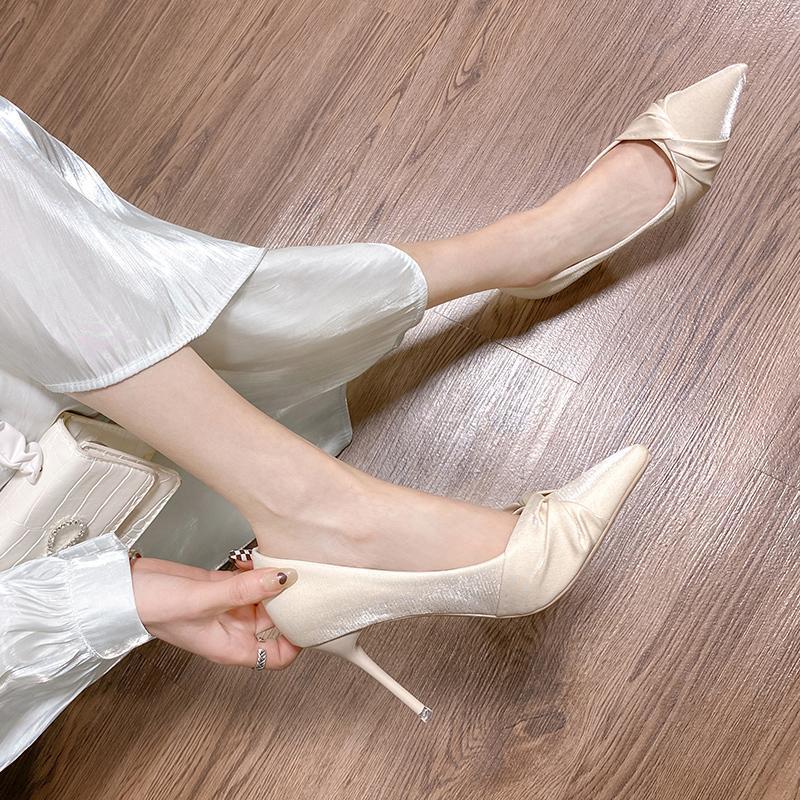 흰색 프랑스 Cm 낮은 뒤꿈치 신부 들러리 신발 피트가 맞지 않는 스커트 발 하이힐 여성 디자인 센스 틈새 기질 연예인 싱글스토어 가기