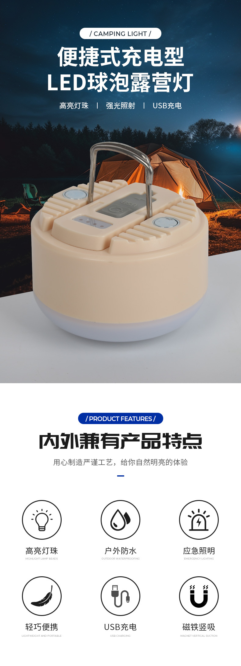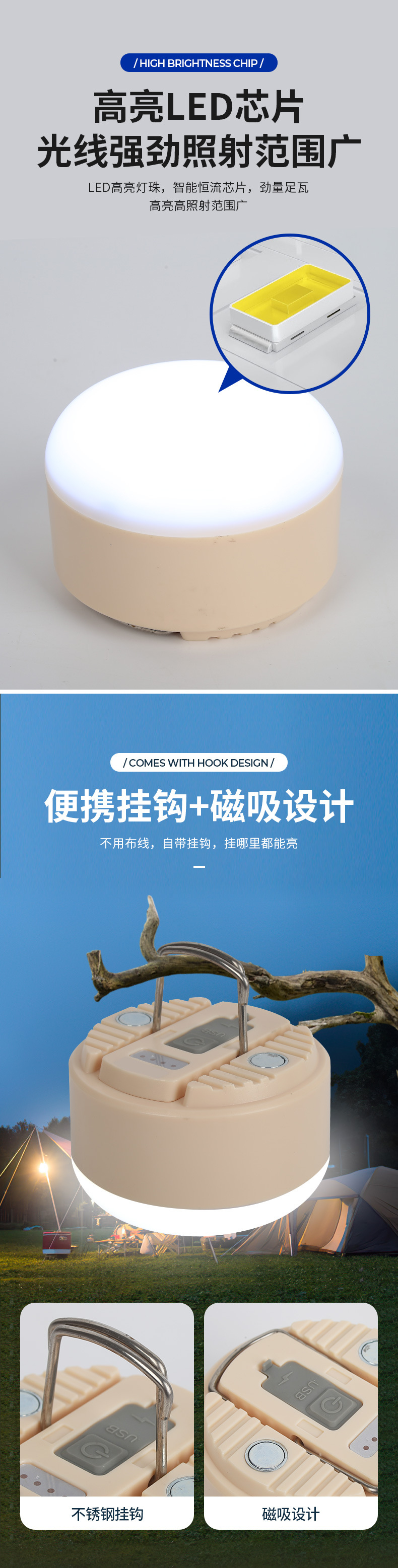 LED 캠핑 라이트 텐트 라이트 야외 캠핑 조명 충전식 전구 조명 조도 조절 가능
