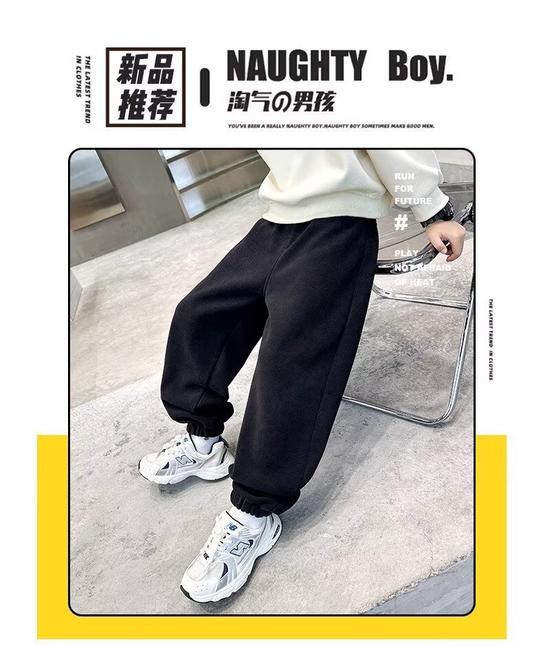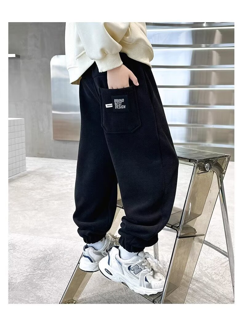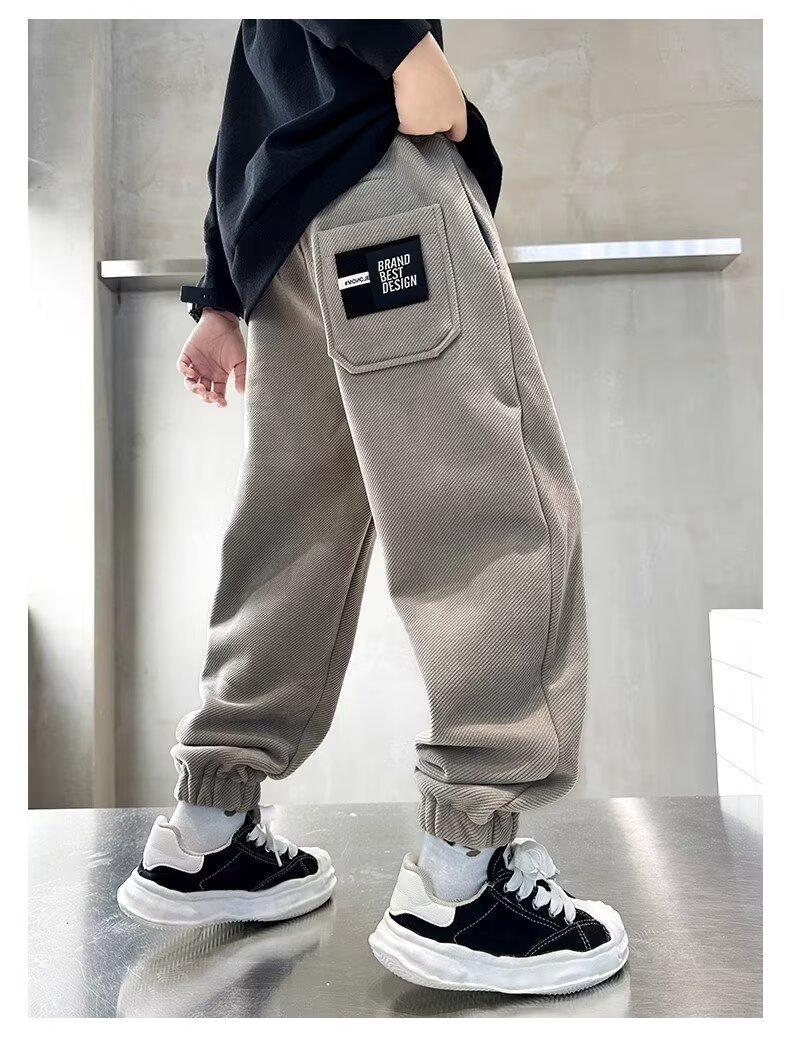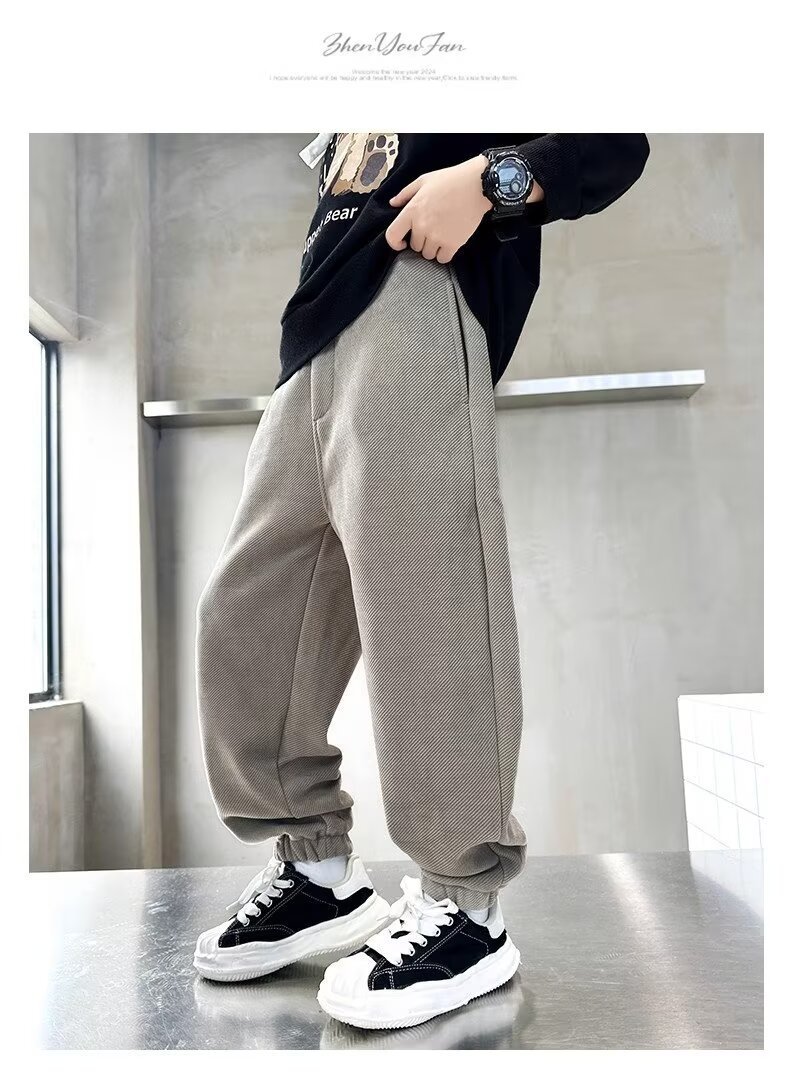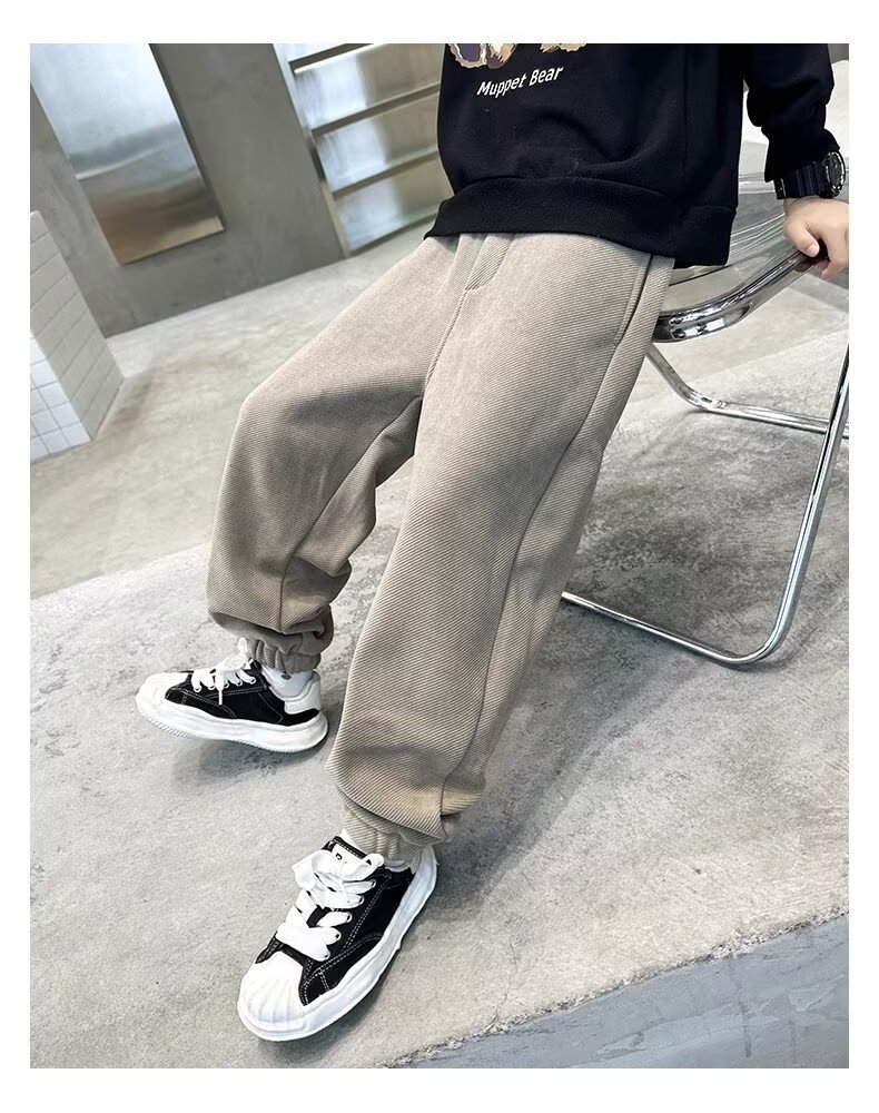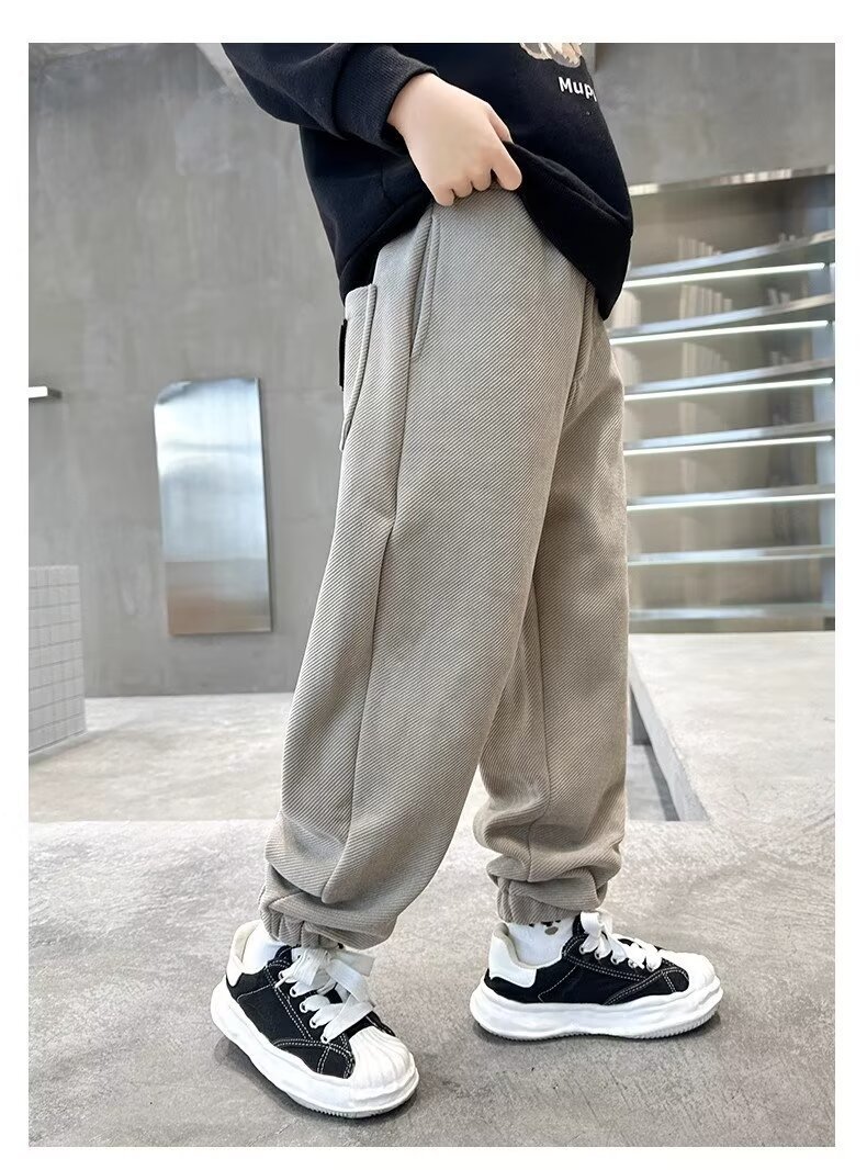 어린이 소년 기모 바지 2024 가을 겨울 새 소년 겨울 두꺼운 중대형 어린이 스포츠 바지 트렌디