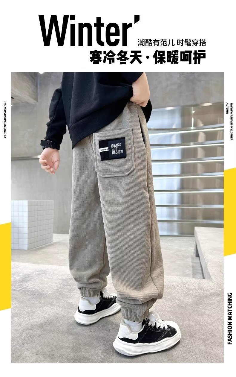 어린이 소년 기모 바지 2024 가을 겨울 새 소년 겨울 두꺼운 중대형 어린이 스포츠 바지 트렌디스토어 가기