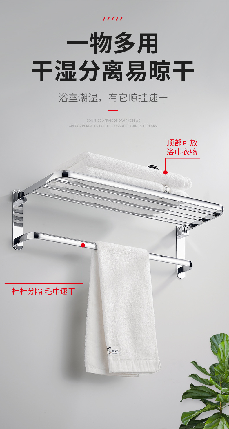 펀치없는 화장실 보관 랙 벽걸이 형 욕실 보관 선반 스테인레스 스틸 크롬 도금 하이 엔드 펀치 프리 목욕 타월 랙