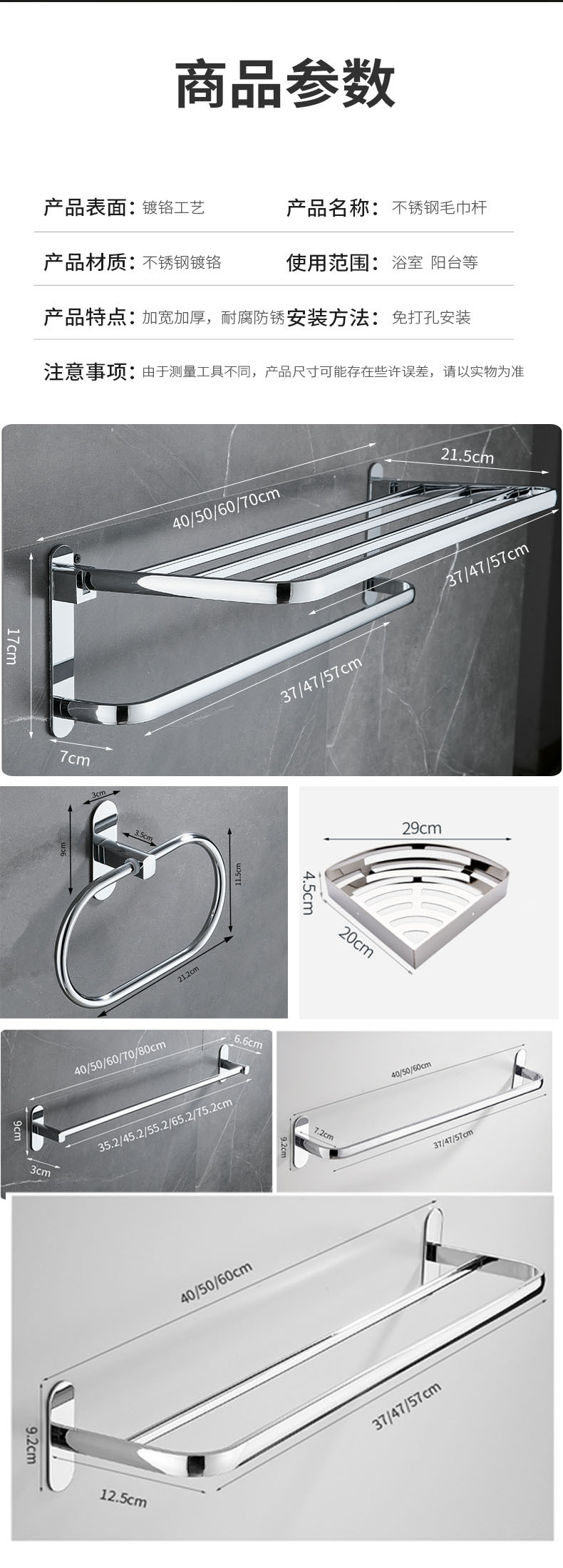 • 스테인레스 스틸 50CM 크롬 도금 업그레이드 이중 극 수건 걸이