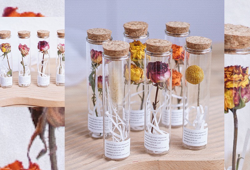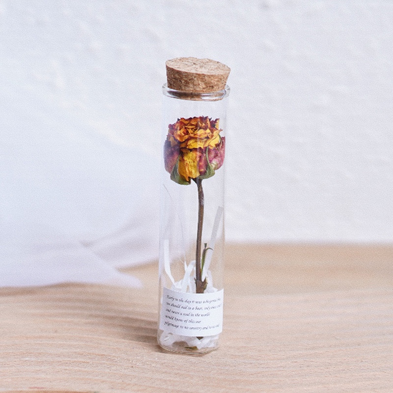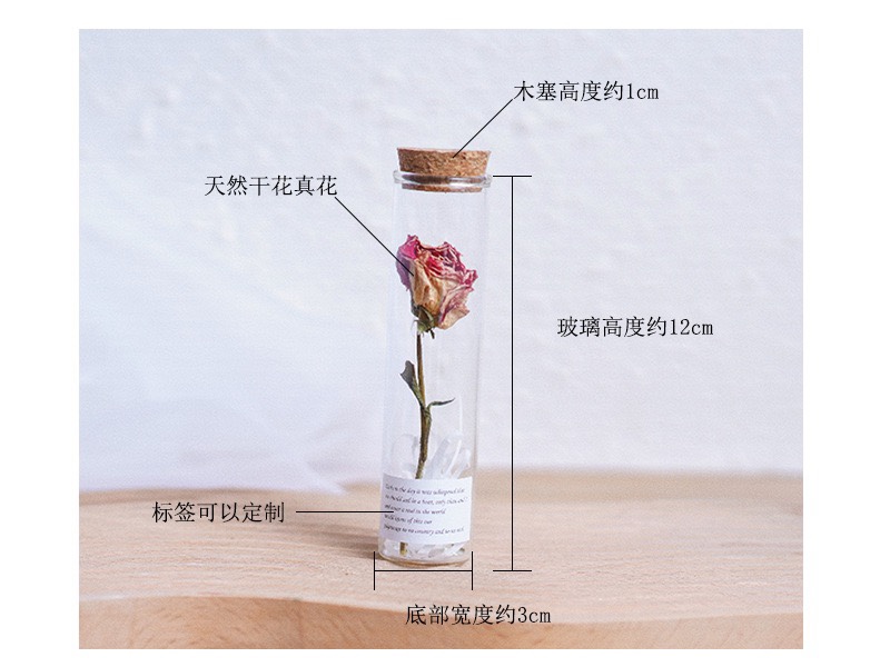 말린 꽃 장미 테스트 튜브 유리 작은 장식품 영원한 꽃 꽃다발 소원 병 말린 꽃 식물 표본 발렌타인 데이 선물스토어 가기