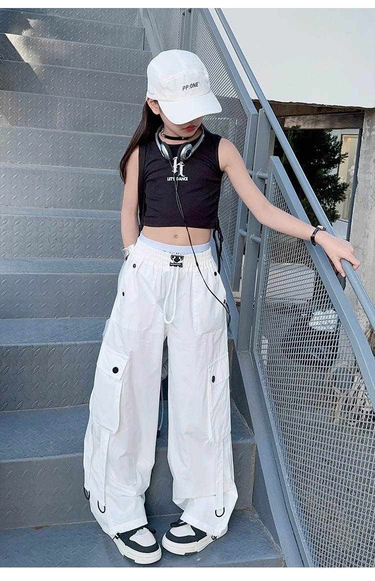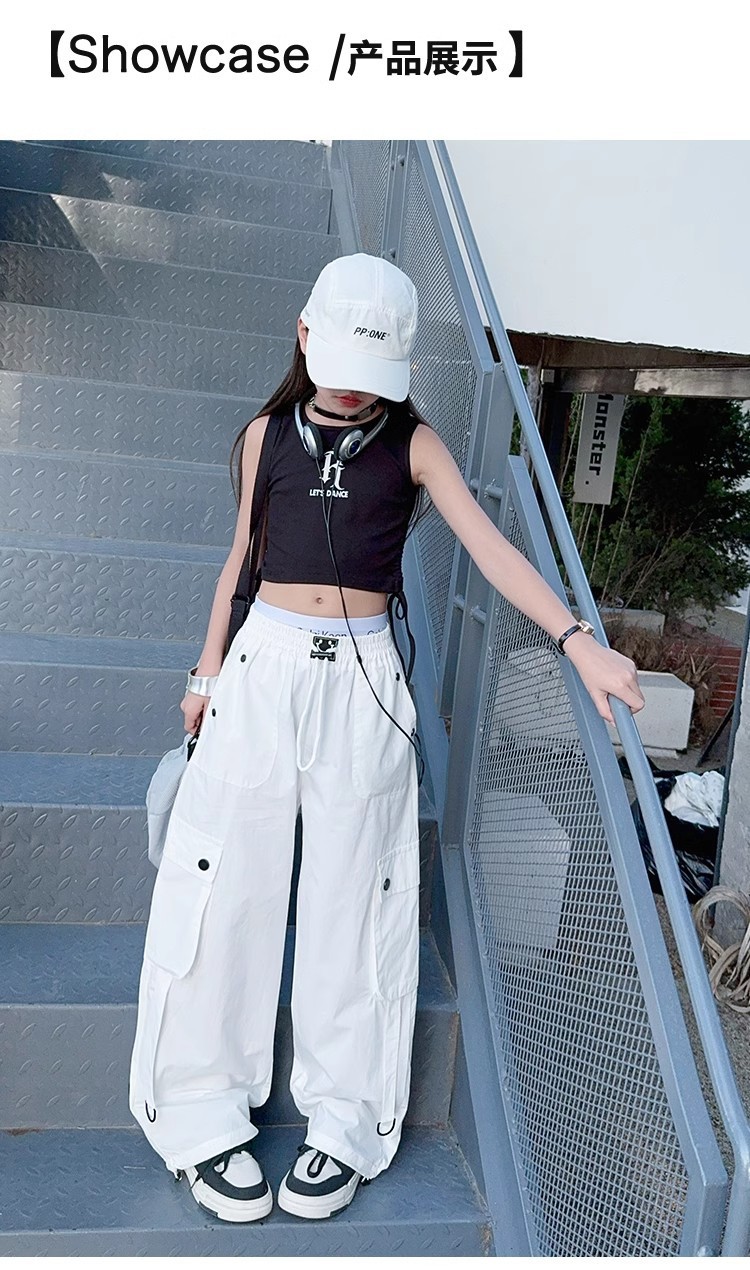 소녀 화이트 코일 바지 가을 얇은 빠른 건조 미국 바지 높은 허리 재즈 댄스 캐주얼 2024 새로운 스타일