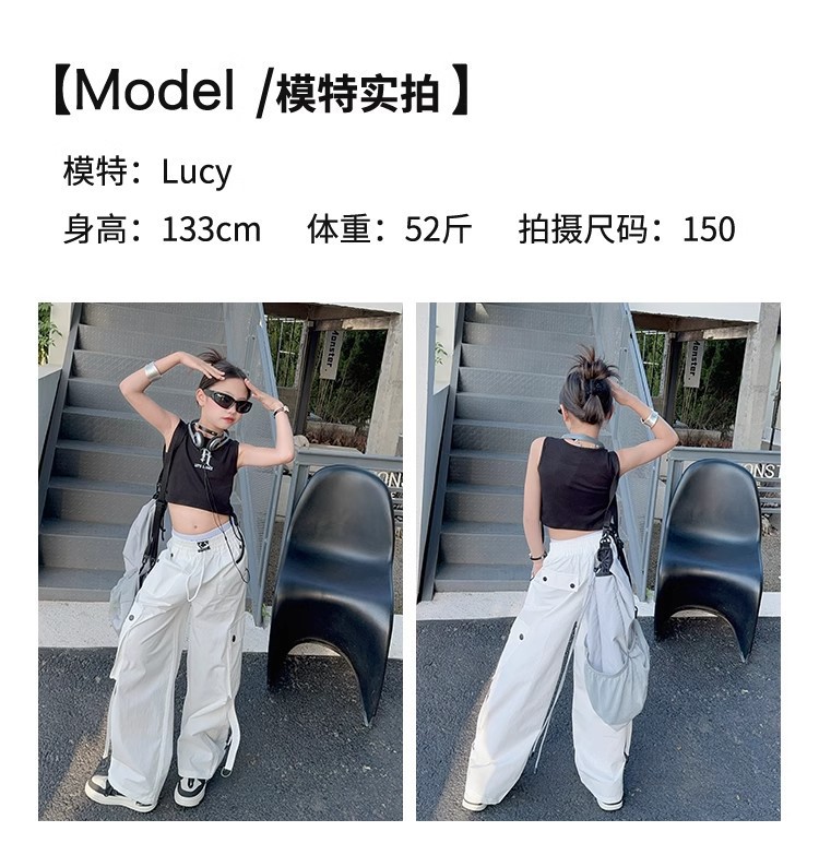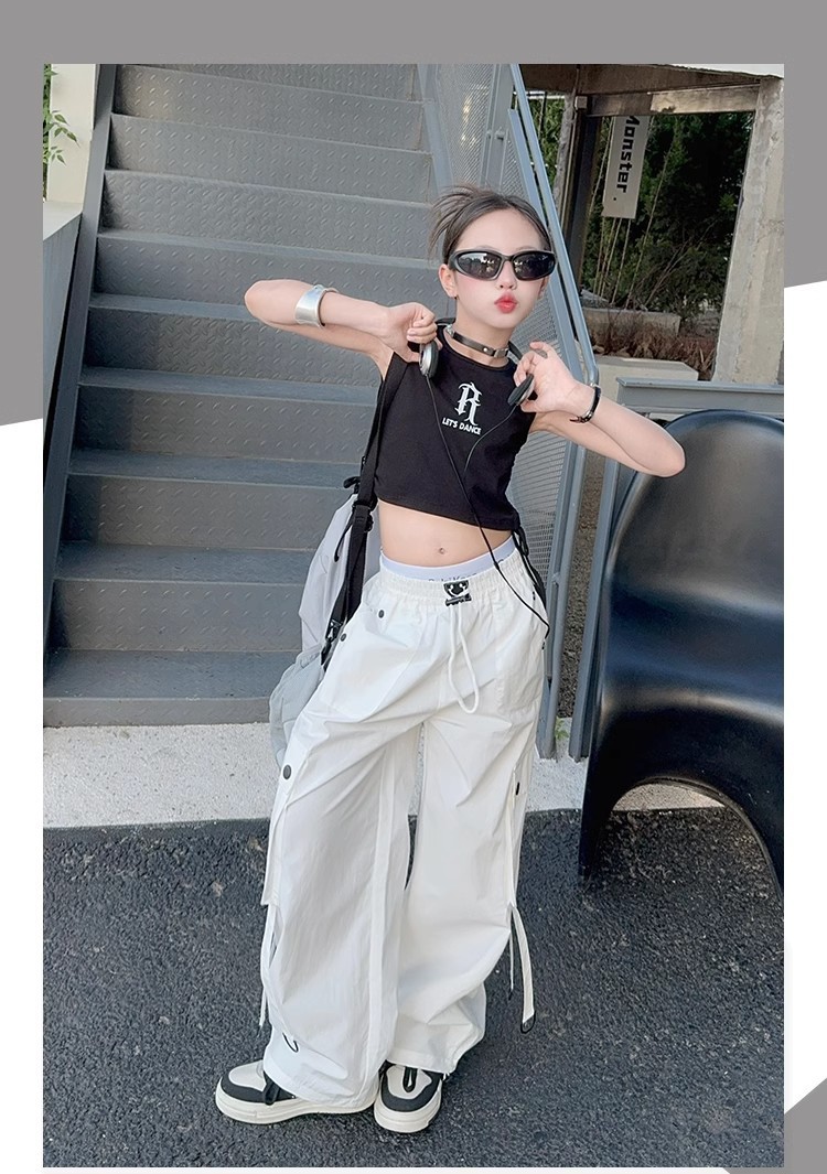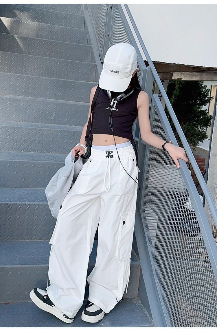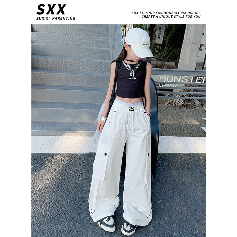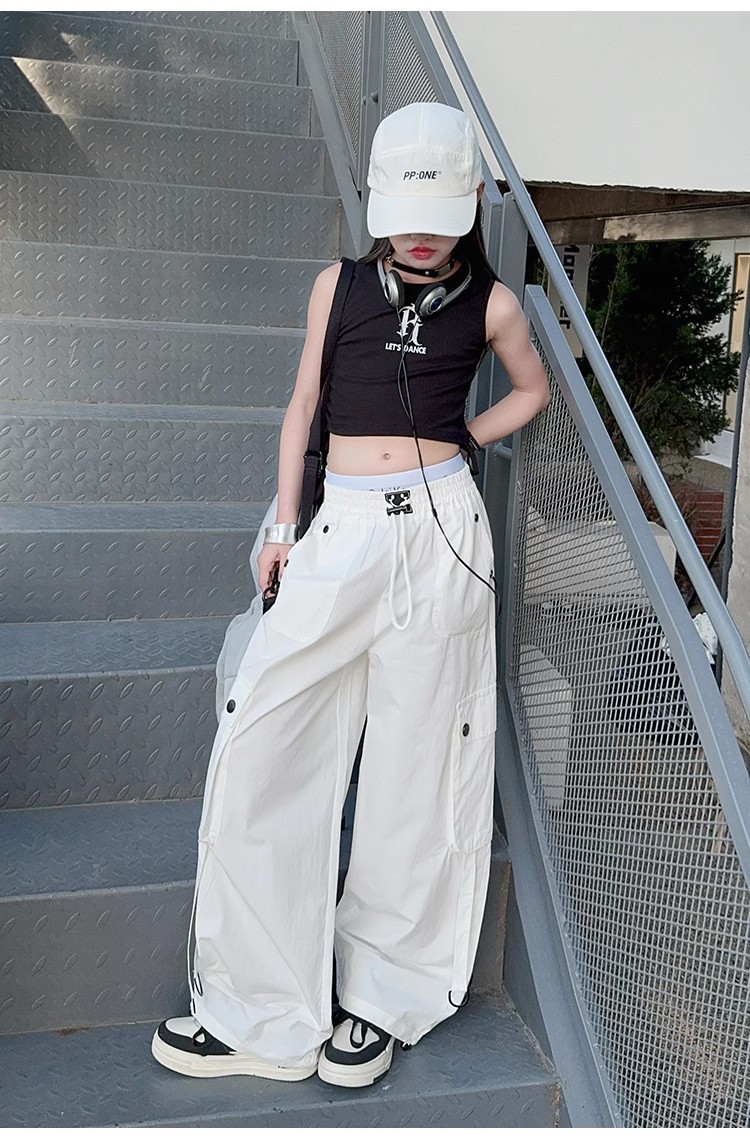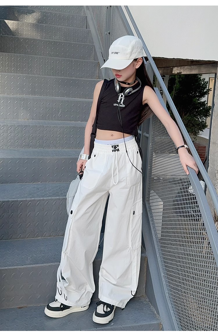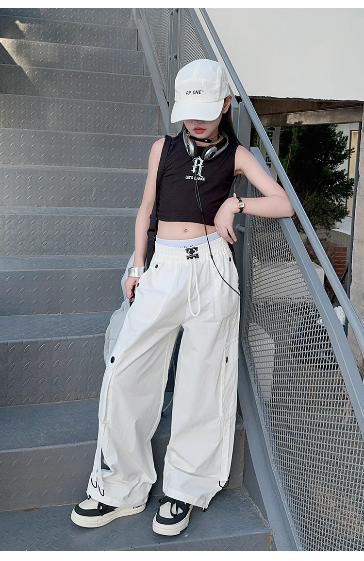 소녀 화이트 코일 바지 가을 얇은 빠른 건조 미국 바지 높은 허리 재즈 댄스 캐주얼 2024 새로운 스타일스토어 가기