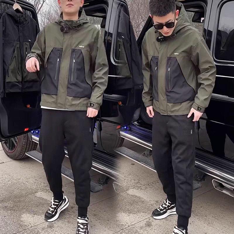 2024 가을과 겨울 올 매치 폭행 의류 트렌디 브랜드 남성 한국식 스포츠 레저 코트 그물 인기있는 같은 스타일의 느슨한 후드 재킷