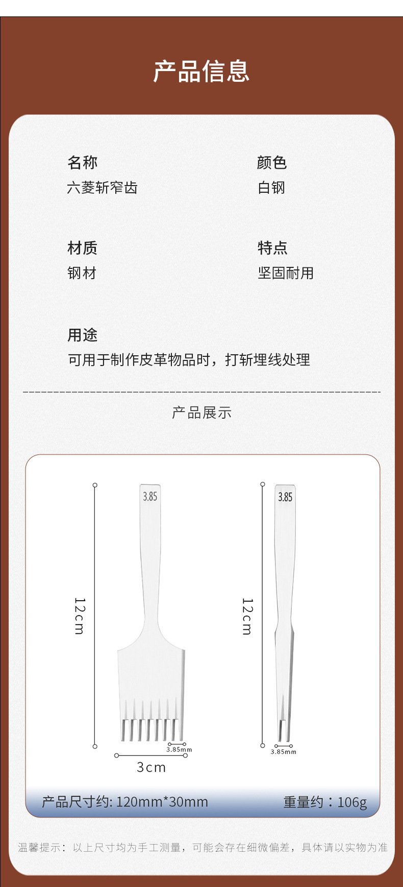 Liuling 컷 좁은 이빨 수제 가죽 DIY 펀치 도구 유럽식 Oblique Flat Cut 전문 펀치 바느질