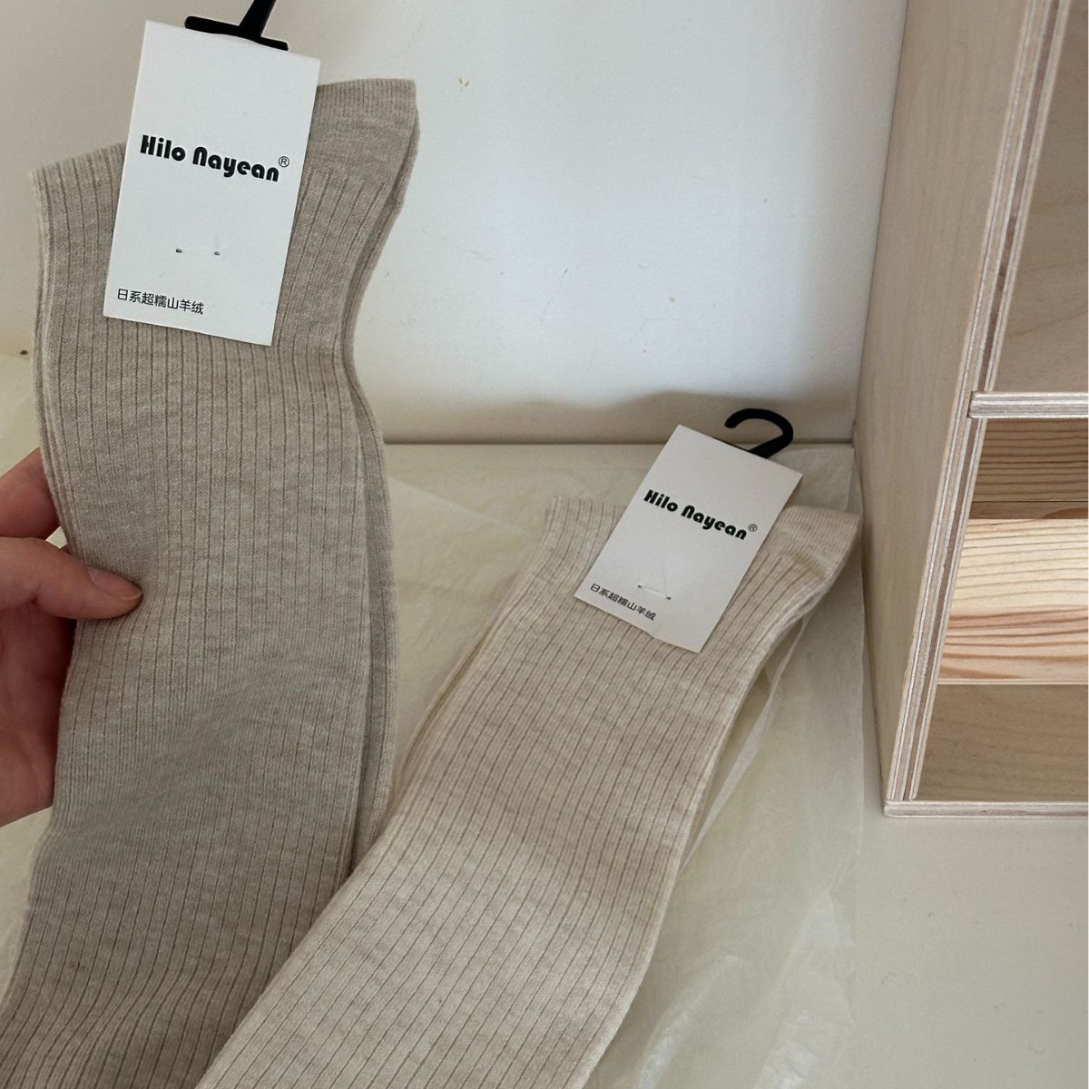 Zhuji 양말 여성 가을 및 겨울 새로운 핏 스트립 소프트 왁스 양 울 인 스타일 긴 튜브 여성용 양말 스택 양말 여성용 섀넌 양말스토어 가기