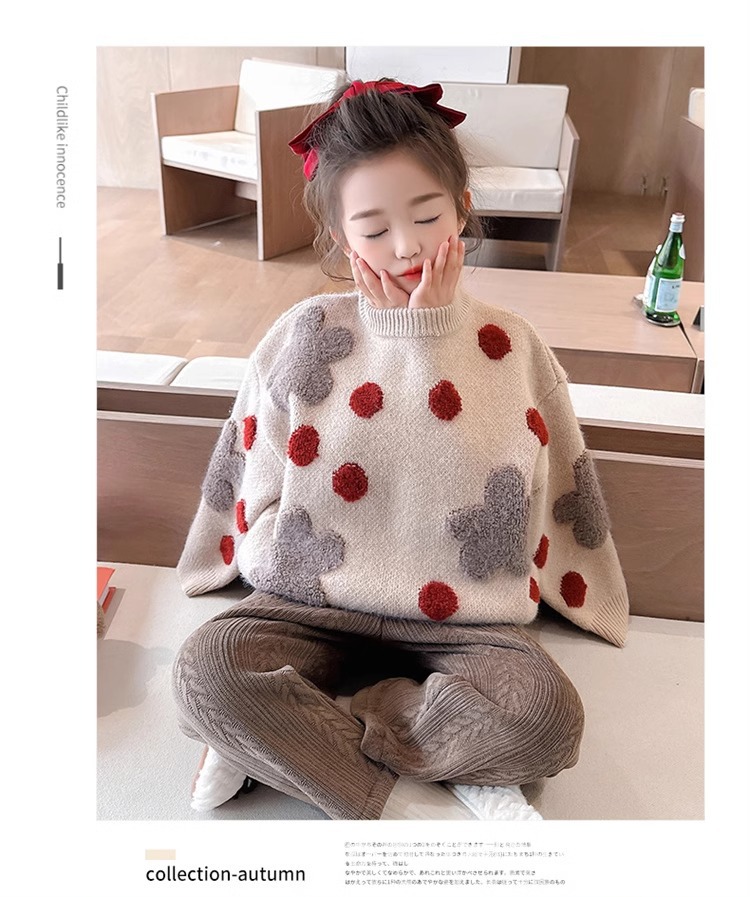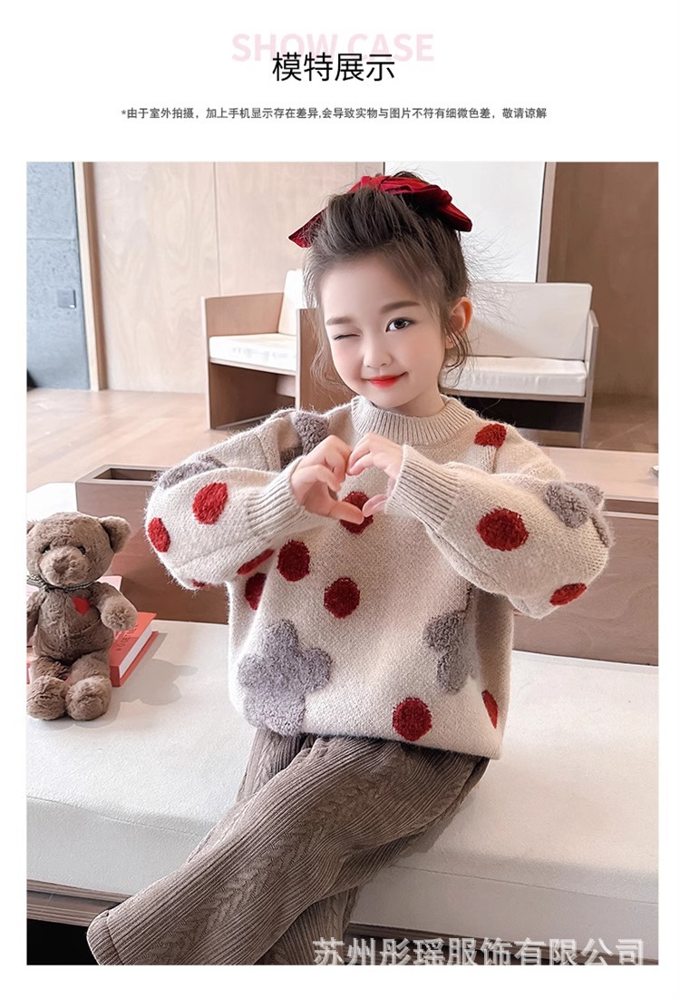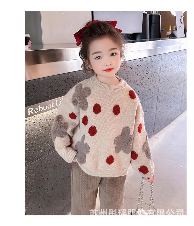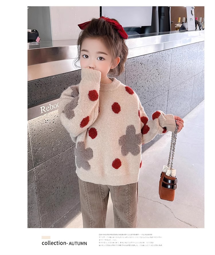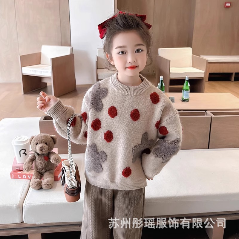 여아용 스웨터 2025 겨울 두꺼운 라운드넥 풀오버 니트웨어 여자 아기 패션 외출복 귀엽고 세련된 외출복스토어 가기