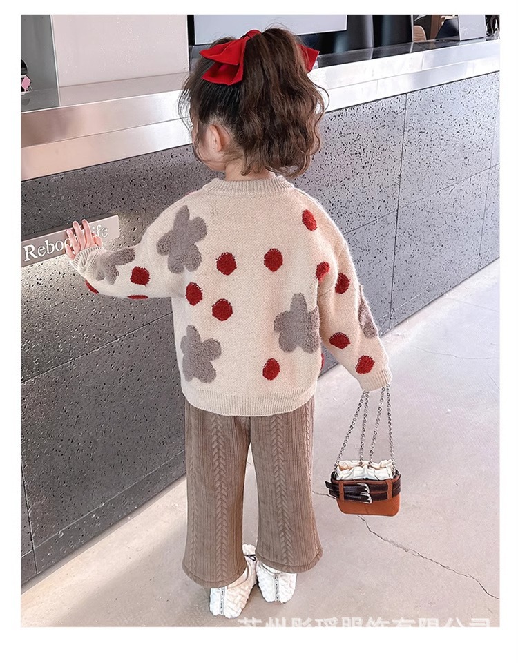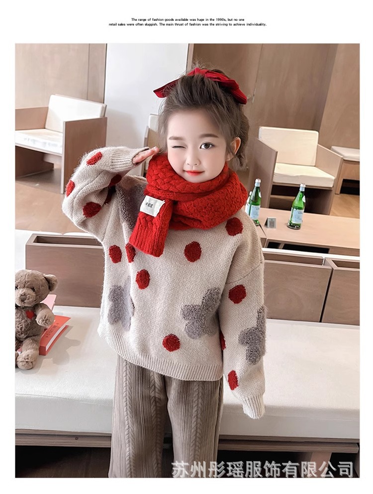 여아용 스웨터 2025 겨울 두꺼운 라운드넥 풀오버 니트웨어 여자 아기 패션 외출복 귀엽고 세련된 외출복