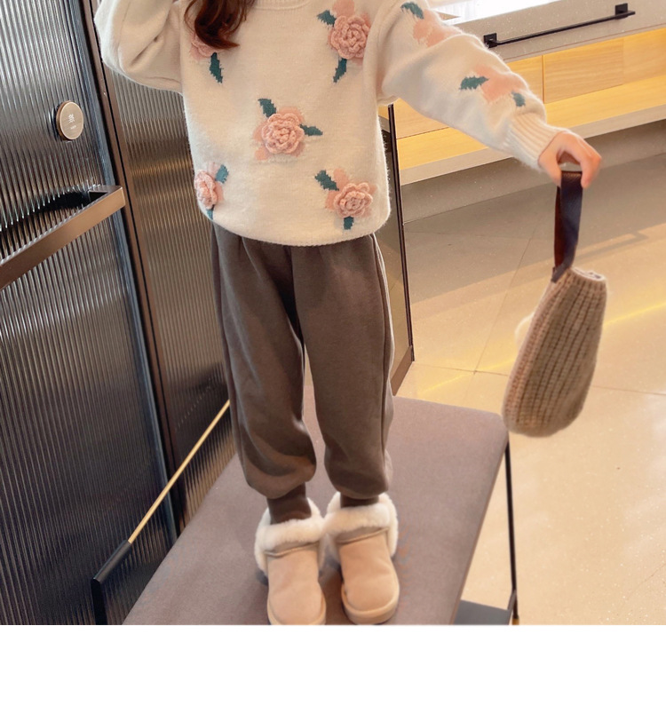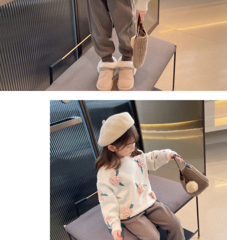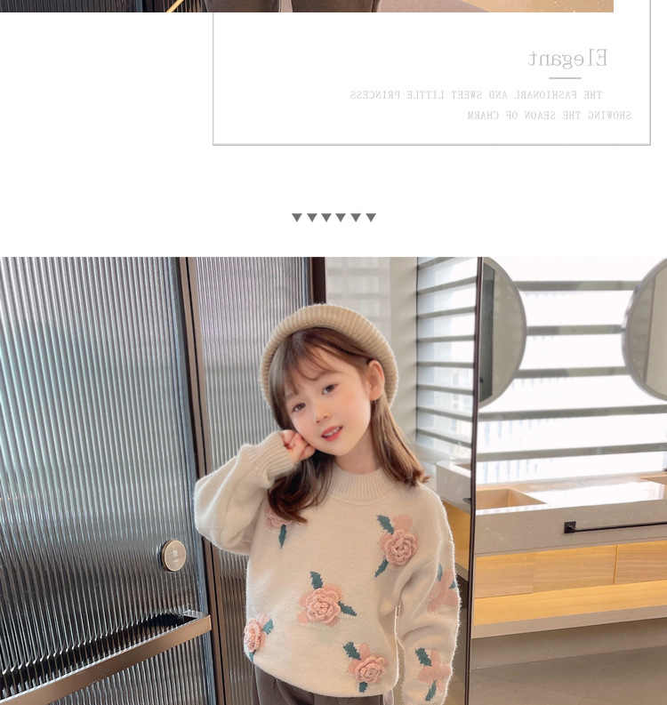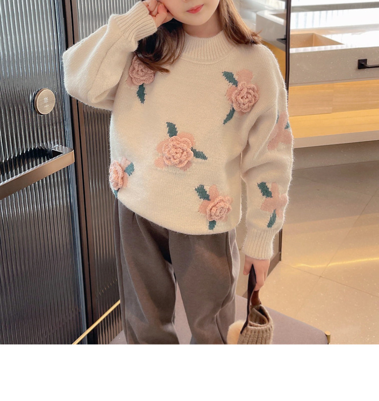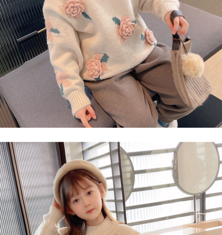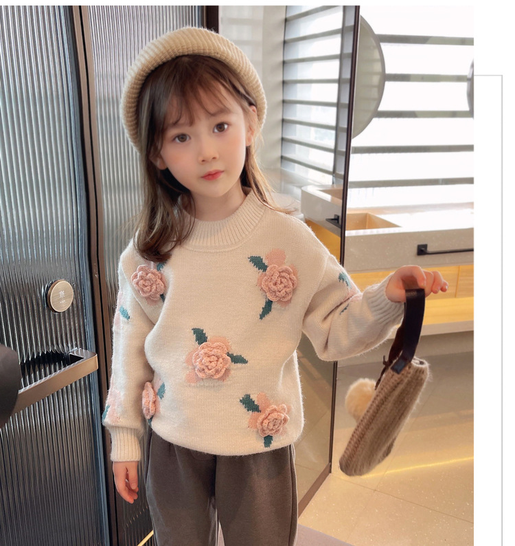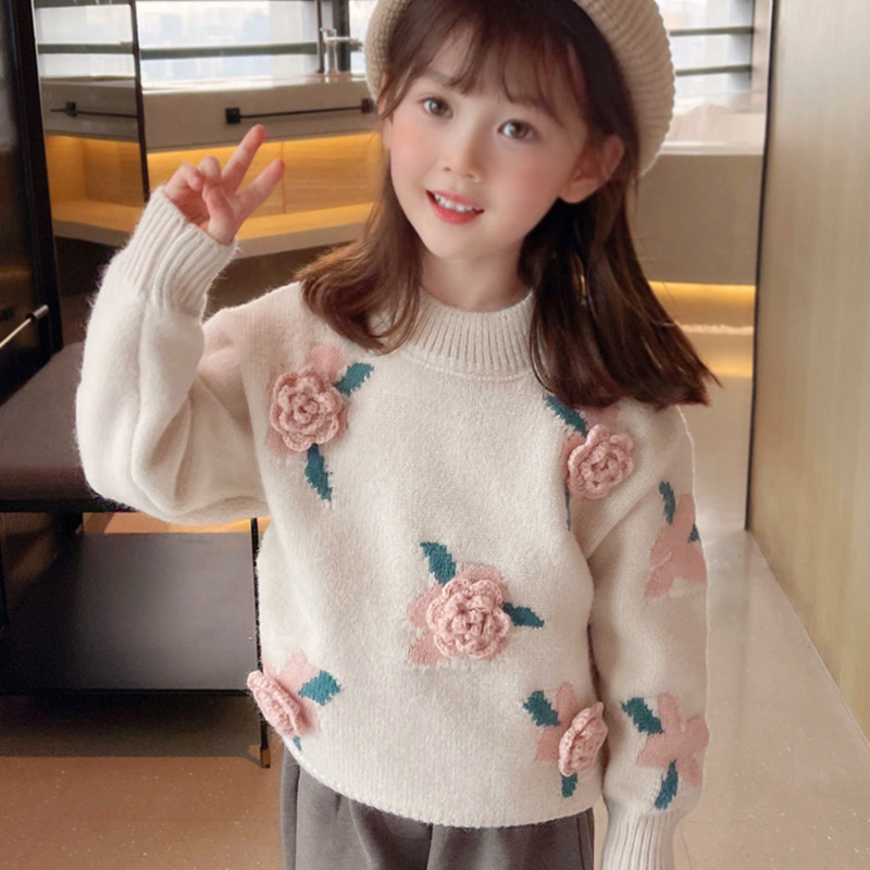 소녀들의 가을과 겨울 새로운 스웨터 크루 넥 스타일라인 한국식 니트 스웨터 디자인 센스 플라워 중동 어린이베이스 탑 트렌디