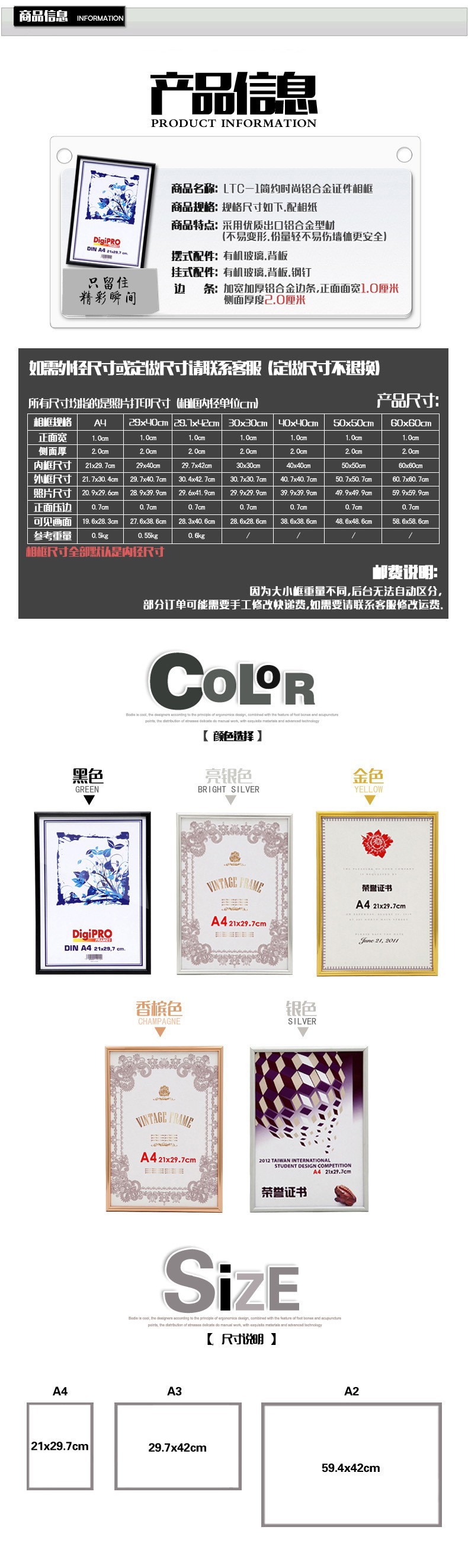 사진 프레임 A4 금속 8*10 테이블 인증서 프레임 A4 인증서 프레임 인증서 프레임 샴페인 컬러 도매 인증서 사진스토어 가기