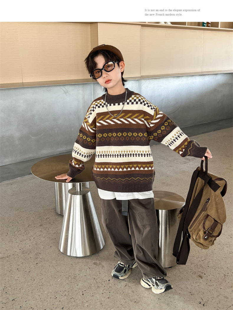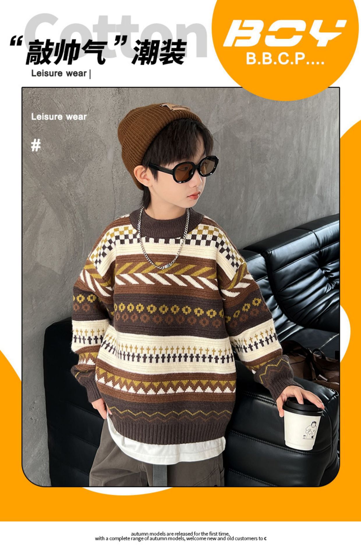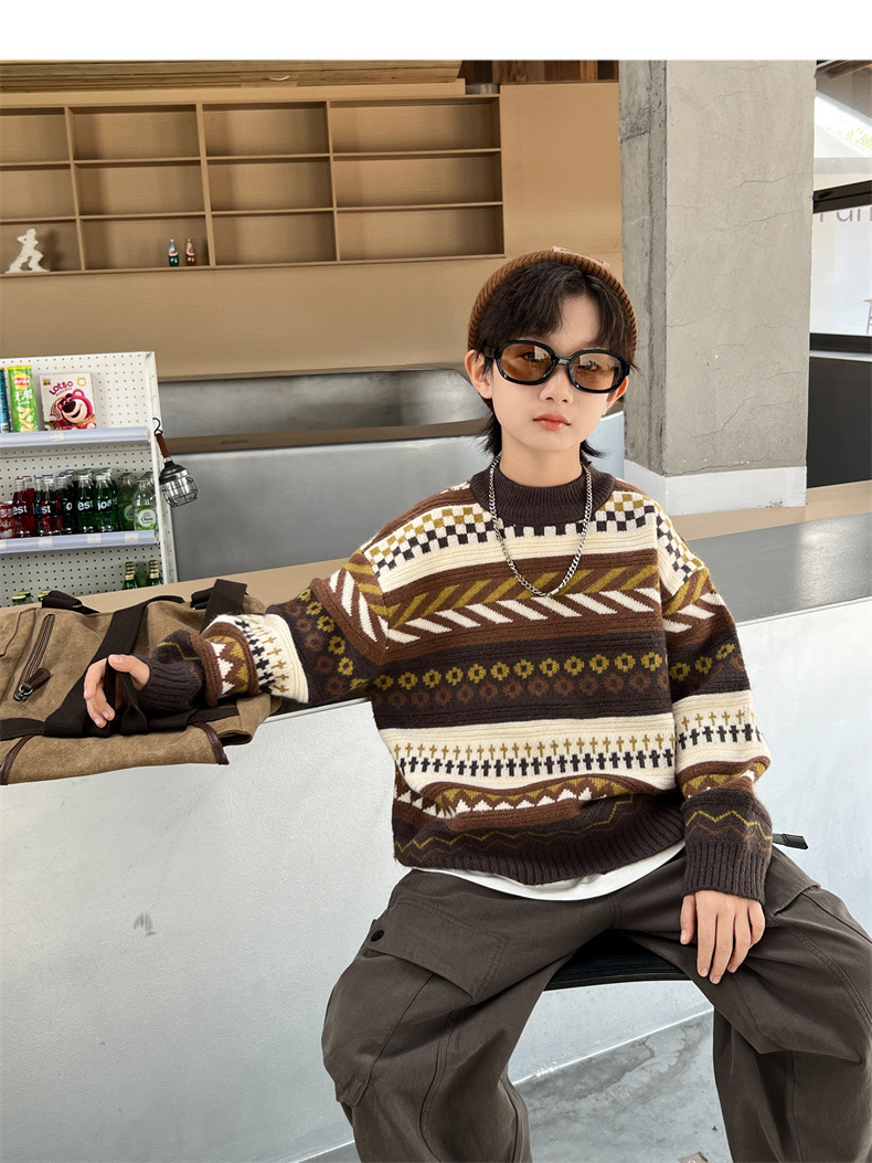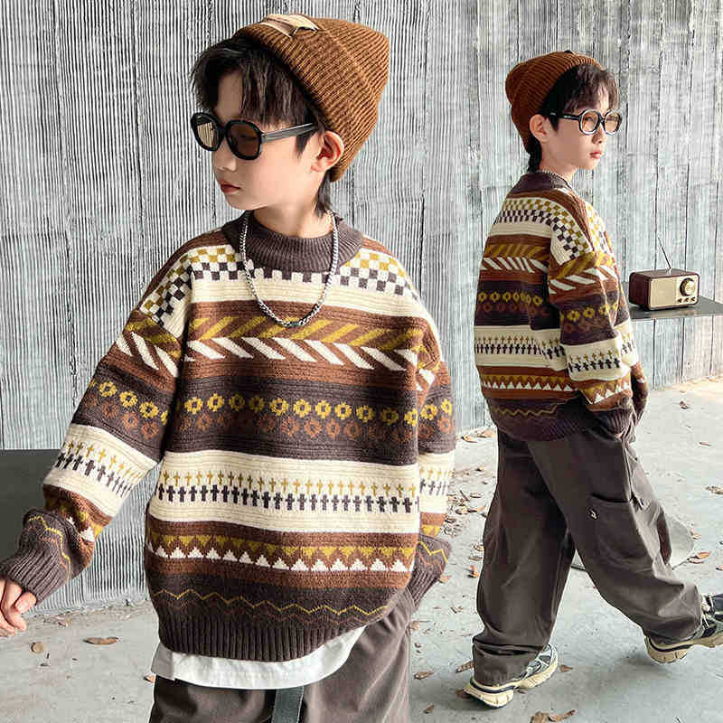 소년 스웨터 2024 새로운 가을과 겨울 스타일 큰 소년의 겨울 옷 두꺼운 거리 니트 스웨터 트렌디 스웨터스토어 가기