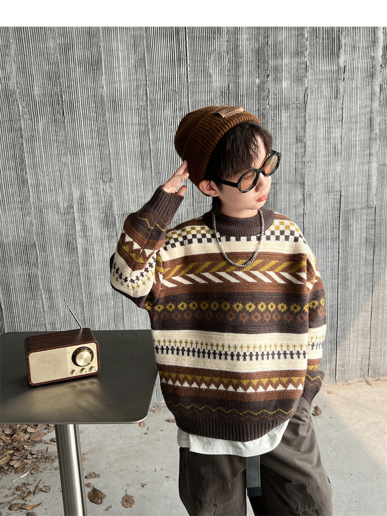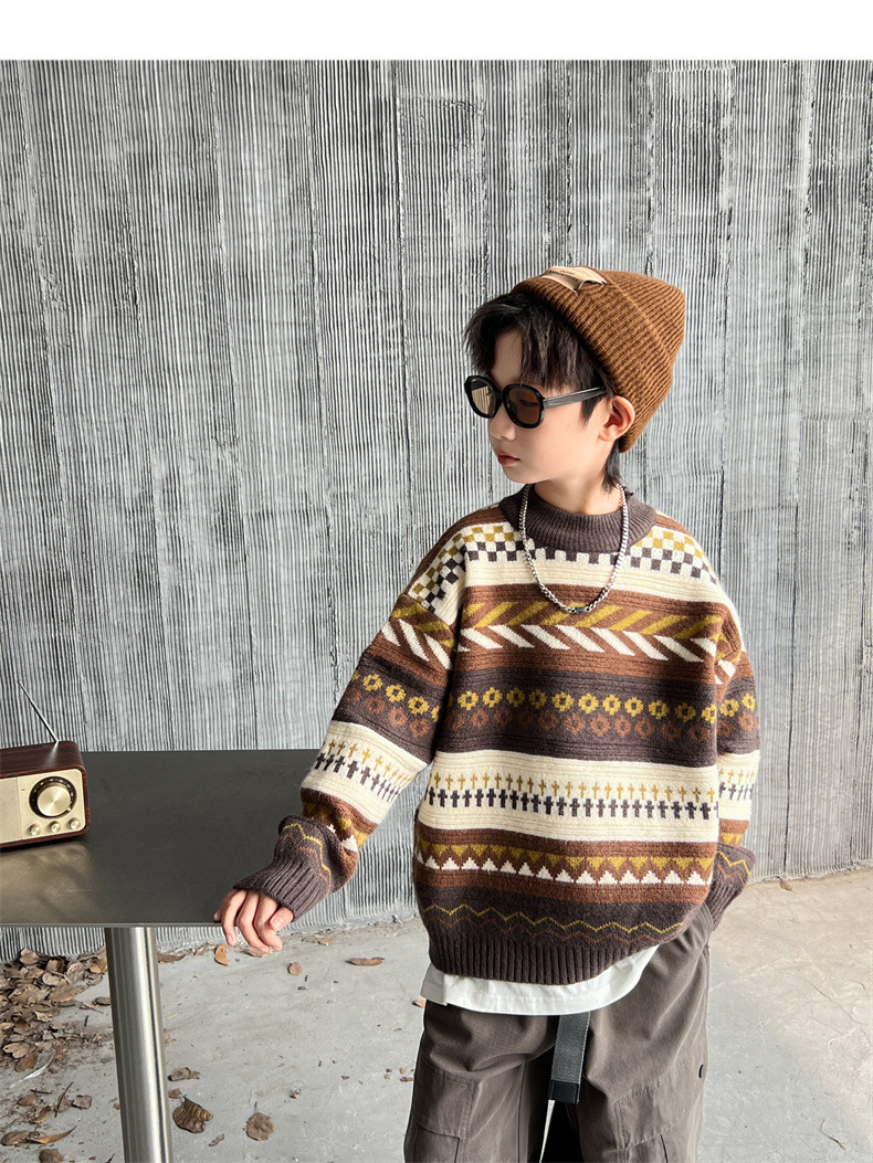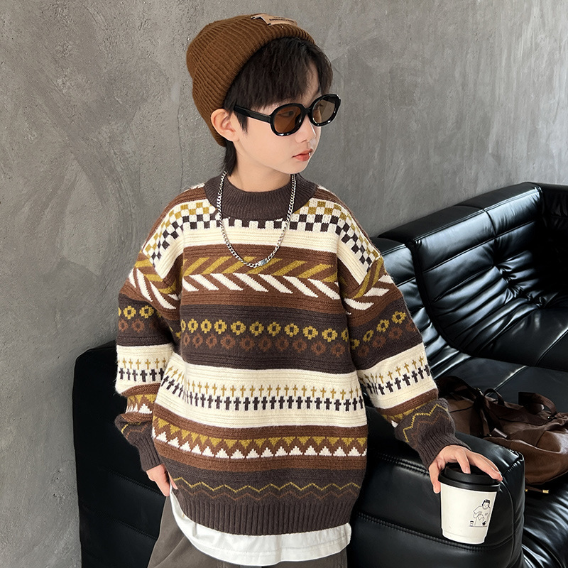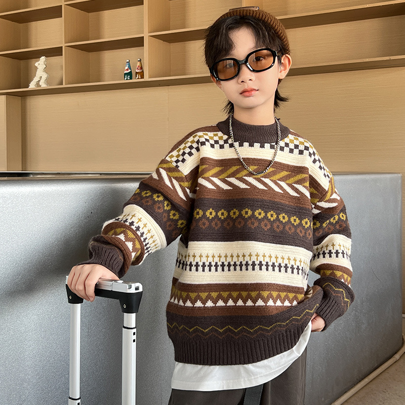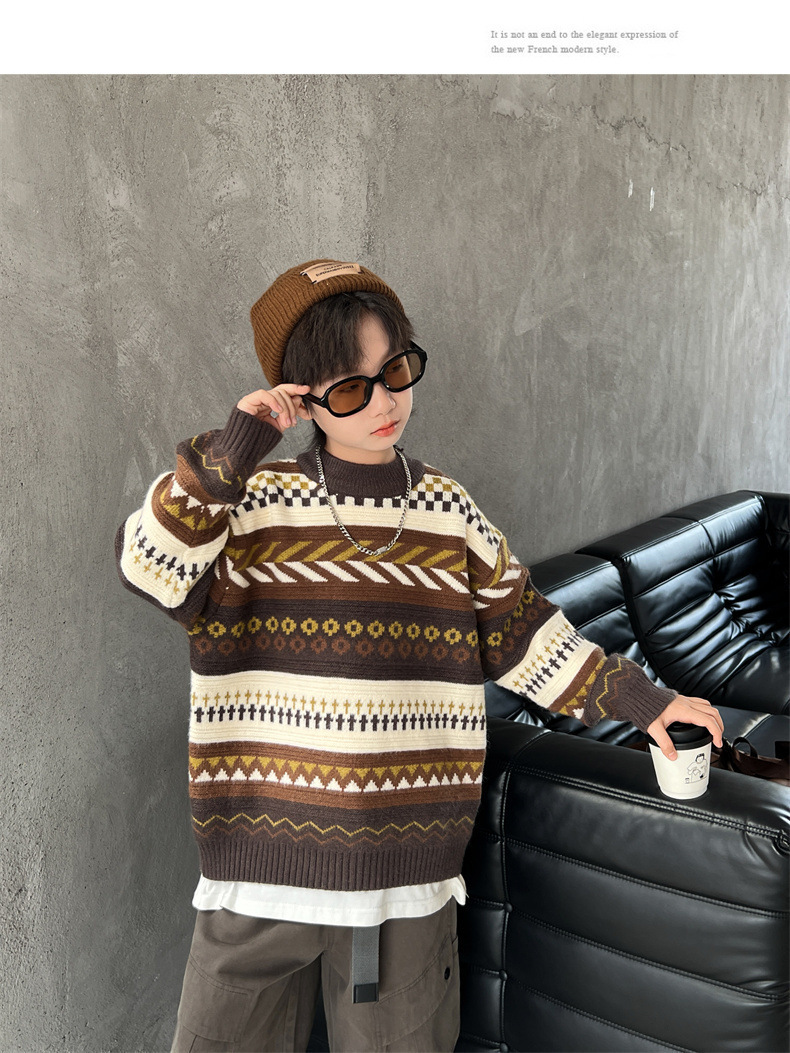 소년 스웨터 2024 새로운 가을과 겨울 스타일 큰 소년의 겨울 옷 두꺼운 거리 니트 스웨터 트렌디 스웨터